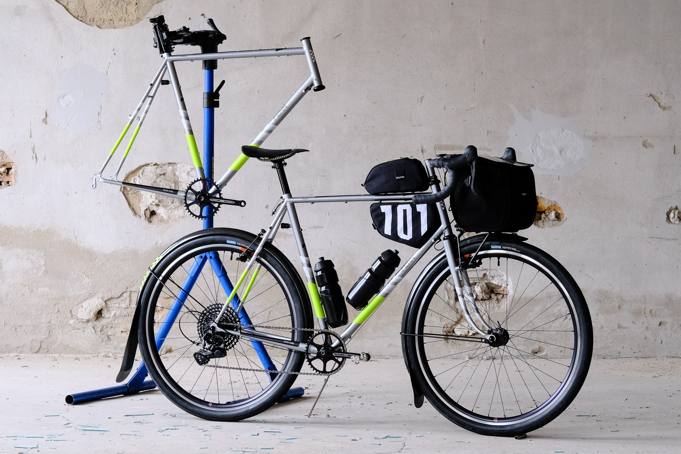 If you are interested in a custom frame / frame set or a complete built, then please contact me via flo@fern-fahrraeder.de and we will arrange a first meeting here in my Berlin workshop or have chat on the phone / via Zoom. In this first personal conversation we will try to find out which bike would be best suited for you and which your personal needs and wishes could be. If we agree to make a bike we will have a second extensive meeting (+/- 6h) where I will have a close look on your existing bikes and we will go for a little bike ride together. We will precisely take all your measurements and put you on our bike fitting machine to find the perfect fit for you. We will discuss al bike and bag options with Kristin from Gramm-Tourpacking and meet our local painter guy. From all those info we will create a first draft of how your Fern dream bike could be and send you an individual quotation. Before I actually start building your bike you have to make a down payment of 50% of the complete price.