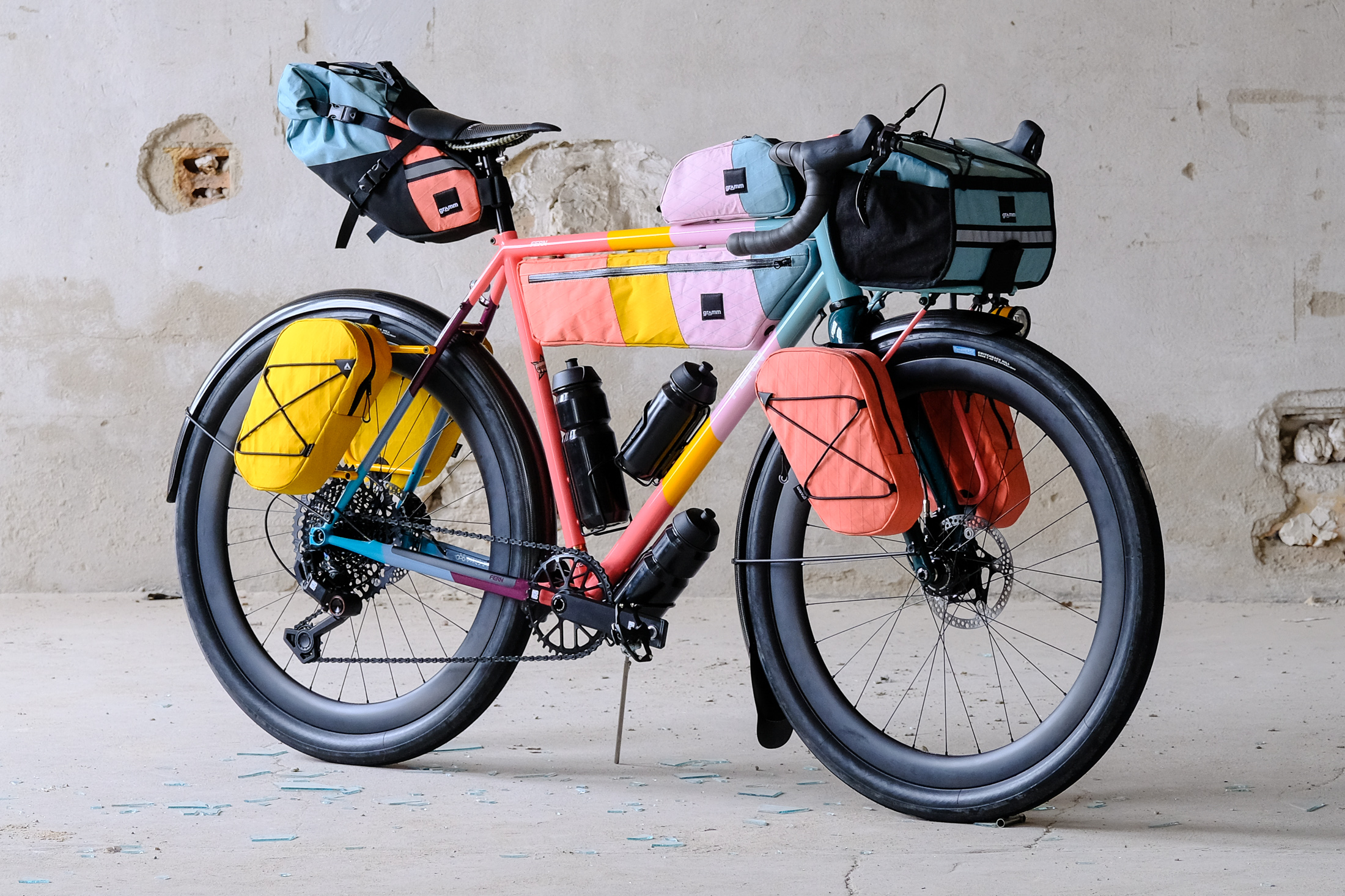 In 2013 my girlfriend Kristin joined forces and started her own company Gramm Tourpacking which is specialized in making handmade bespoke and custom bike packing and touring bicycle bags. This was the missing link for offering our customers a complete bike and bags solution for touring the world on a bike in the best possible way.