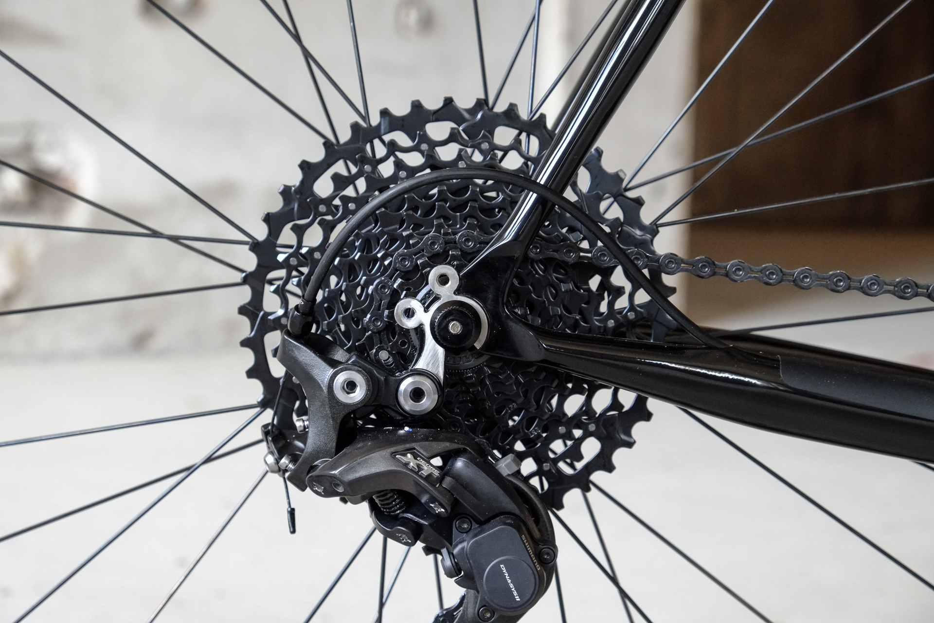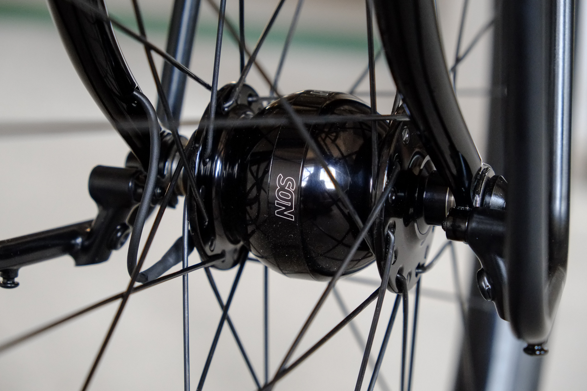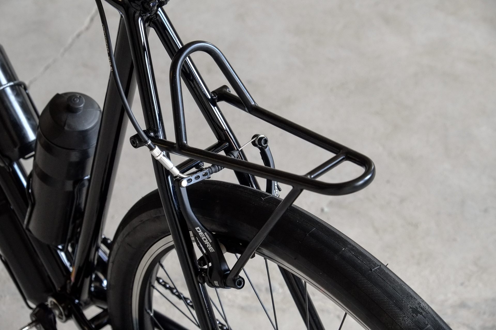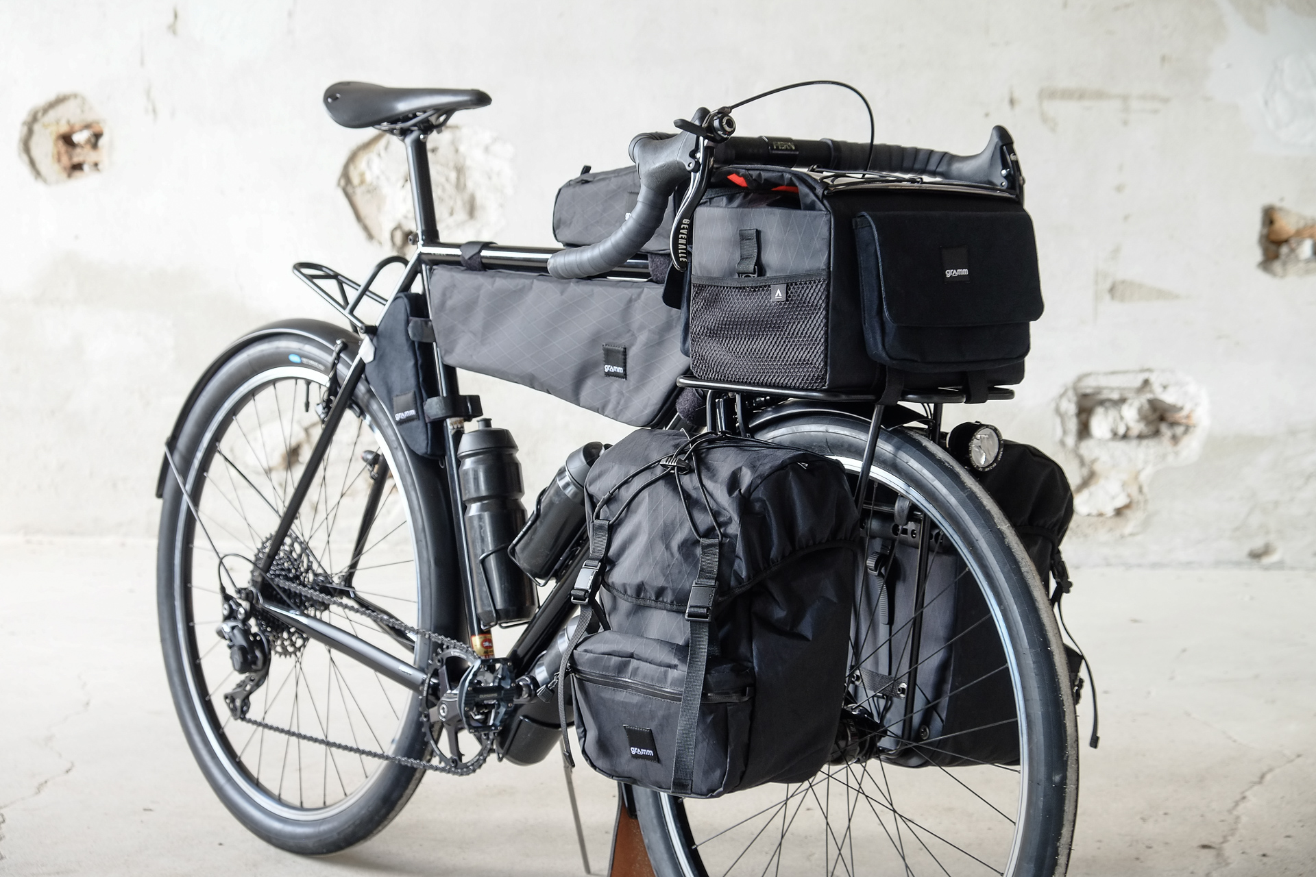 This aweseome steed we created for my man Valentin and is the newest addition to our line up of custom bikes, being a crossbreed of our infamous Chacha touring bike and the 650B Chuck allroadbike. Fully euipped with almost every Gramm bag available, you have ample room for whatever you need on long rides through the wild east. Supple galopping on Rene Herese Switchback Hill 48mm shoes, no matter if you're gravel riding through the prairie or back on smooth roads, you'll always be faster then the rest of the herd. The bike is equipped with a Gevenalle powered 1x11 Shimano drivetrain turned by a Wolftooth chainring mounted to a vintage custom anodized Dura Ace 7400 crankset. Fenders made by our friends at Cycles Berthoud, super comfy contact points by Brooks and ESI. Lights and power supply as usual by SON, Schmidt's Original Nabendynamo. Stems and racks are all made by Fern. Deep black fur made by our man Robert from Velociao . I can already see you riding into the sunset Valentin !