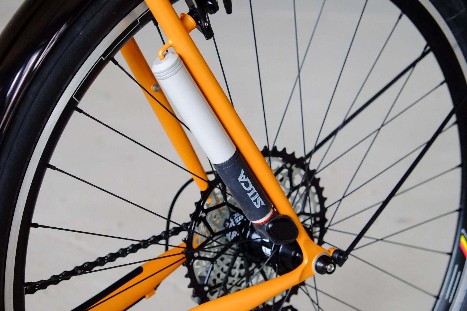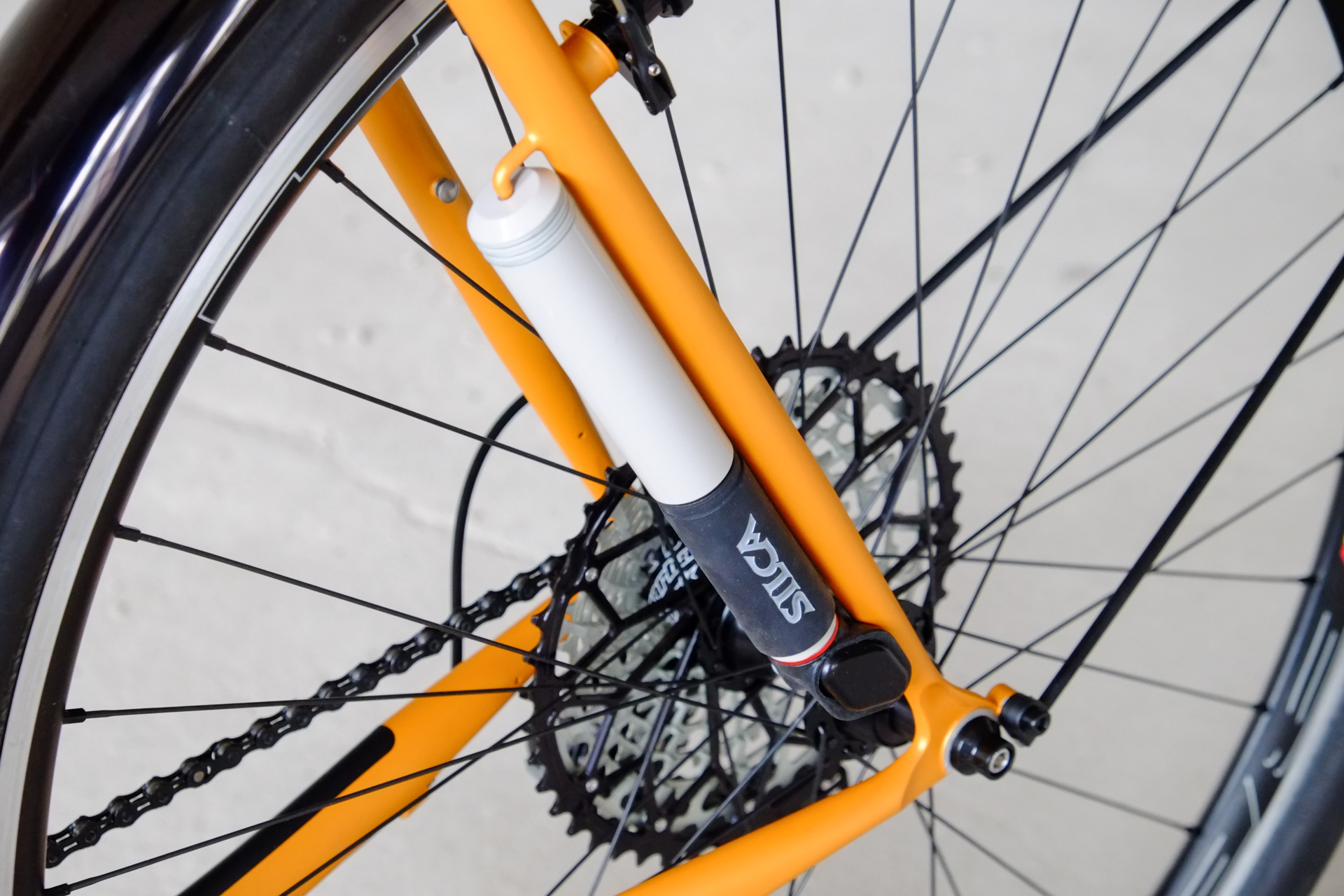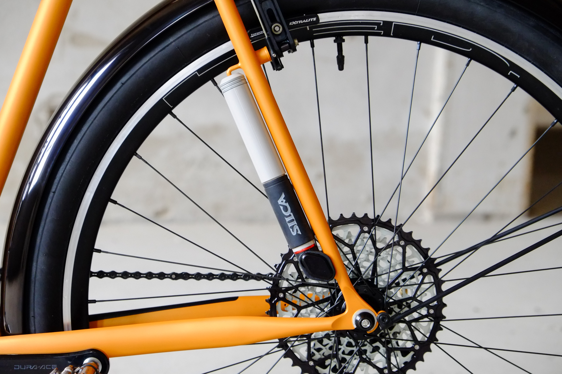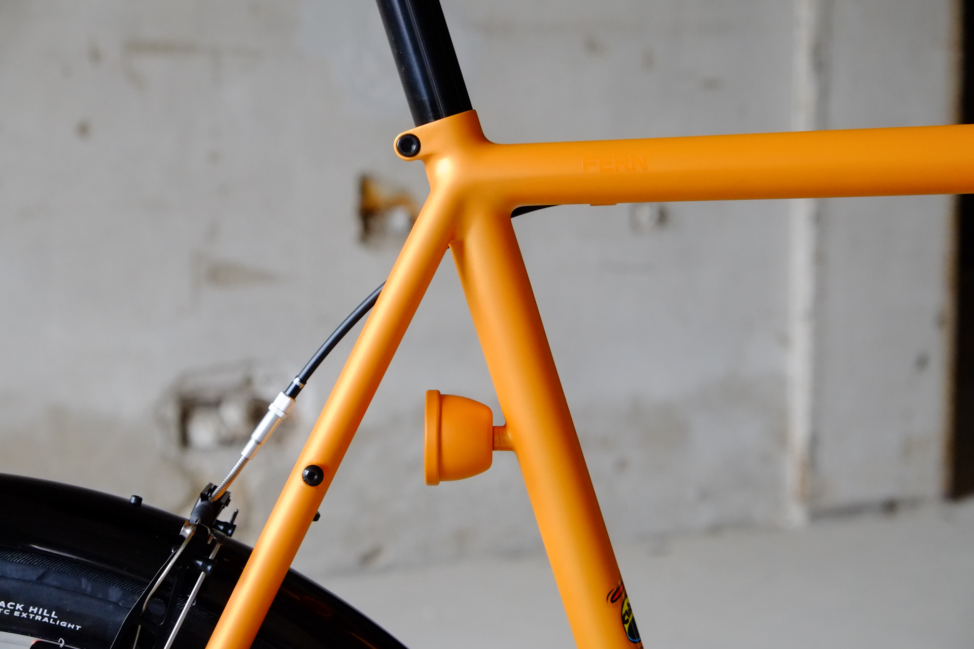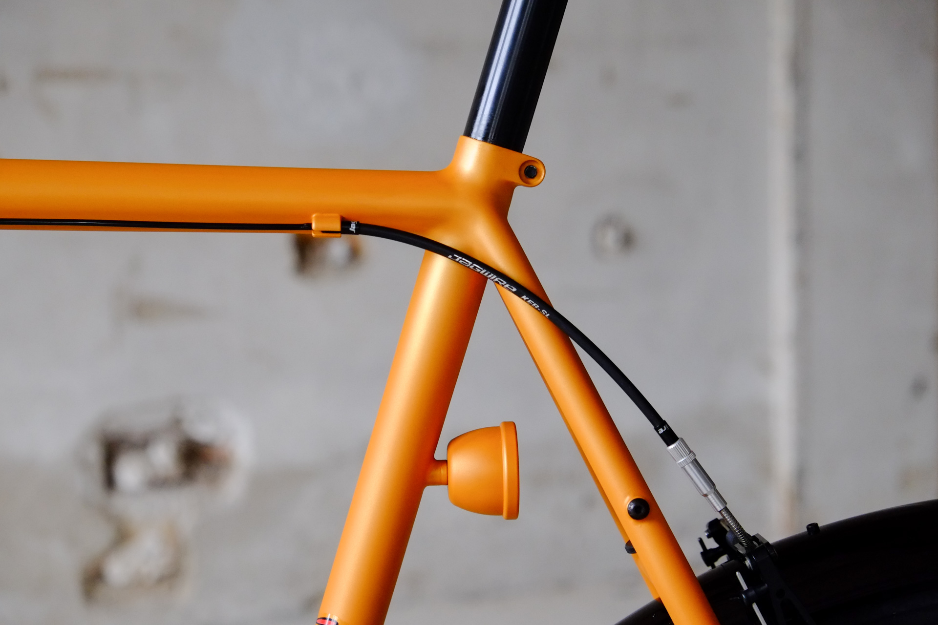 The coolest touch on this bike for sure is the colour matching custom painted Silca Mini Impero pump, which we modified to be mounted on the seatstays.