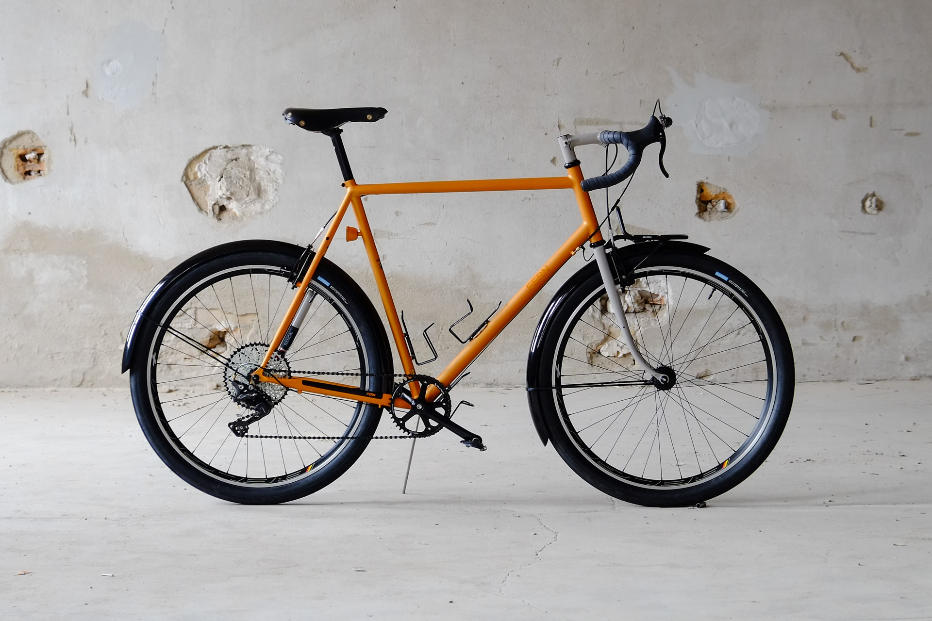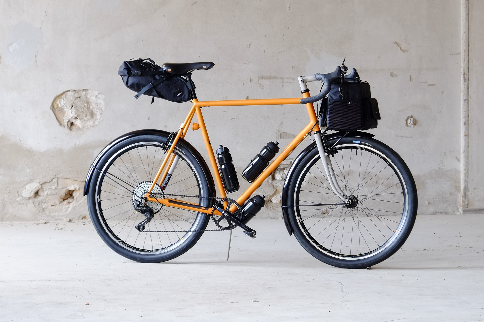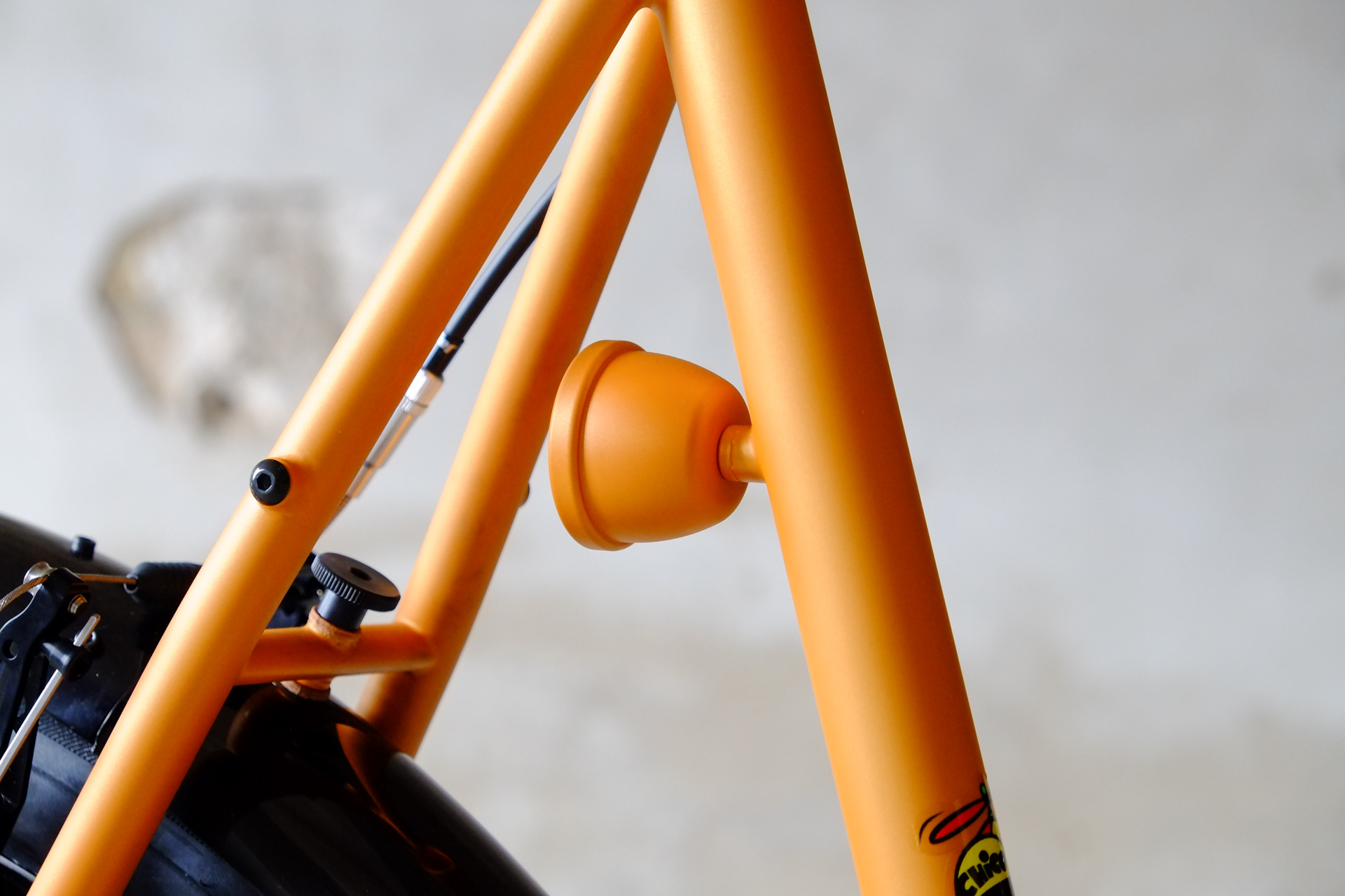 Fantastic extra big high top handlebar bag made by my love at Gramm Tourpacking ! Fantastic clockworck orange paintjob made as usual bey Robert at Velociao .