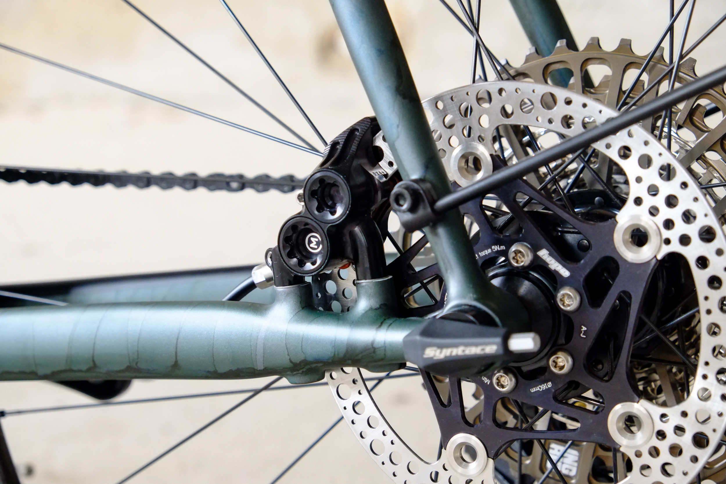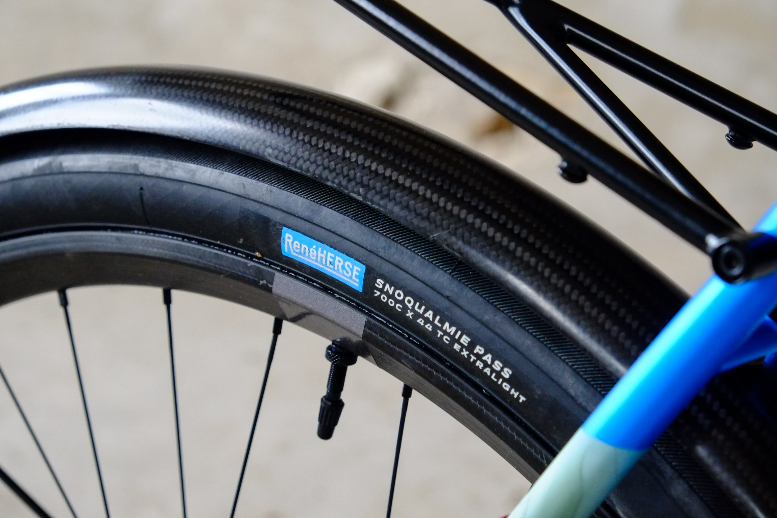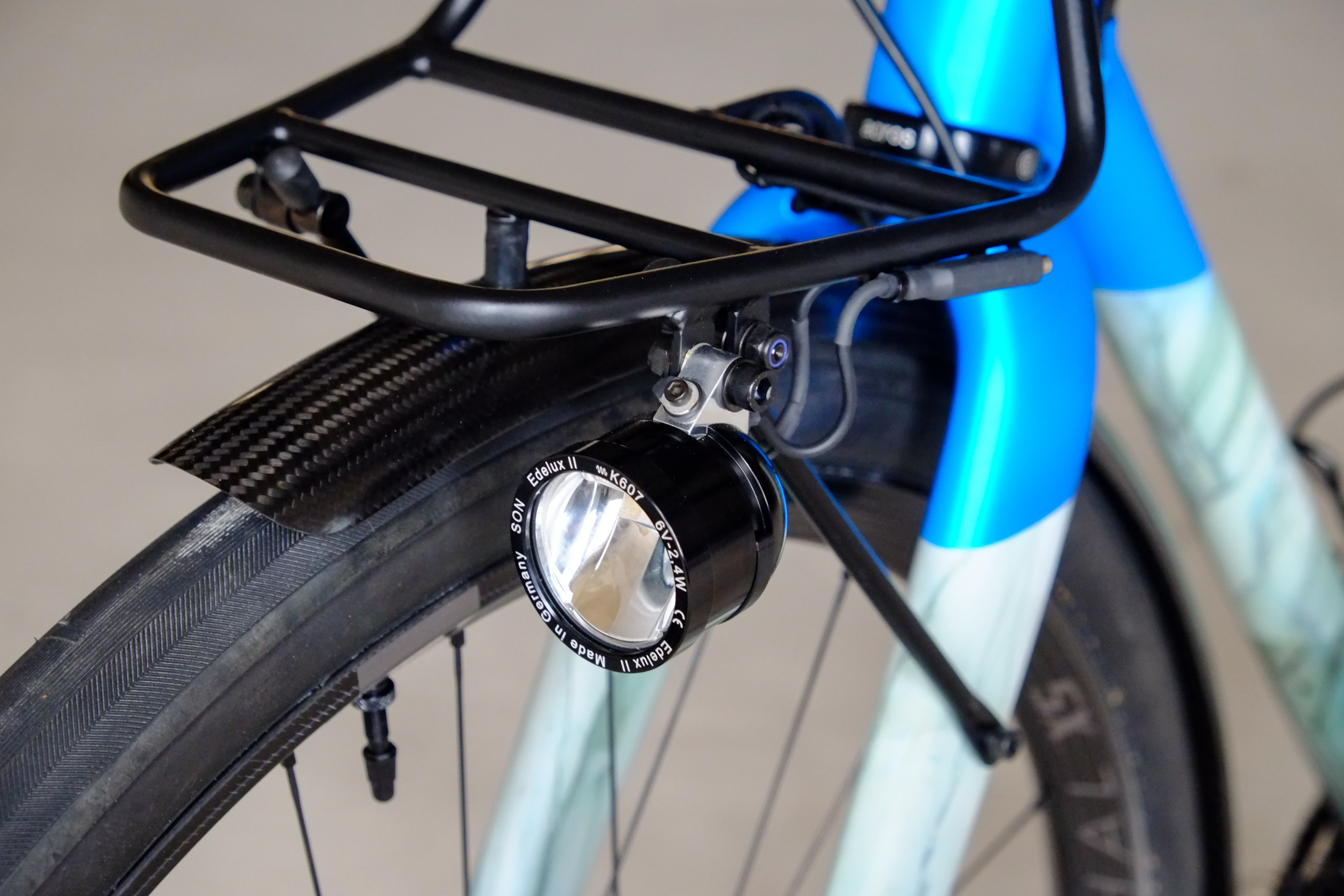 Only the fines parts and components we choose for his bike, such as Ingrid derailleur and cassette, Tune seatpost, saddle and handlebar, Lilienthal Copro Carbon rims, Veloduo carbon fenders, hope brakes on Gevenalle Hydro levers, SON Lighting, Rene Herse Snoqualmie 700cx 44mm tires,...and so on...just the best of the best!