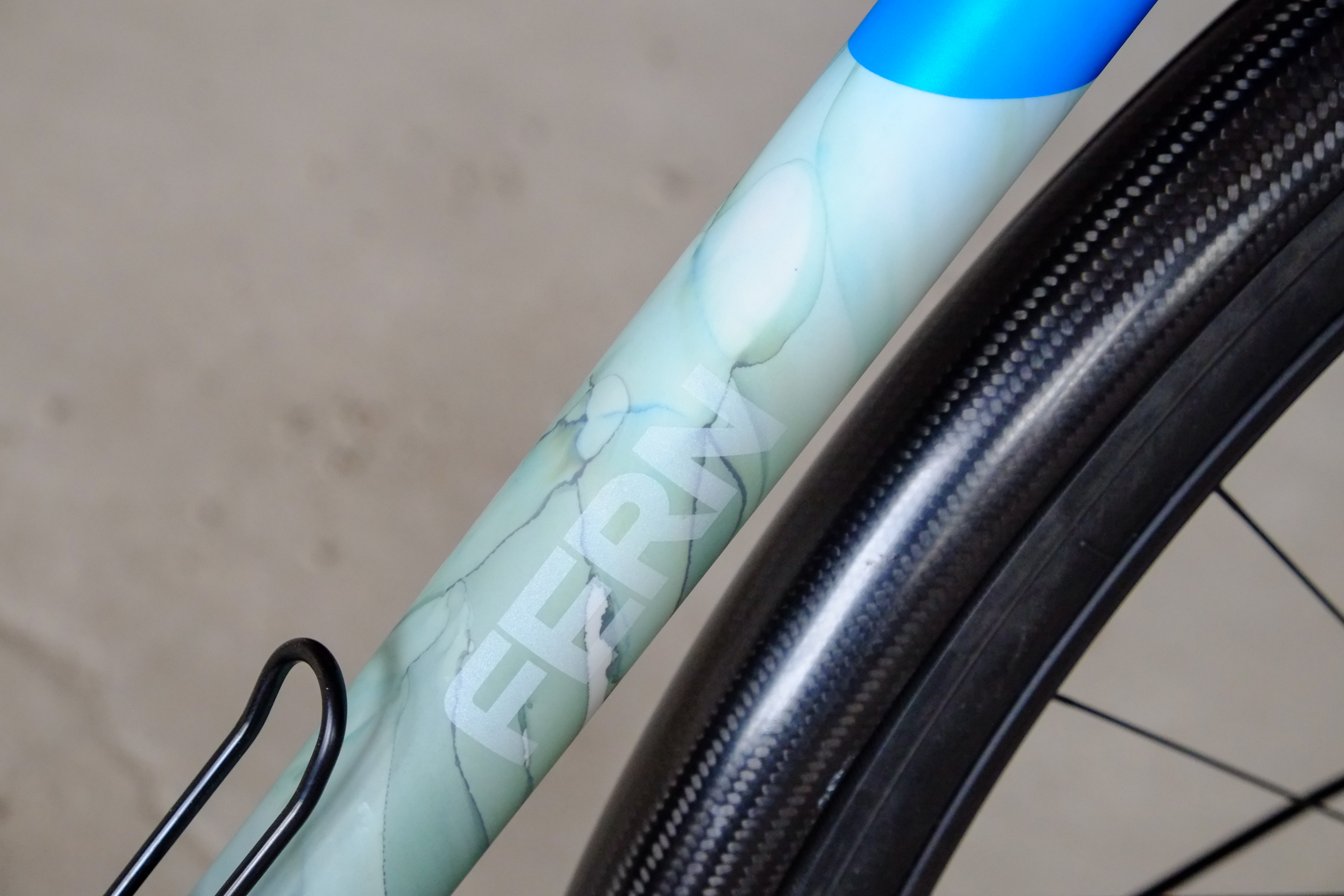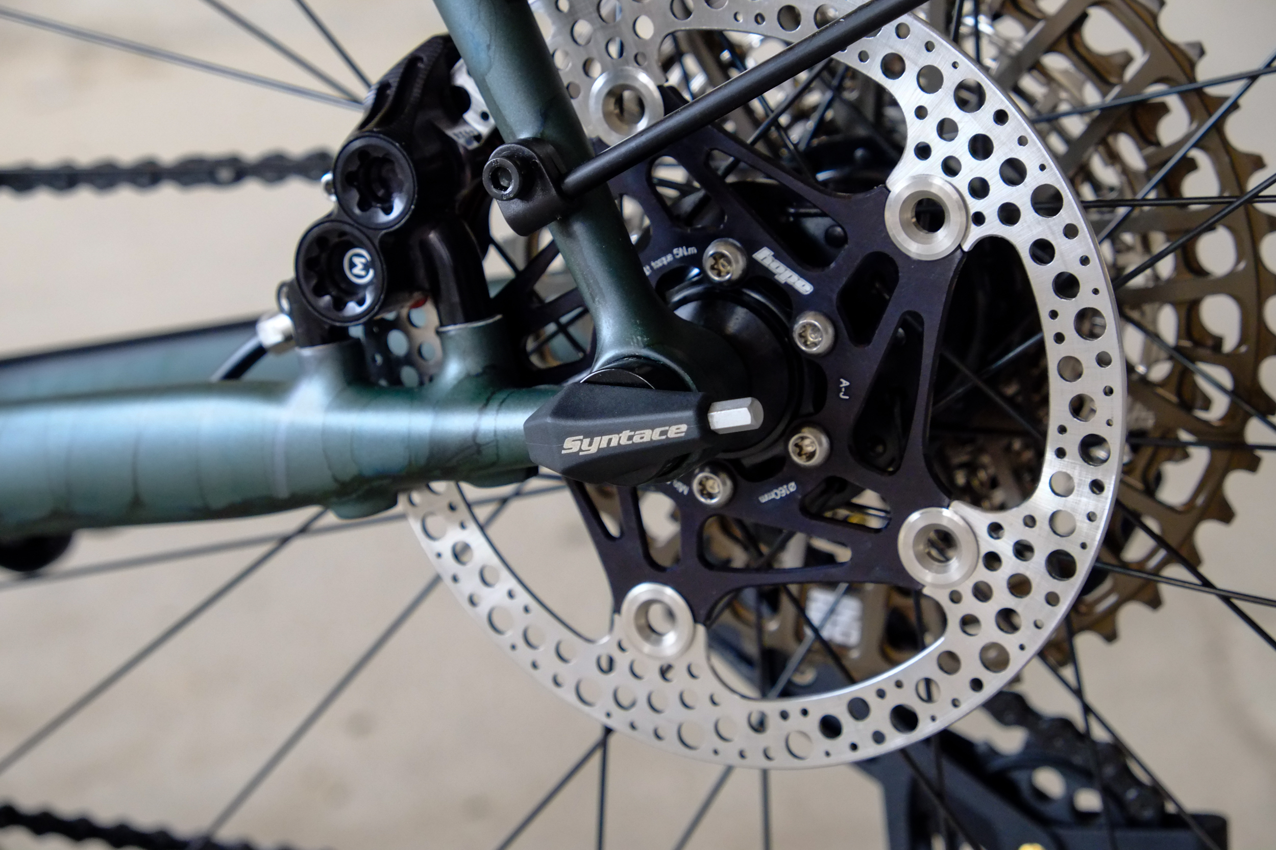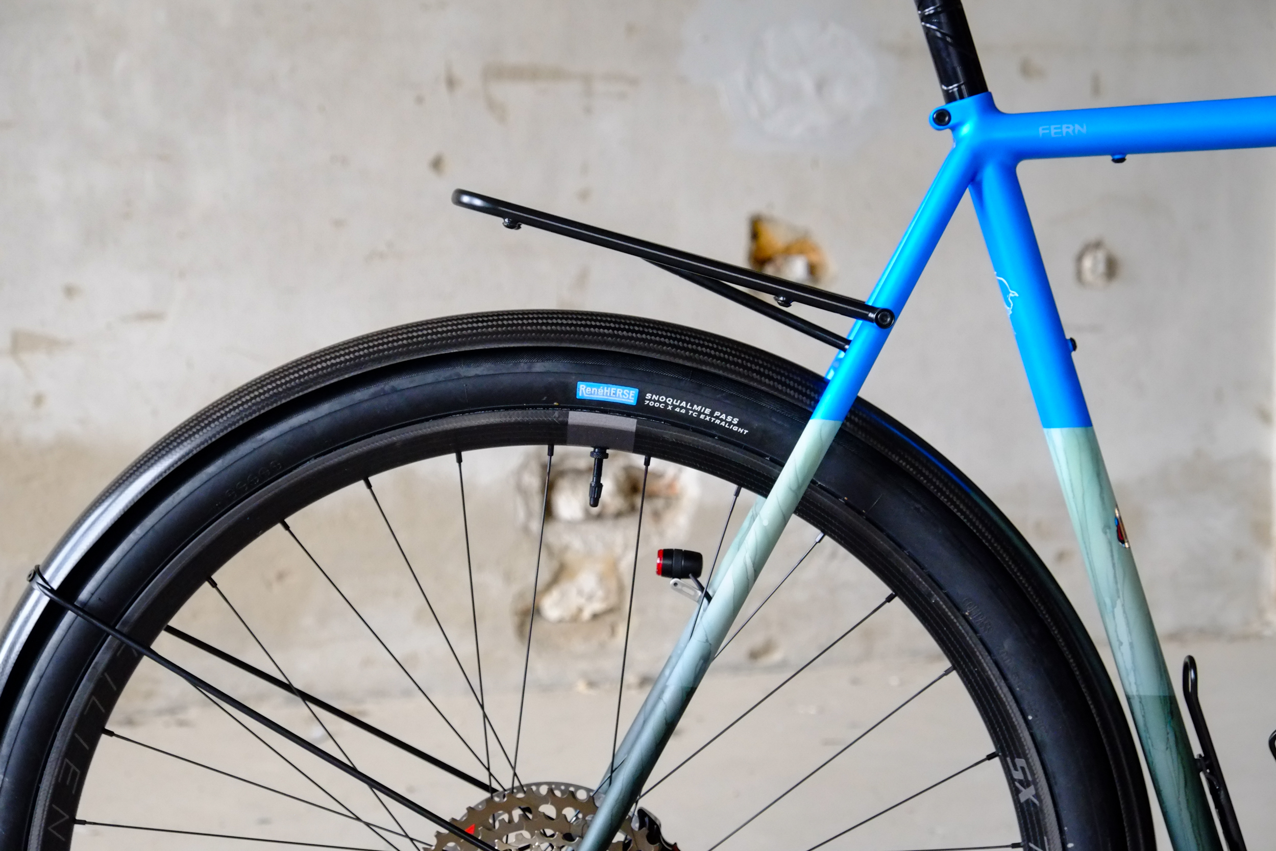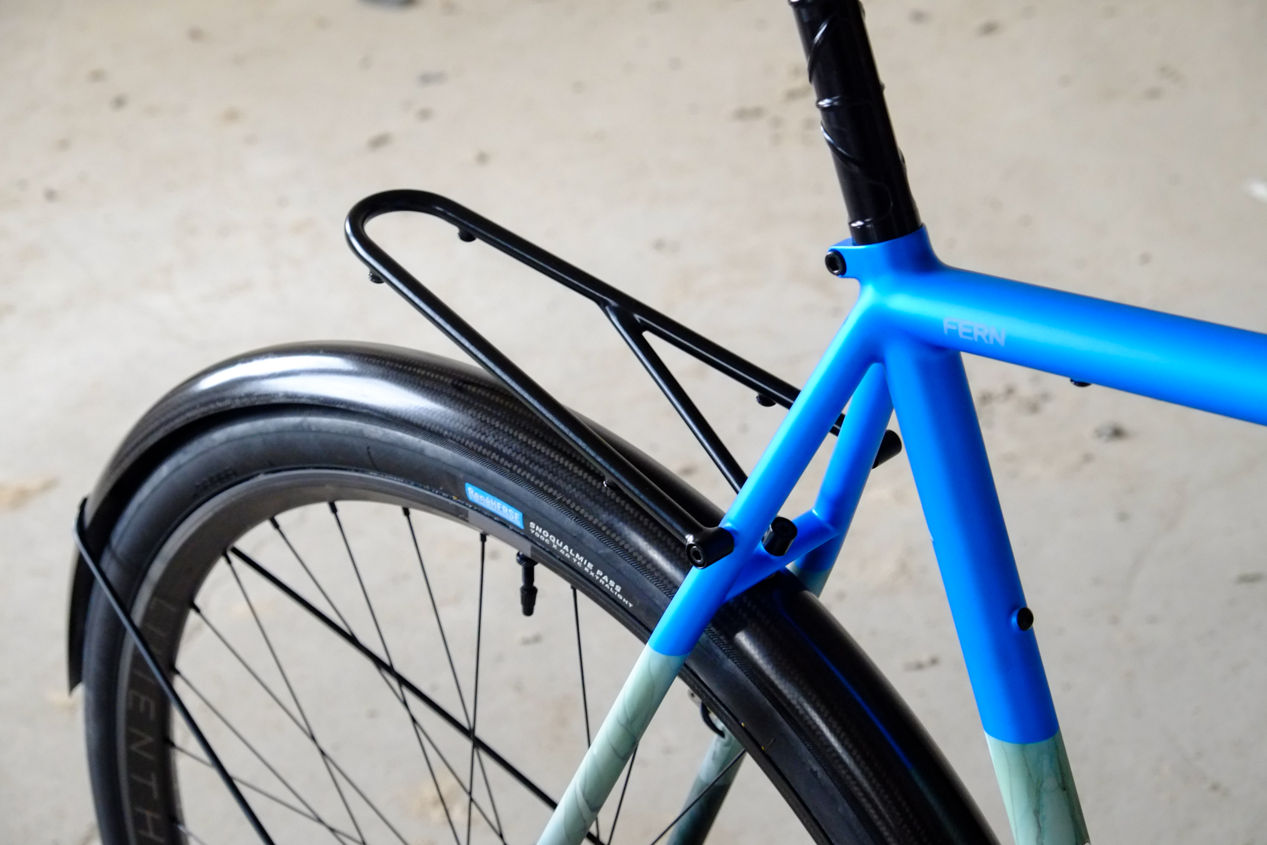 Only the fines parts and components we choose for his bike, such as Ingrid derailleur and cassette, Tune seatpost, saddle and handlebar, Lilienthal Copro Carbon rims, Veloduo carbon fenders, hope brakes on Gevenalle Hydro levers, SON Lighting, Rene Herse Snoqualmie 700cx 44mm tires,...and so on...just the best of the best!
