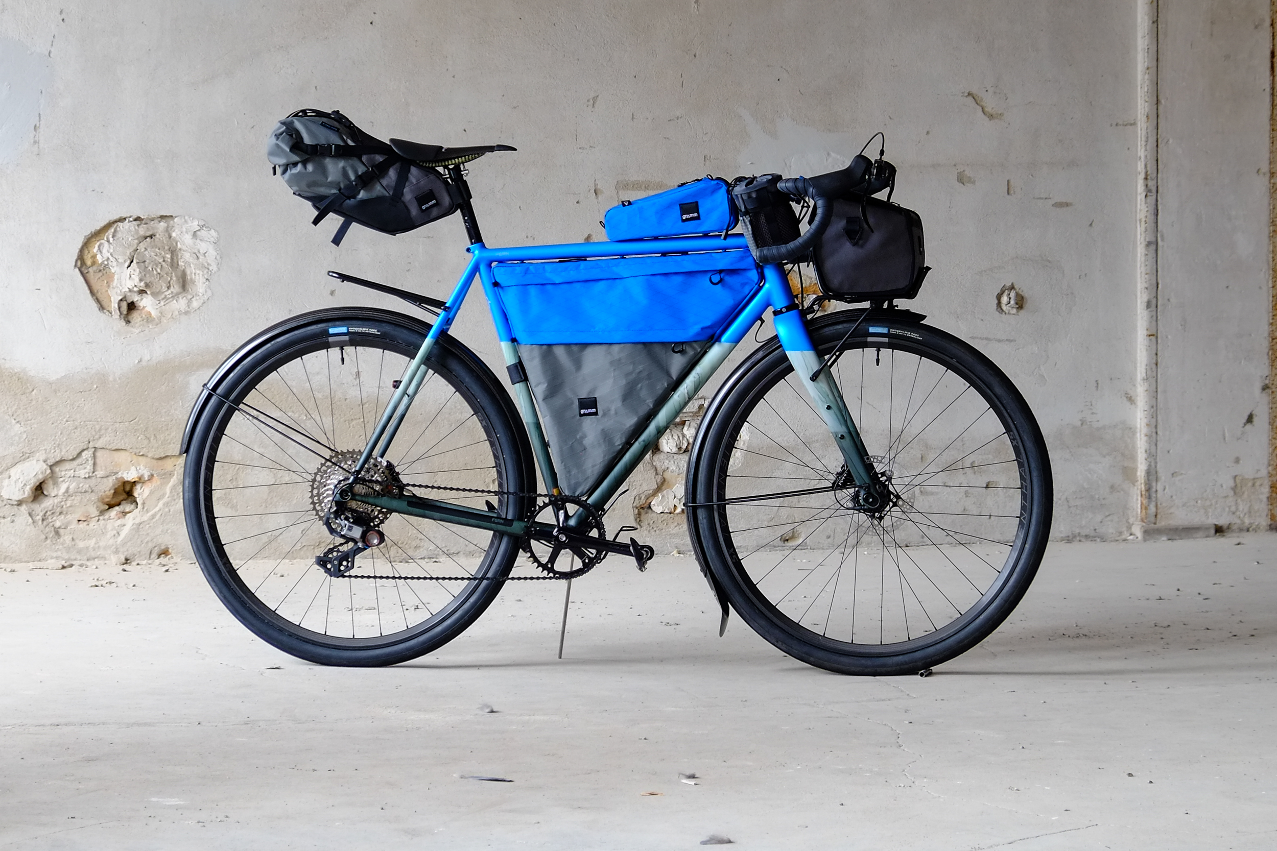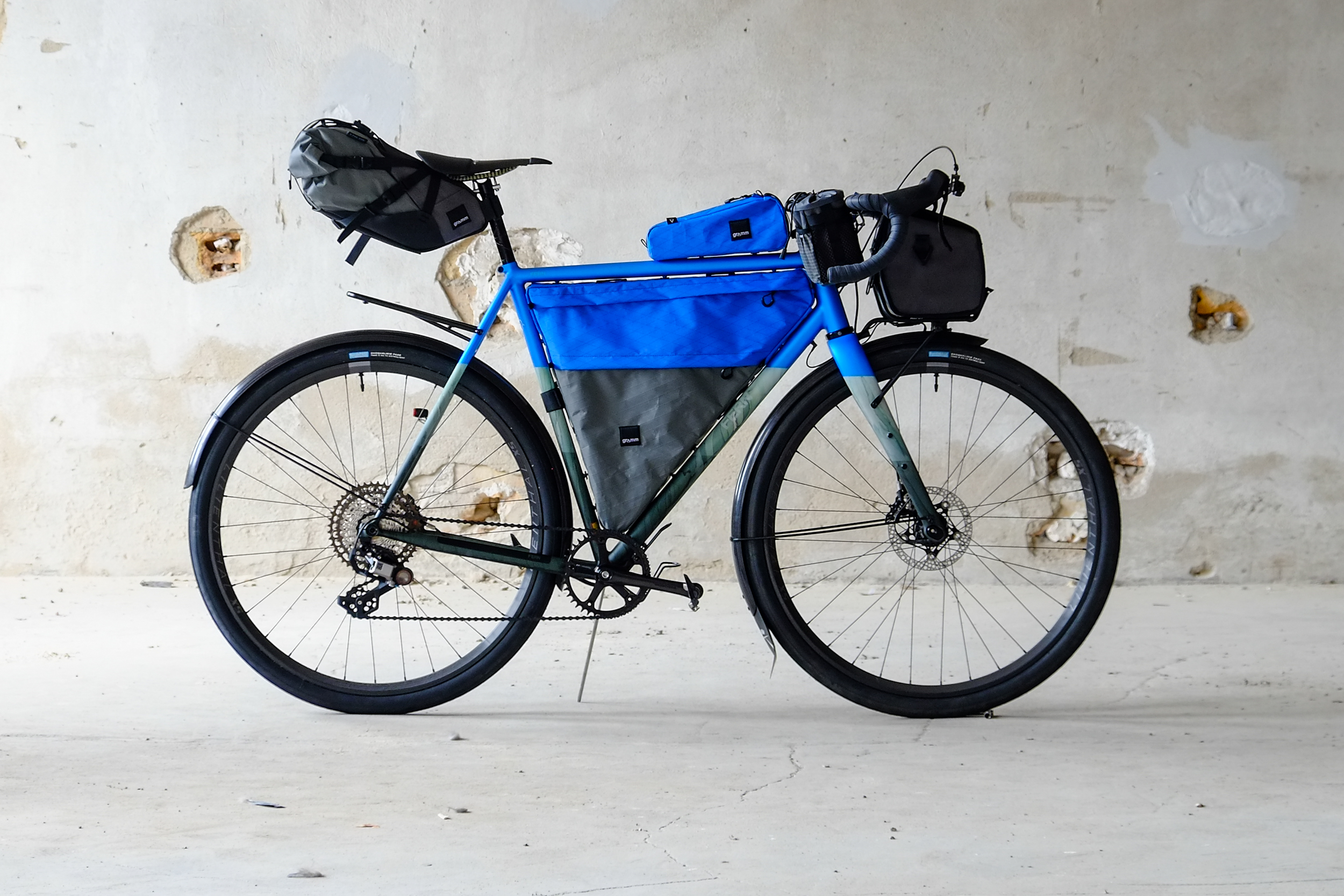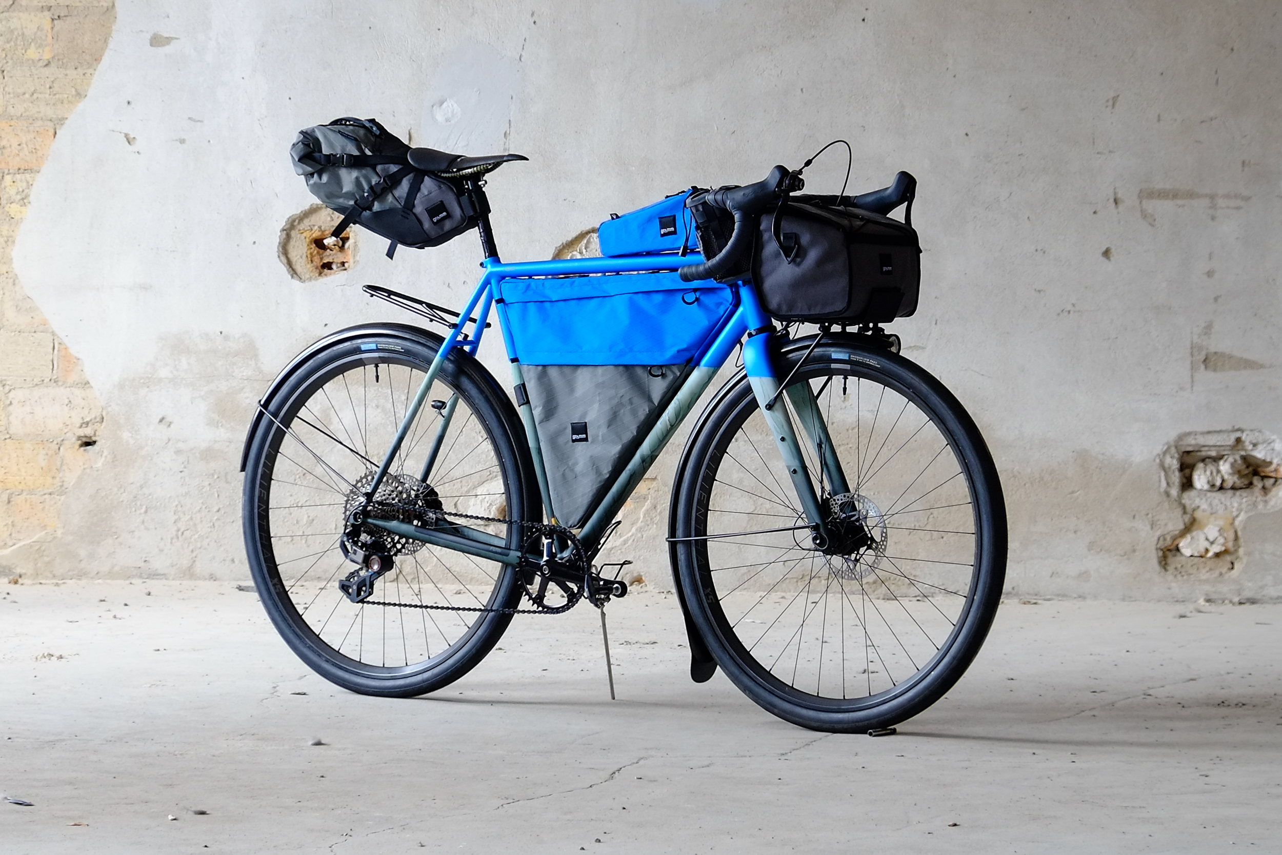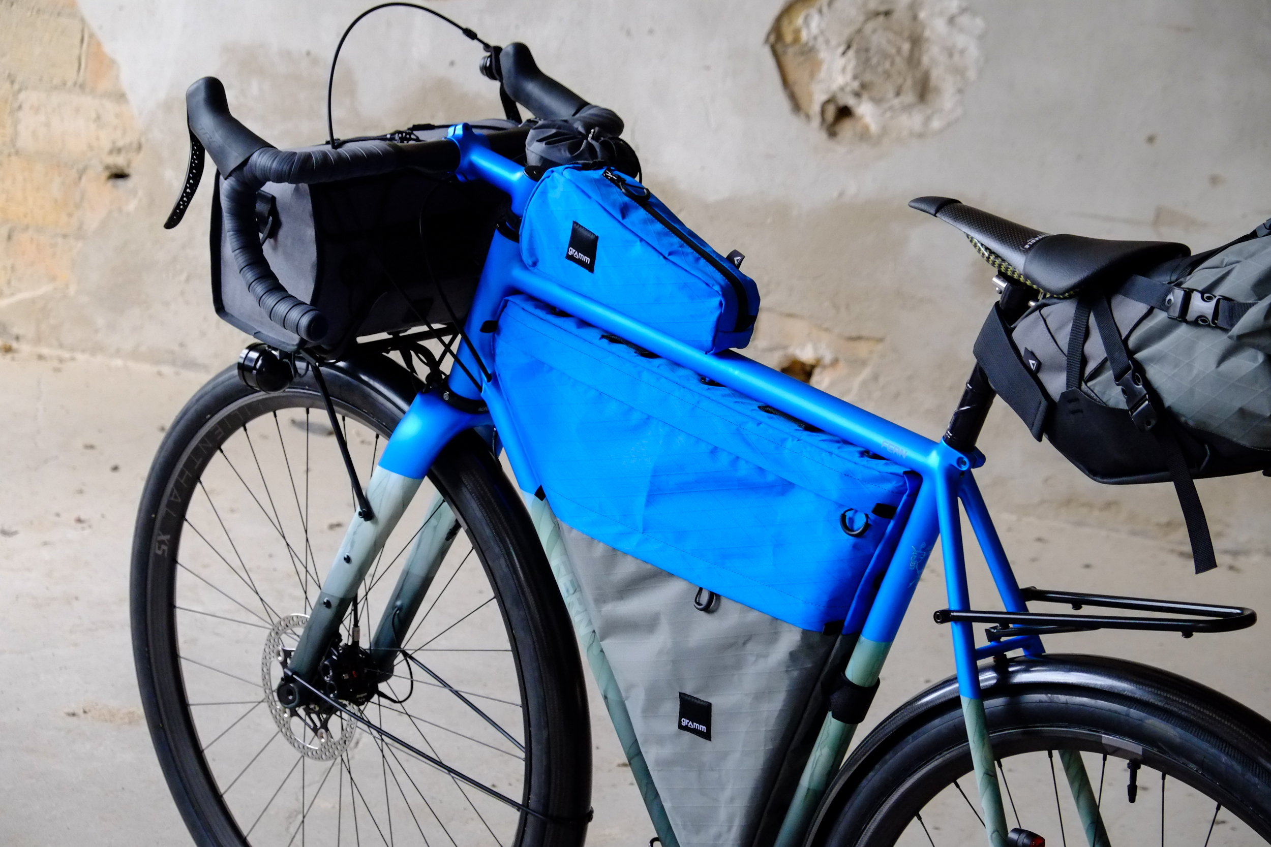 Fantastic colour matching bag set made by Gramm Tourpacking including the brand new Diamond Handlebarbag which is the perfect addition to our own framebuilderowned component company's Allygn Diamond Front Rack!