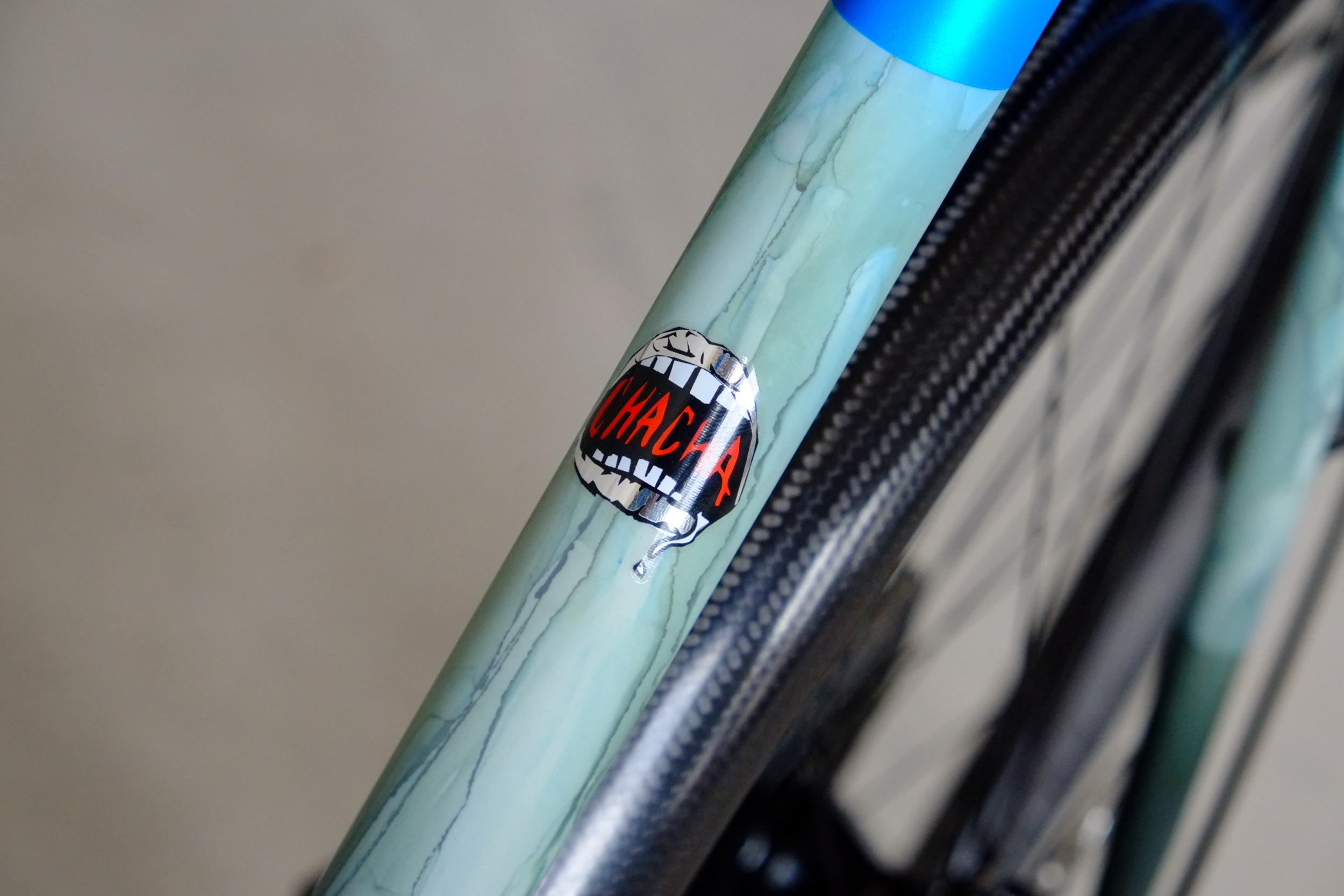 The amazing paint sheme done by Velociao was inspired by a mountain-and-blue-skies-above picture, which Jonas took in Patagonia while climbing the Fitzroy mountain!
