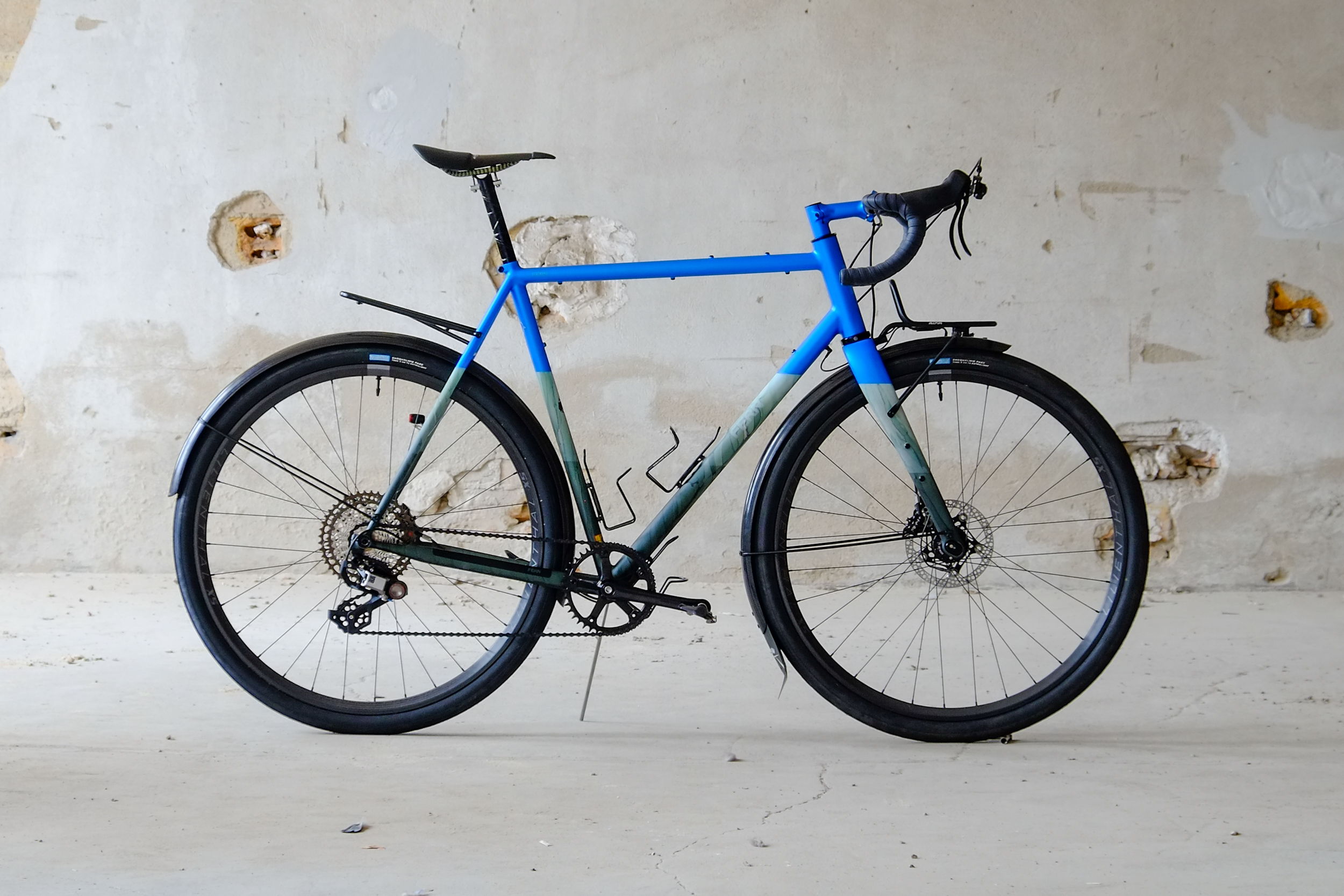 Jonas is an avid climber and mountaineer and he came to us with the idea of building a very special touring-, gravel-, randonneur- bike, which he can use as a transport vehicle for his adventures as well as for his daily commutes and spirited weekend rides.