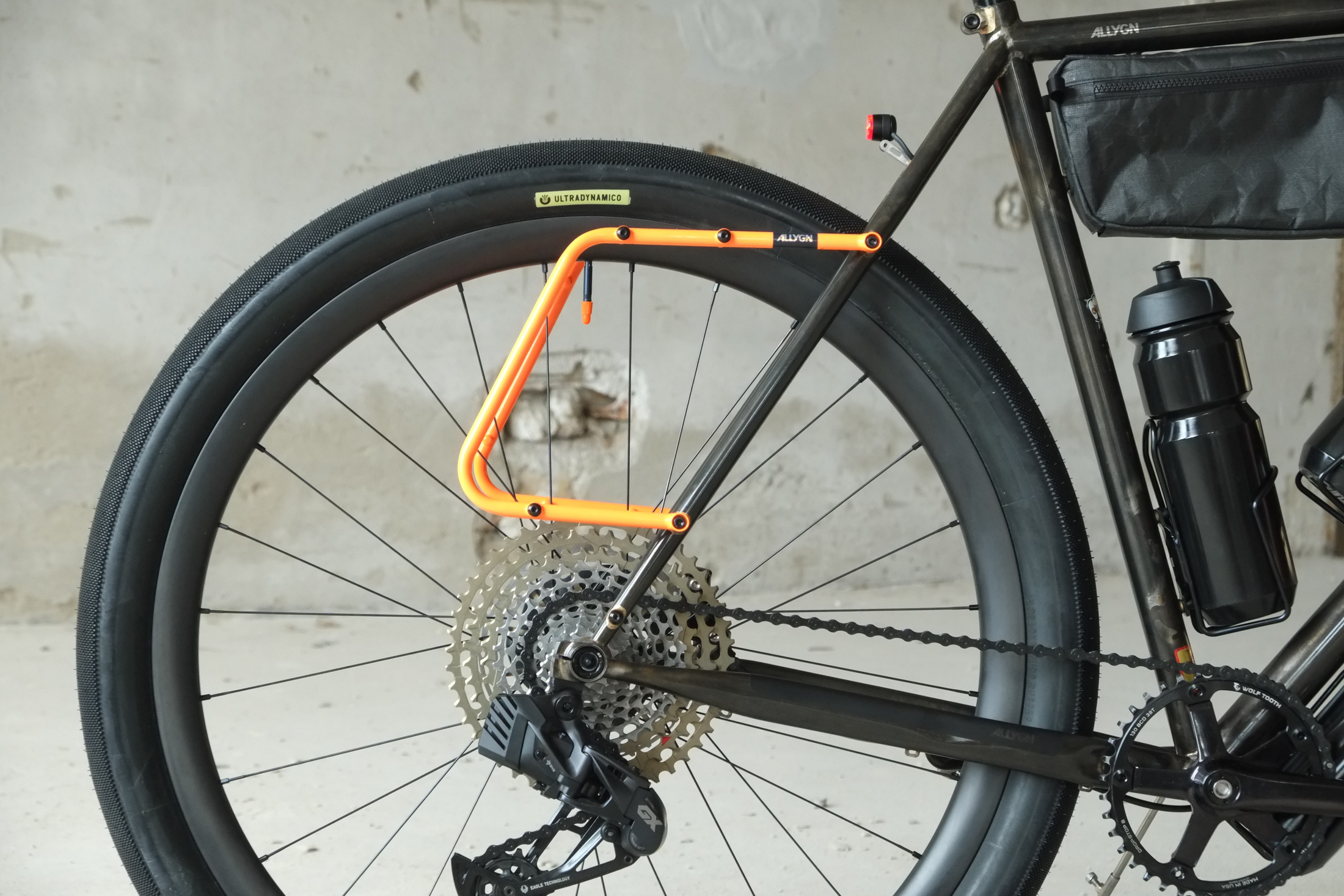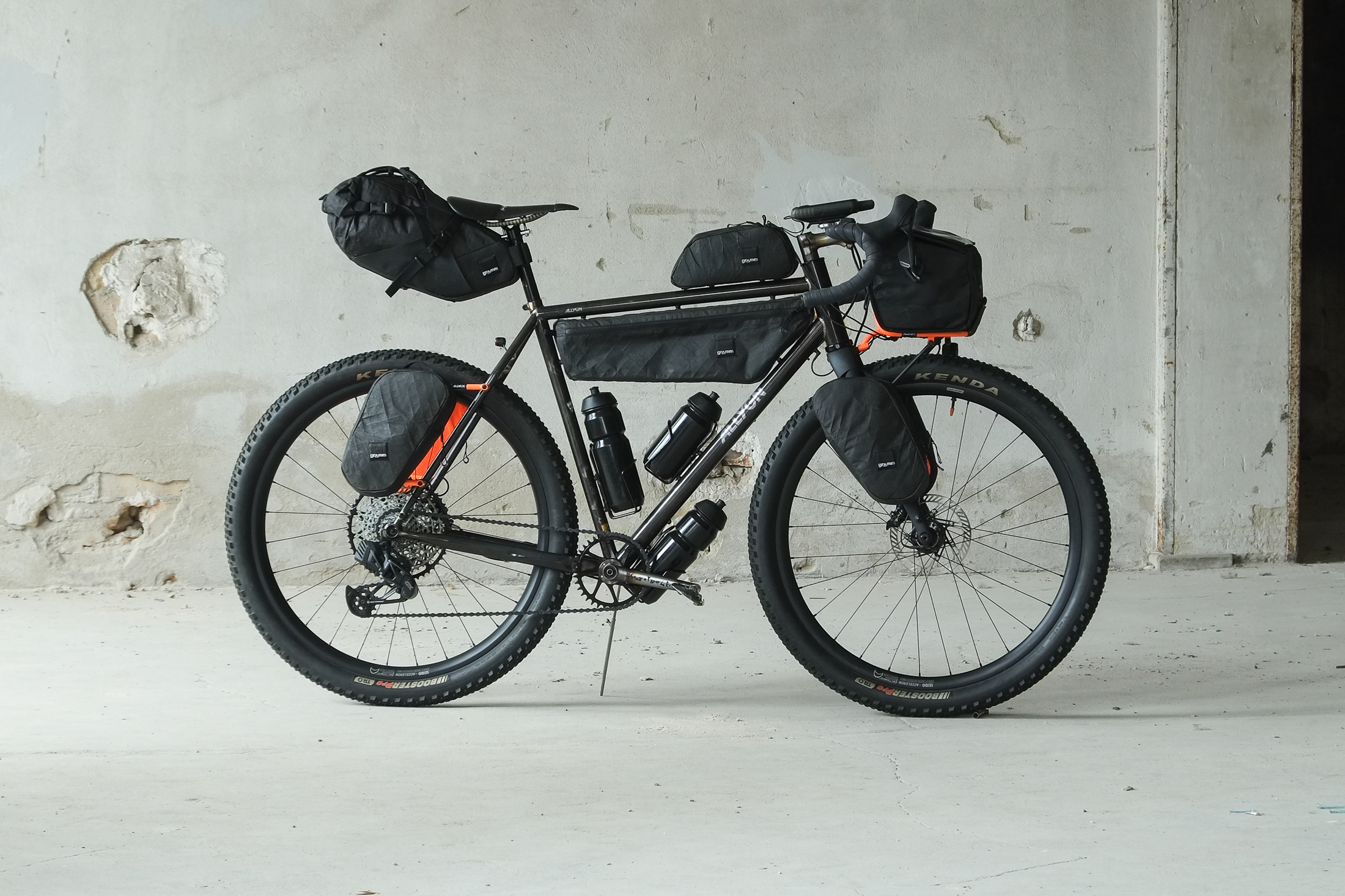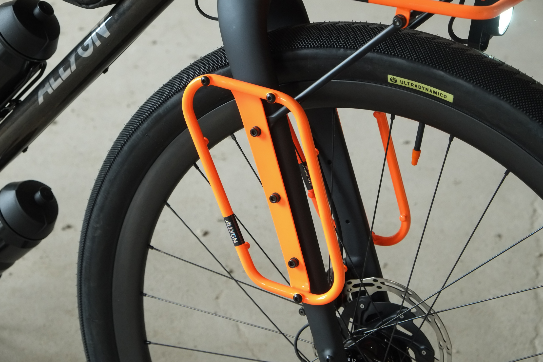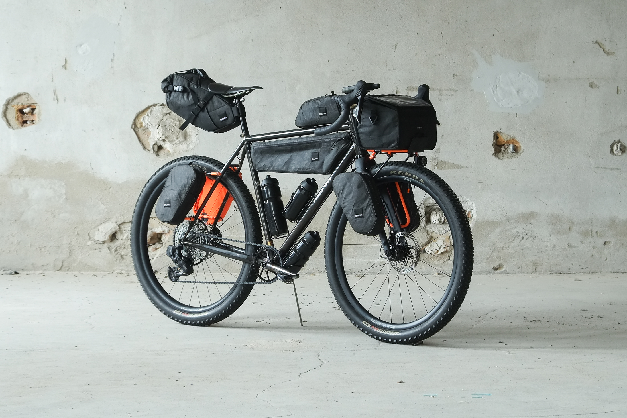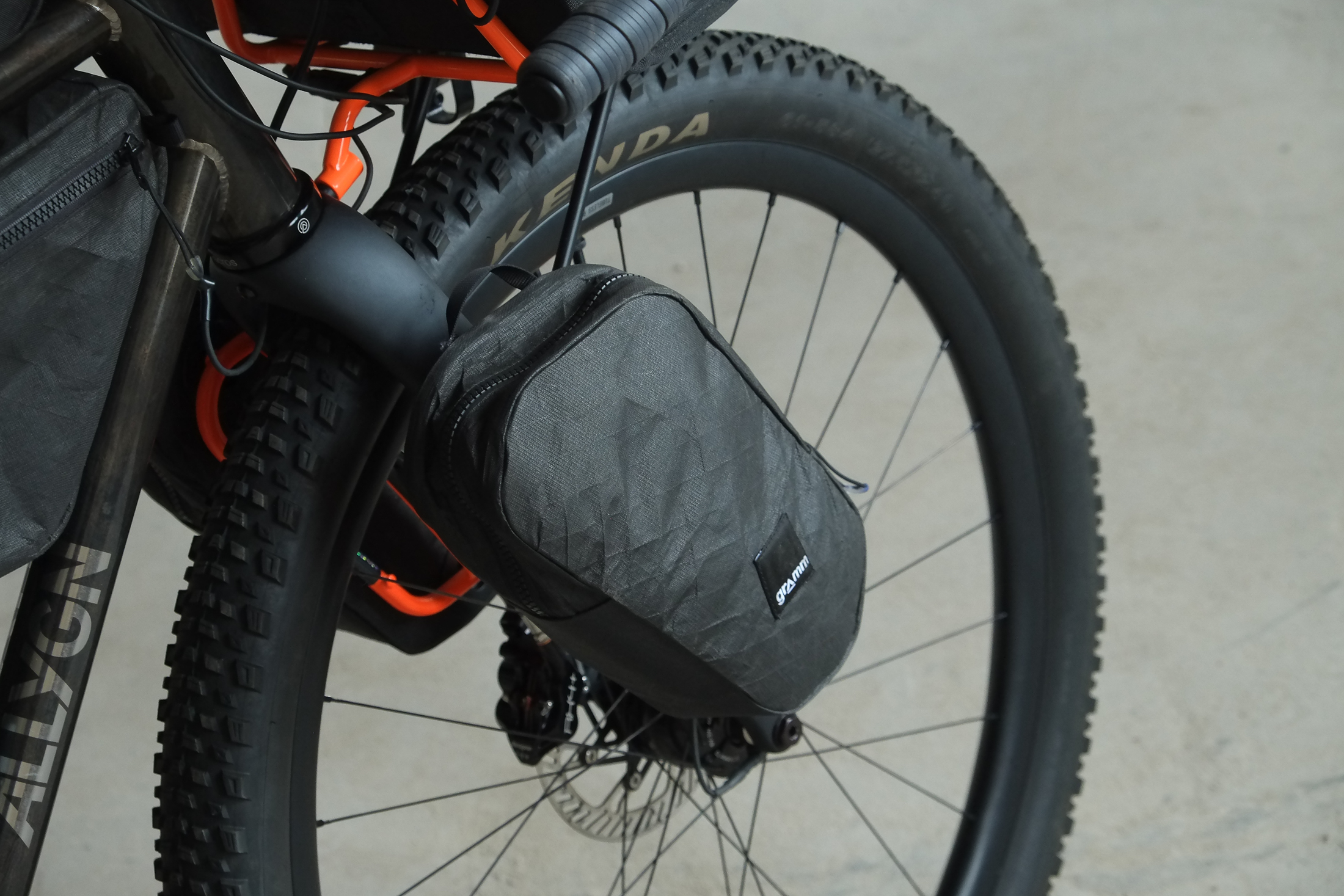 But the front Microrider racks will fit on every bike which features at least 2 eyelets on the fork legs with a 64mm spacing. The rack can be used like a normal anything cage rack or much better, in combination with the ingenious magnetic mount system Gramm Tourpacking Micro-Pannier bags. The bags have a volume of 3 liters each and are made from super light weight challenge ultra series material. This system will give you all the comfort and increased load capacity of a classic lowrider/pannier touring rig, but will allow you to go all out on really challenging hardcore off road rides. We hope to have the new Micro Rider Bag & Rack system available in our online shops early springtime 2024.