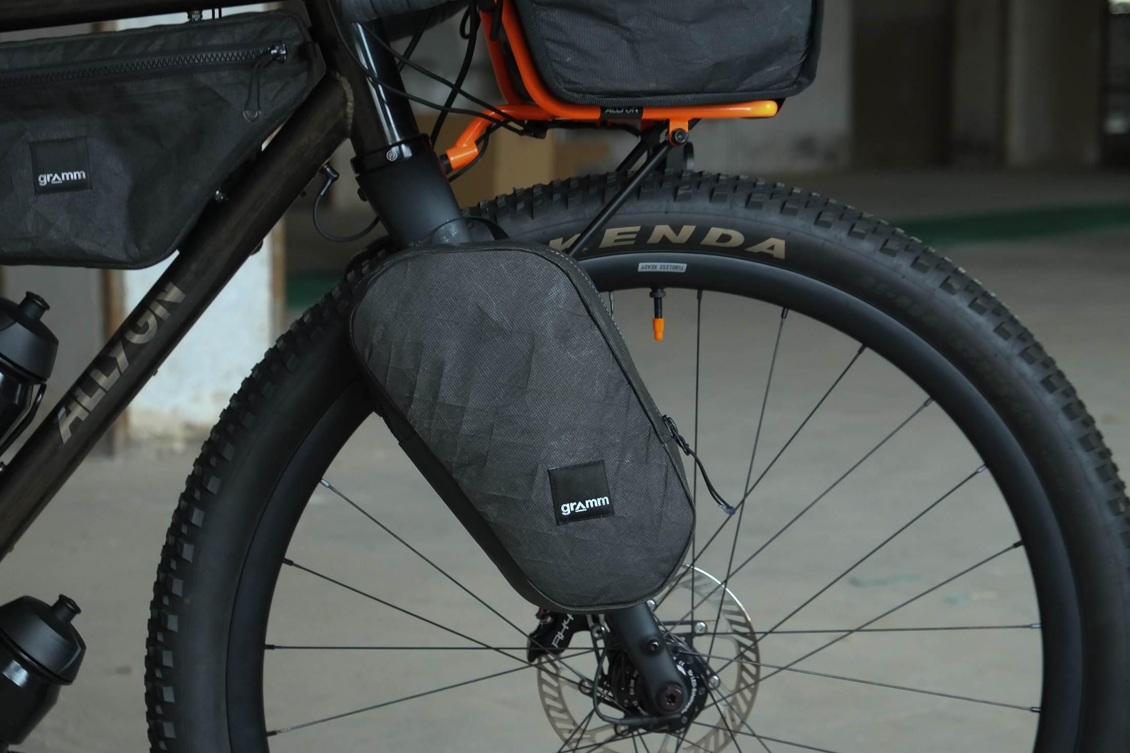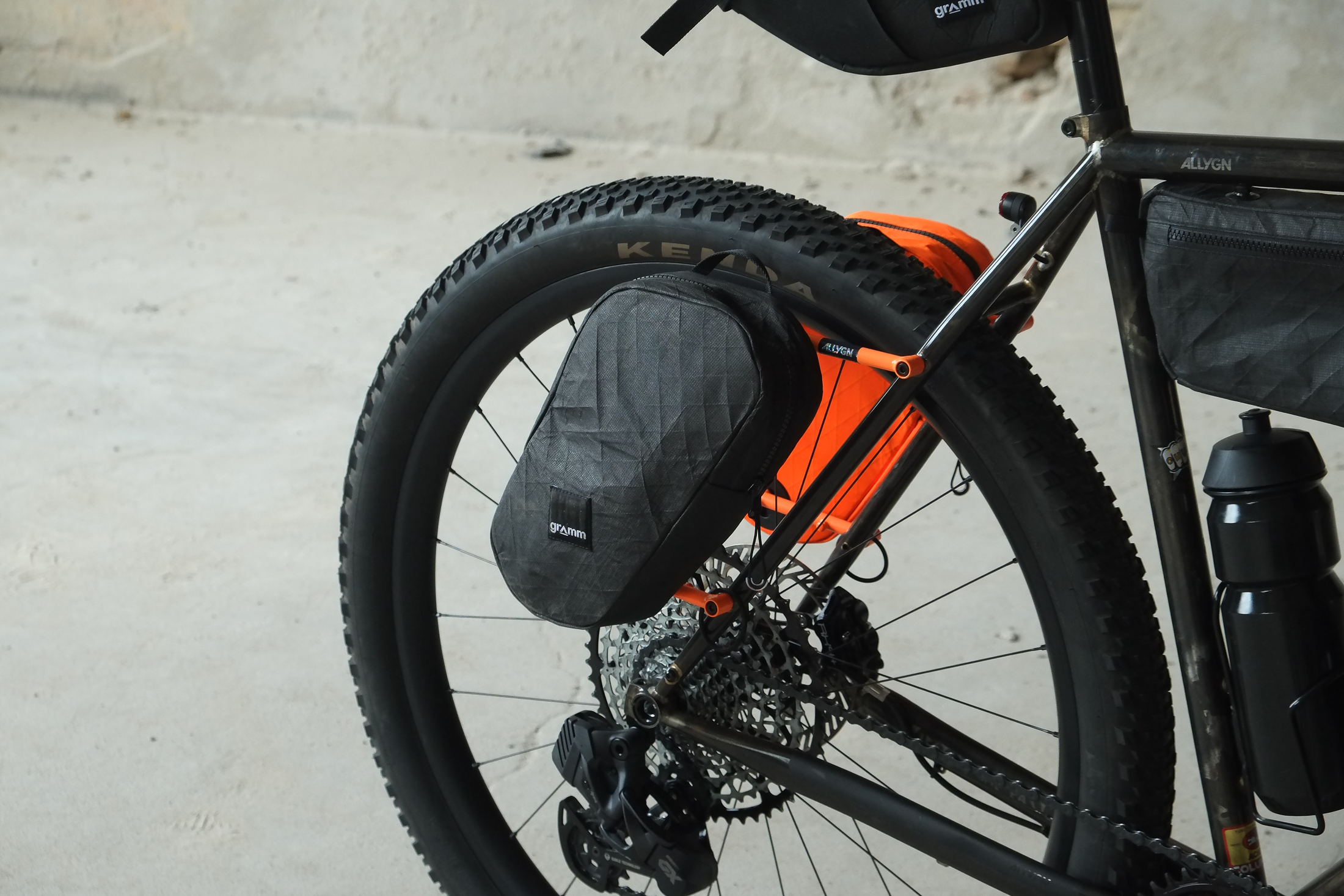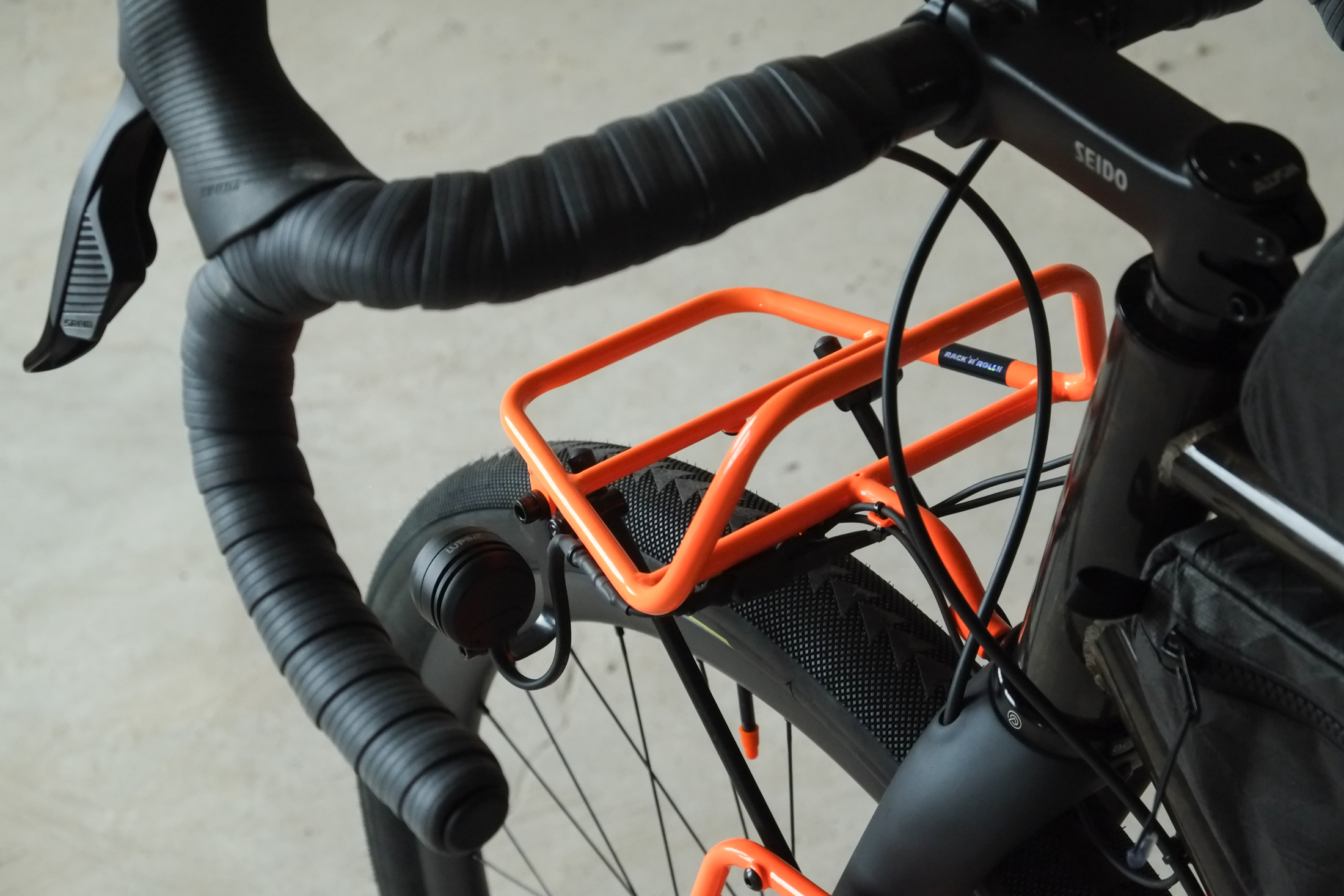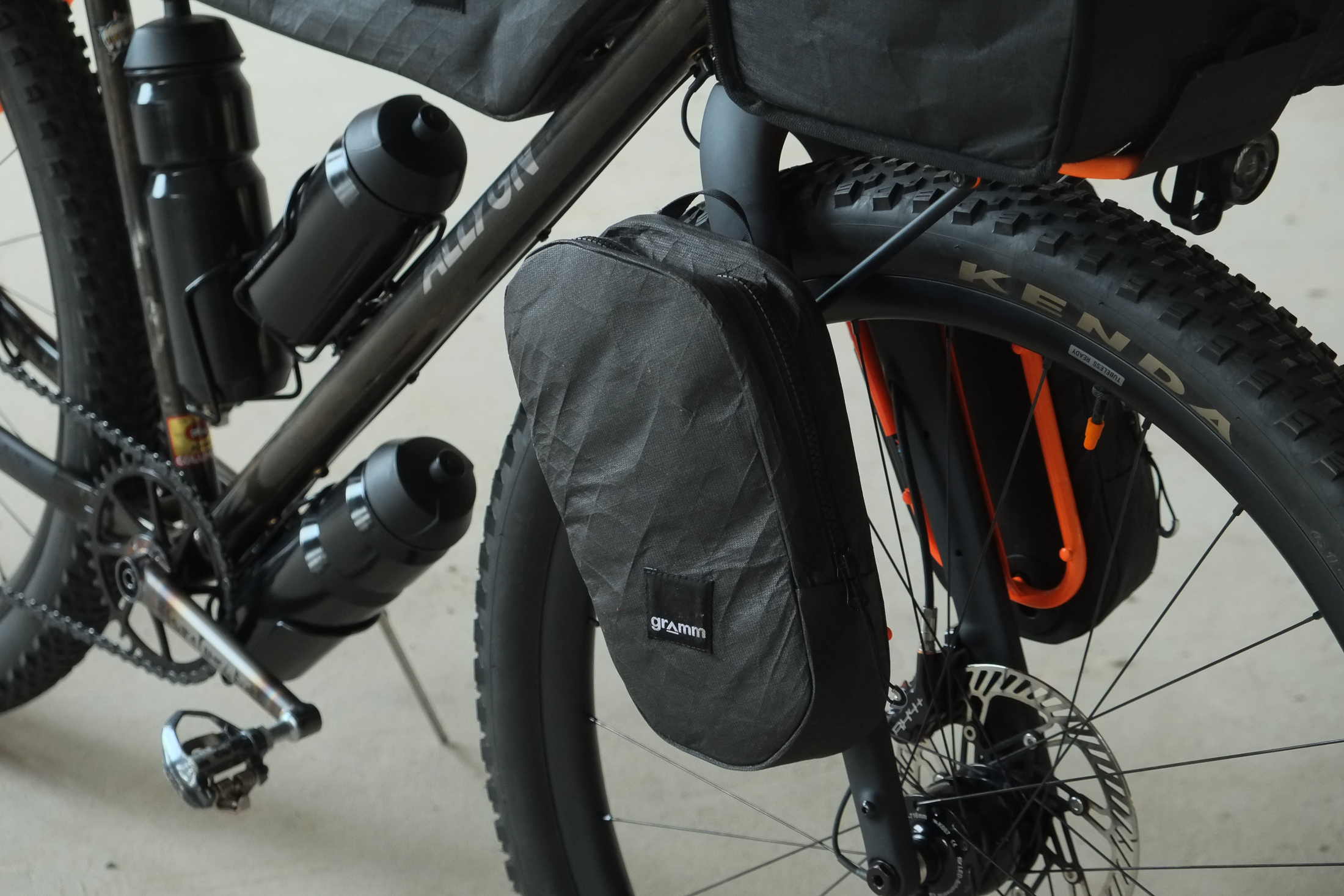 But most important we wanted to test our brand new rack&bag system called the "Microriders". This is a collaborative between Gramm Tourpacking and Fern / Allygn and we created a complete new set up of anything cage like mounted micro-lowrider racks and the matching micro-pannier bags. The bags can be used both ways, either on the front-or on the rear rack, just flip them around 180degrees and you are ready to go!