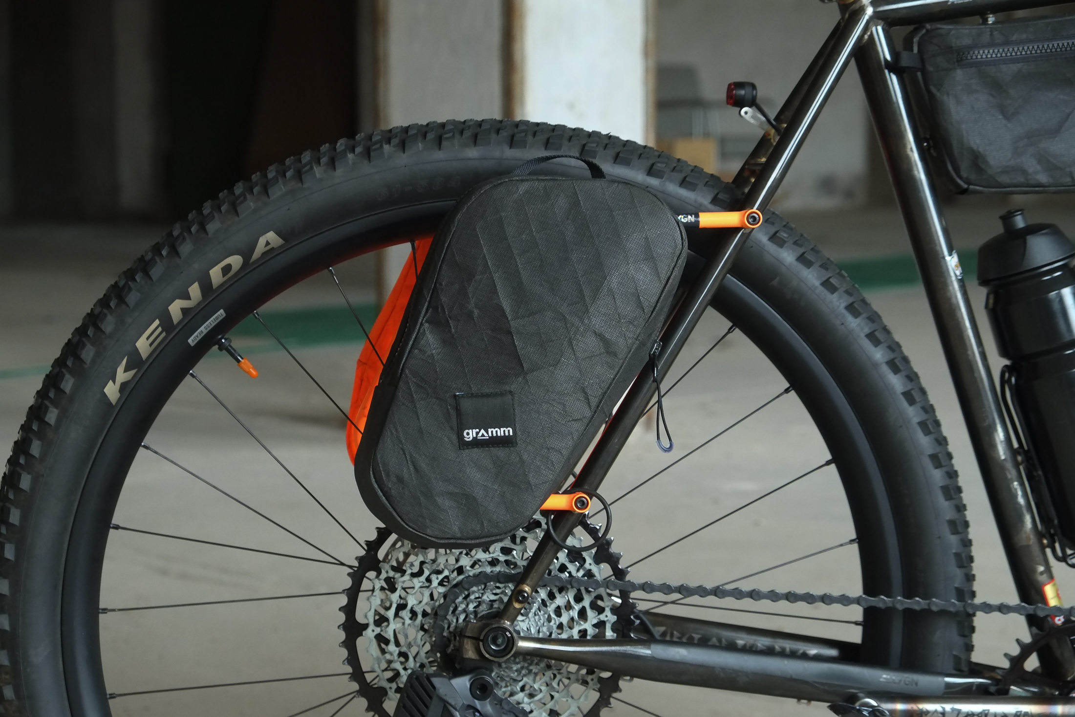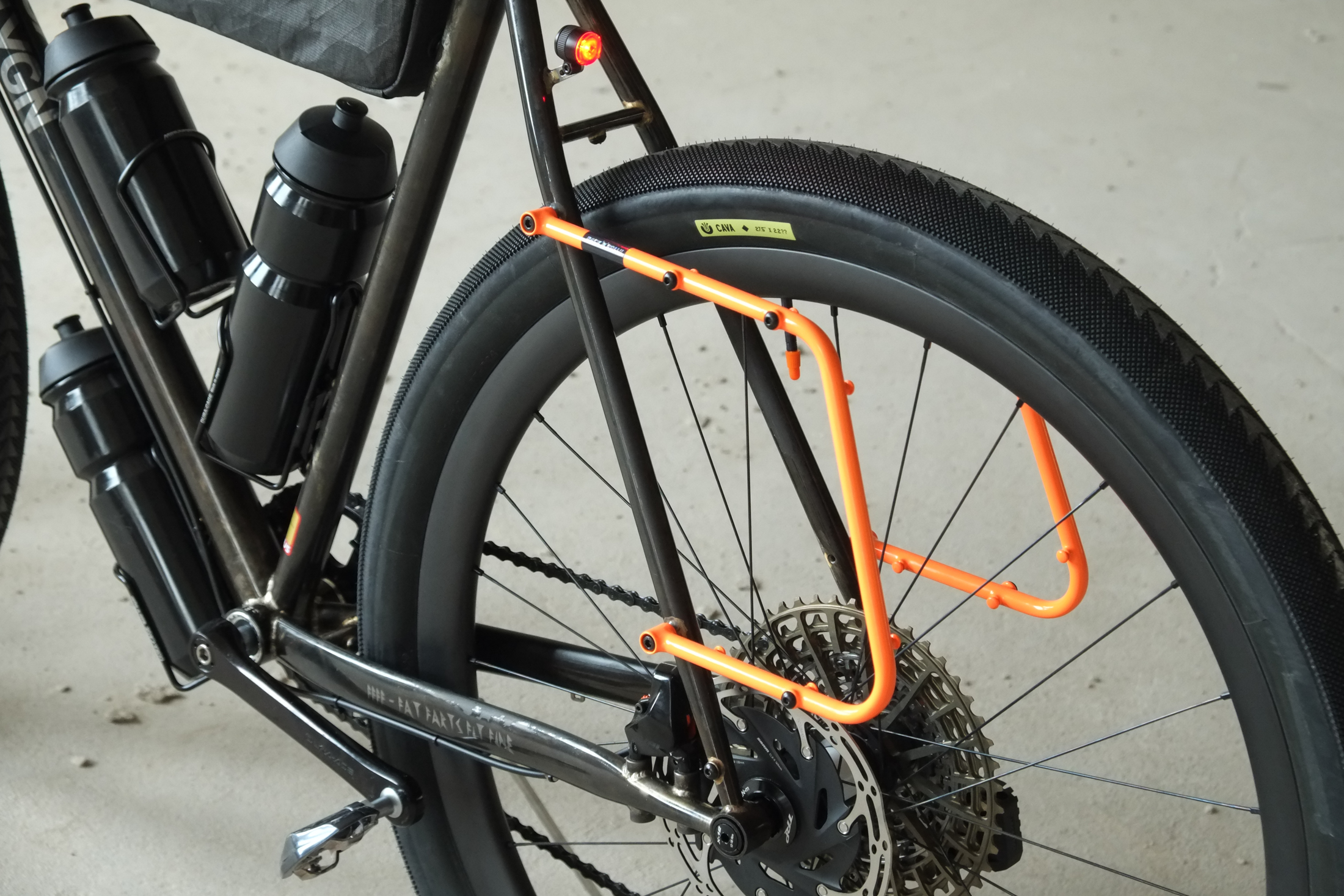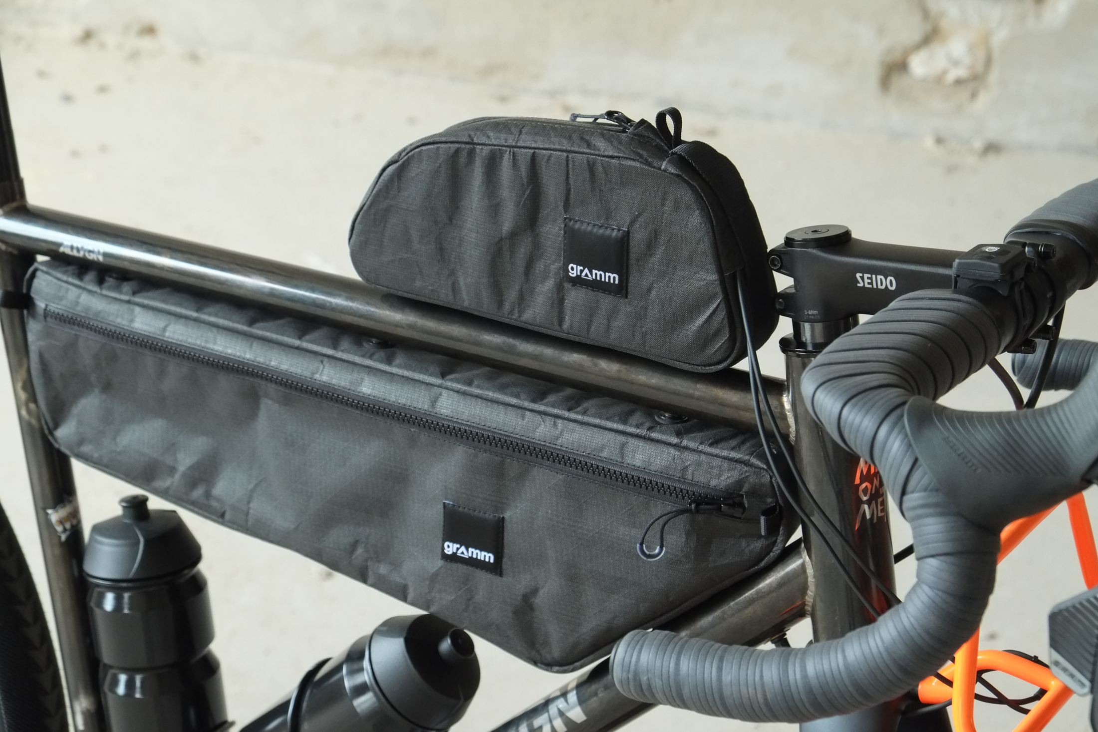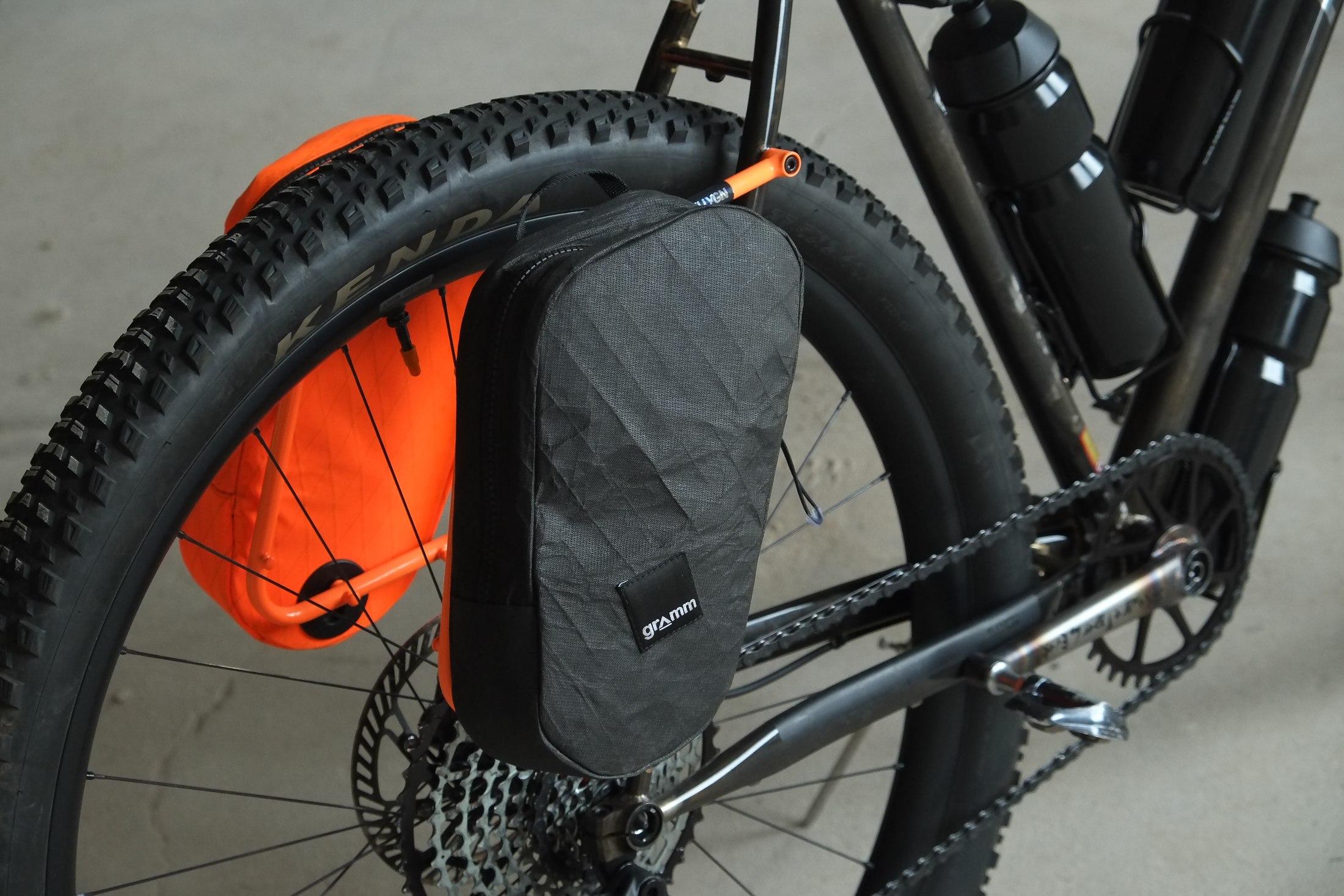 But most important we wanted to test our brand new rack&bag system called the "Microriders". This is a collaborative between Gramm Tourpacking and Fern / Allygn and we created a complete new set up of anything cage like mounted micro-lowrider racks and the matching micro-pannier bags. The bags can be used both ways, either on the front-or on the rear rack, just flip them around 180degrees and you are ready to go!