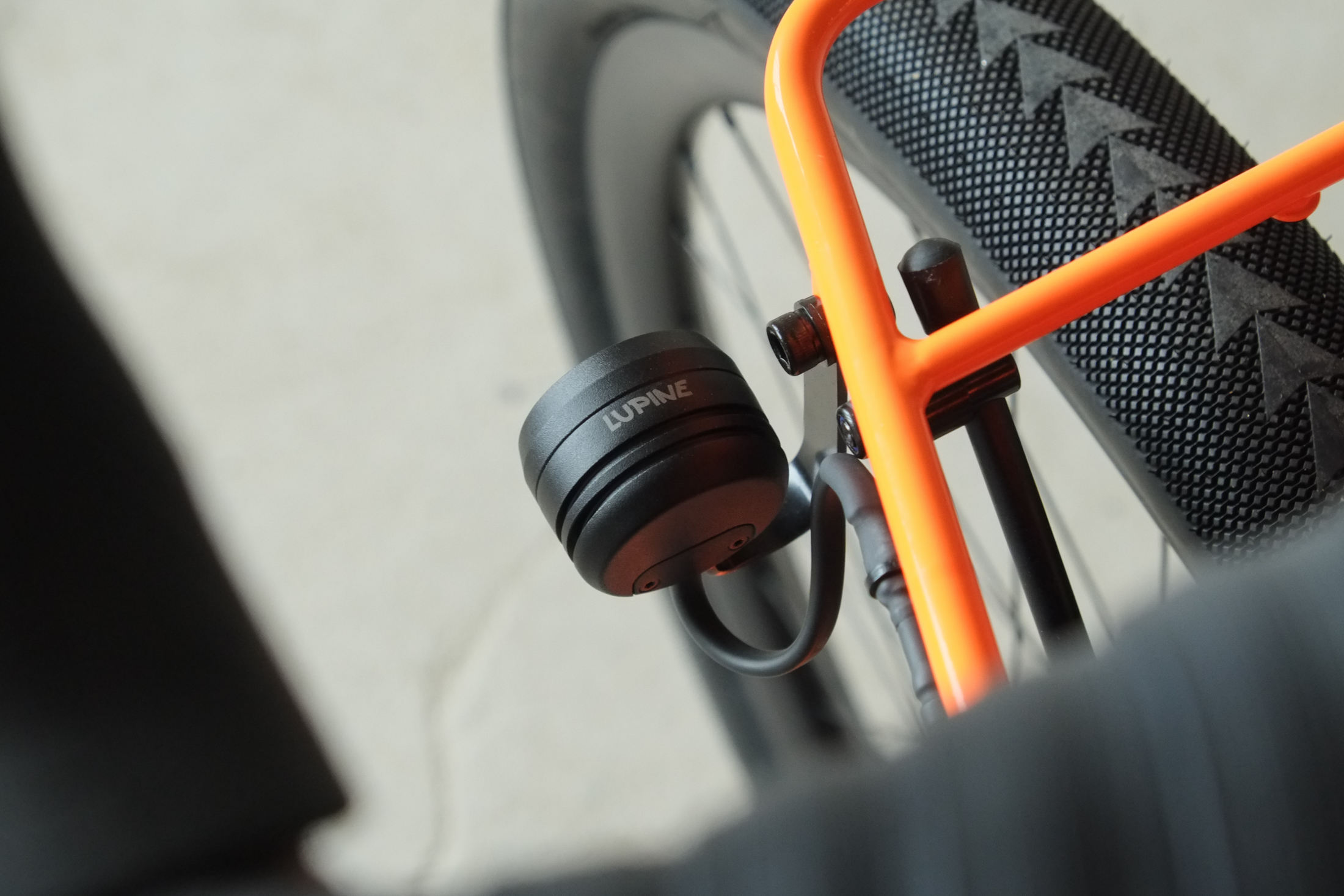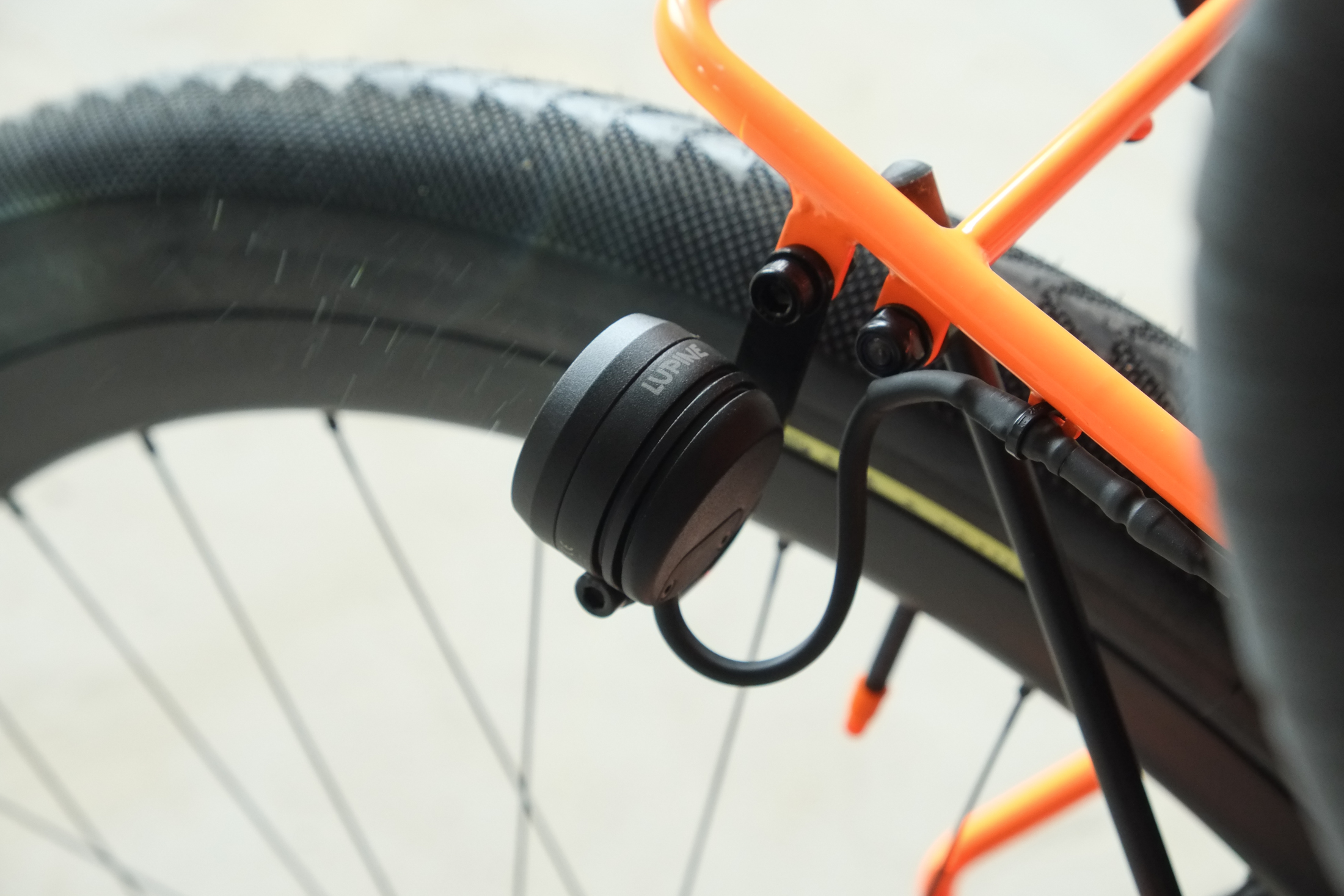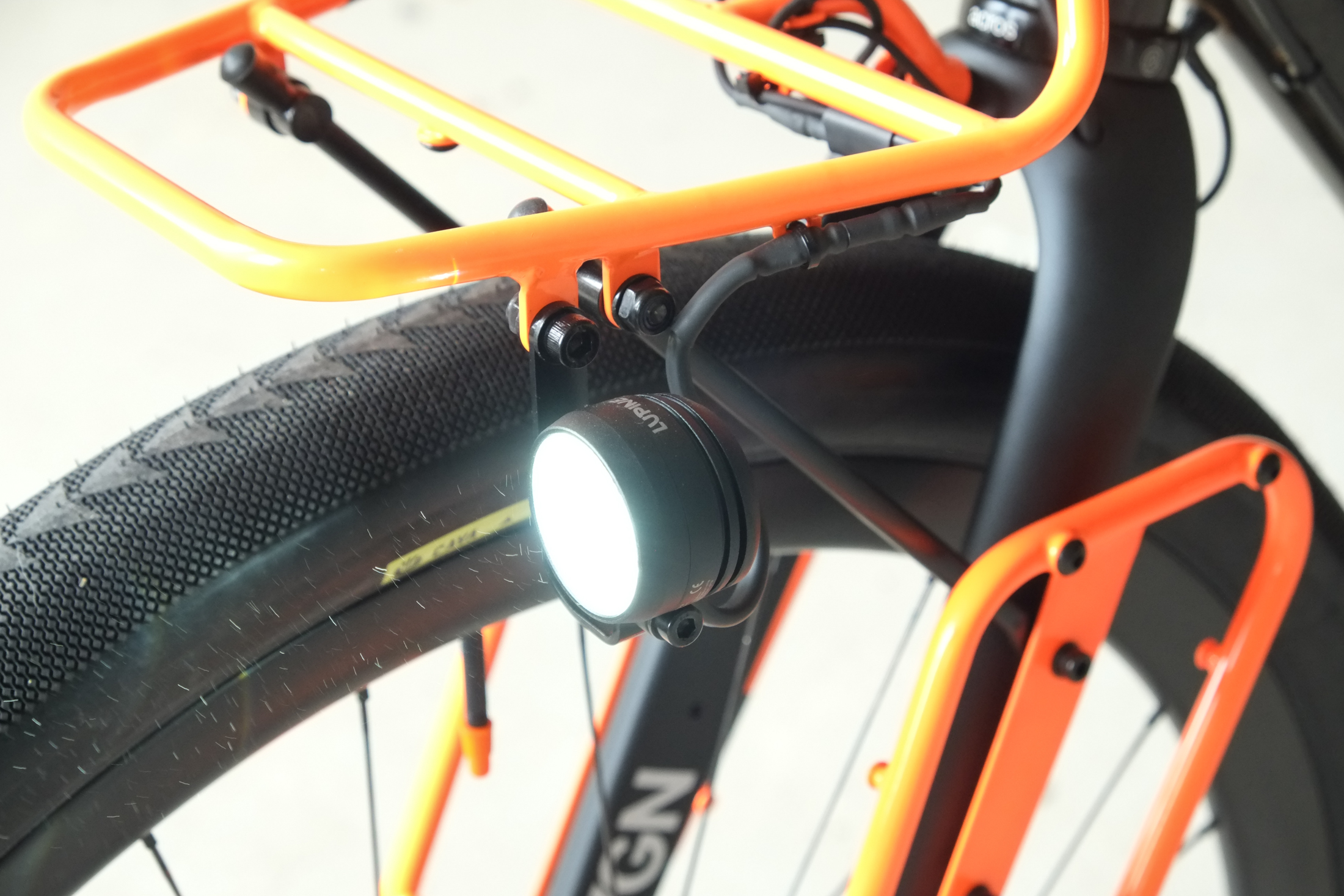 The bike also features the first ever complete integrated 12V lighting with a modified Lupine SL Nano AF E-bike headlight, which is powered by a SON hub dynamo charged Forums Charger power pack.