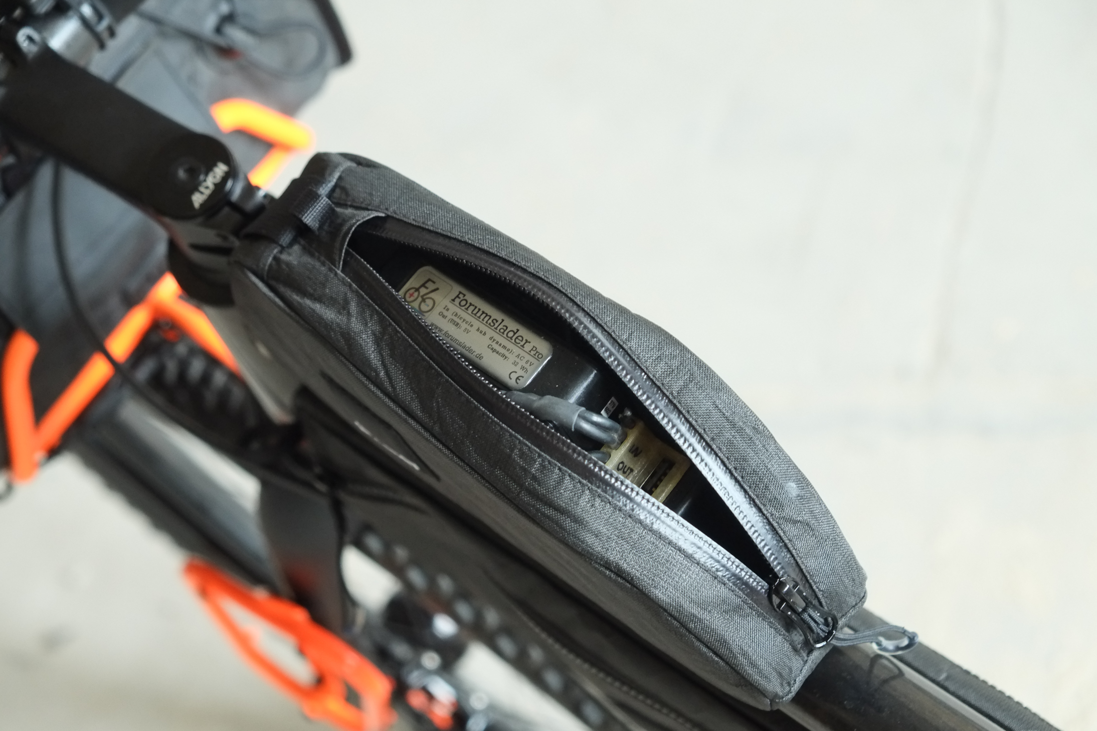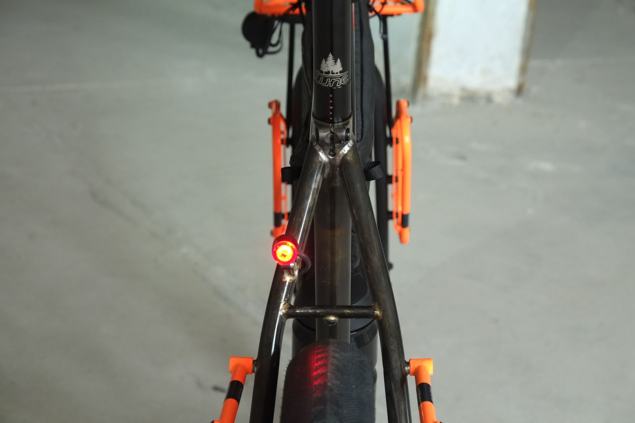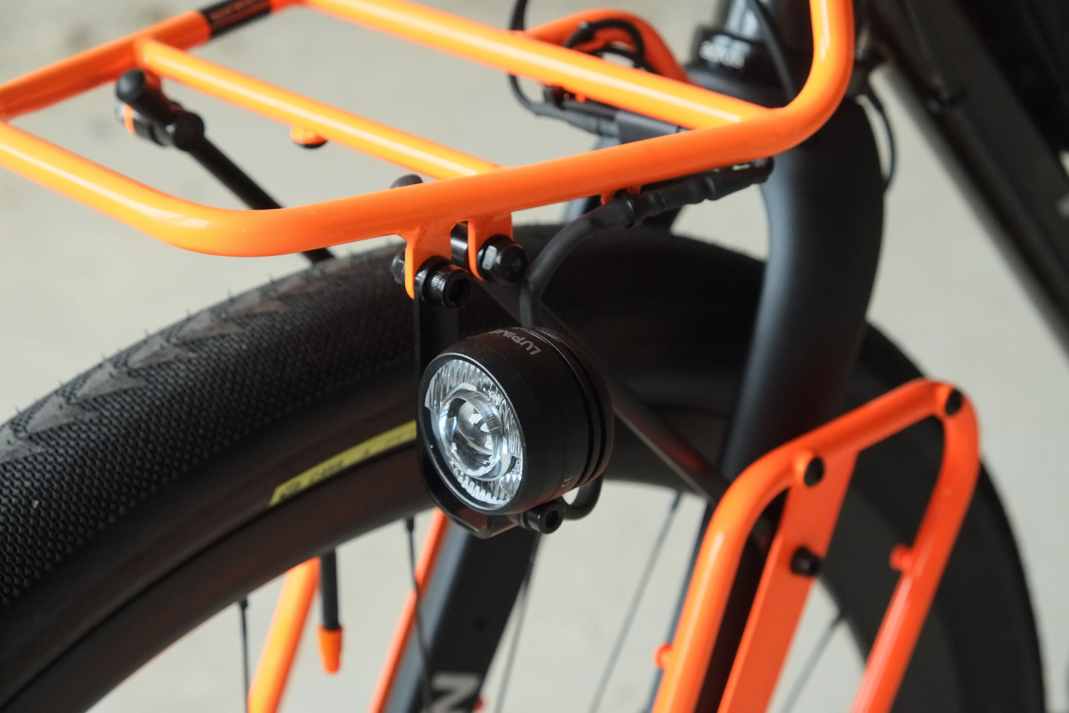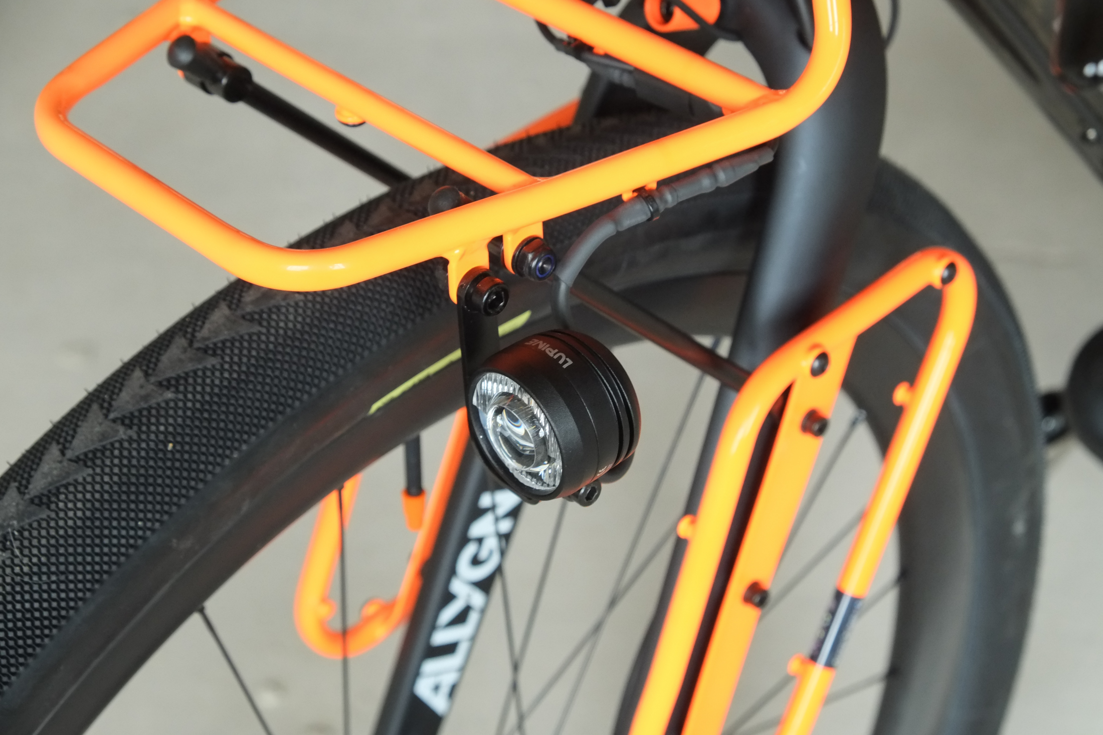 The bike also features the first ever complete integrated 12V lighting with a modified Lupine SL Nano AF E-bike headlight, which is powered by a SON hub dynamo charged Forums Charger power pack.