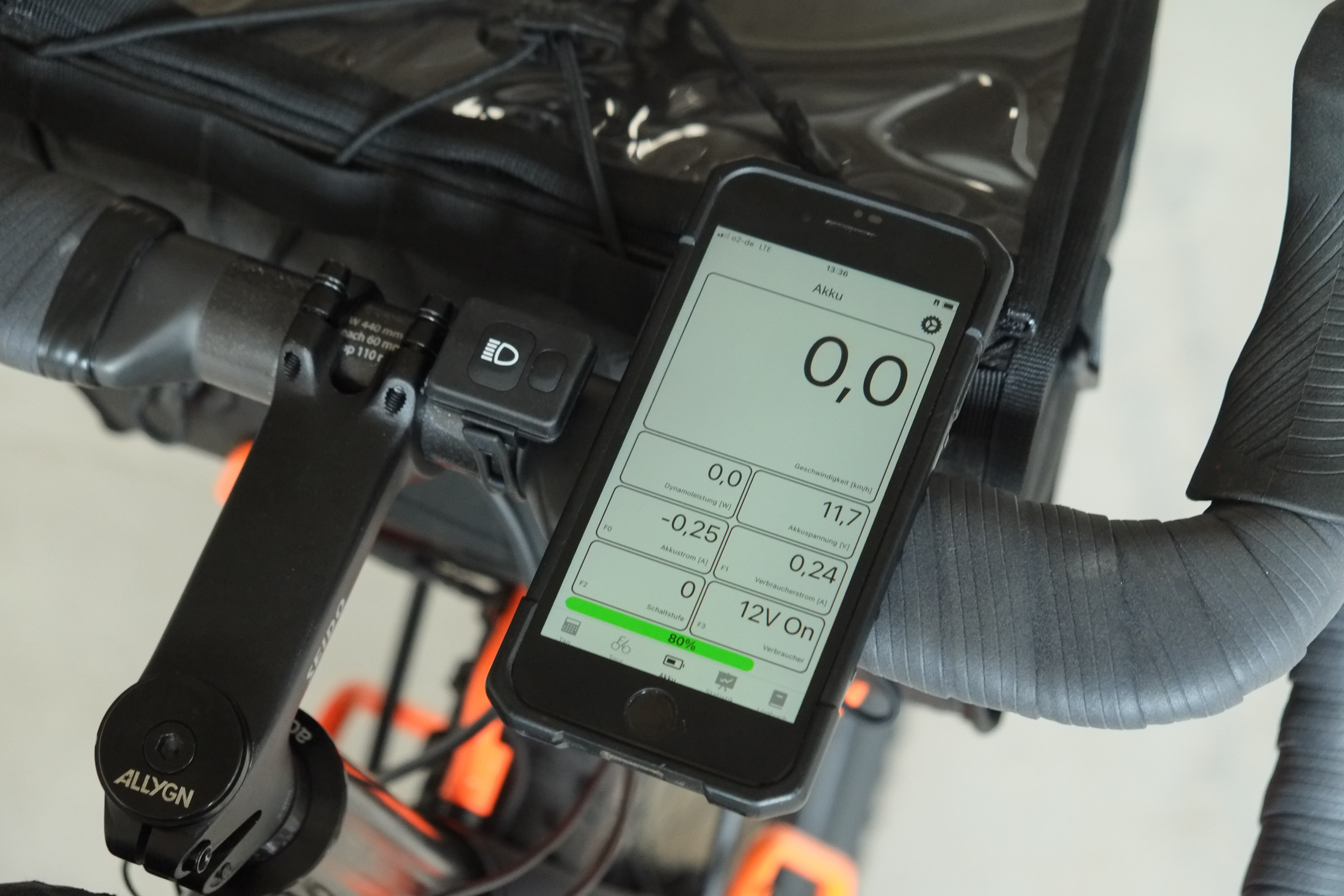 The headlight itself is operated via a Bluetooth remote control from the handlebars and the Forums Charger can be controlled via the smartphone