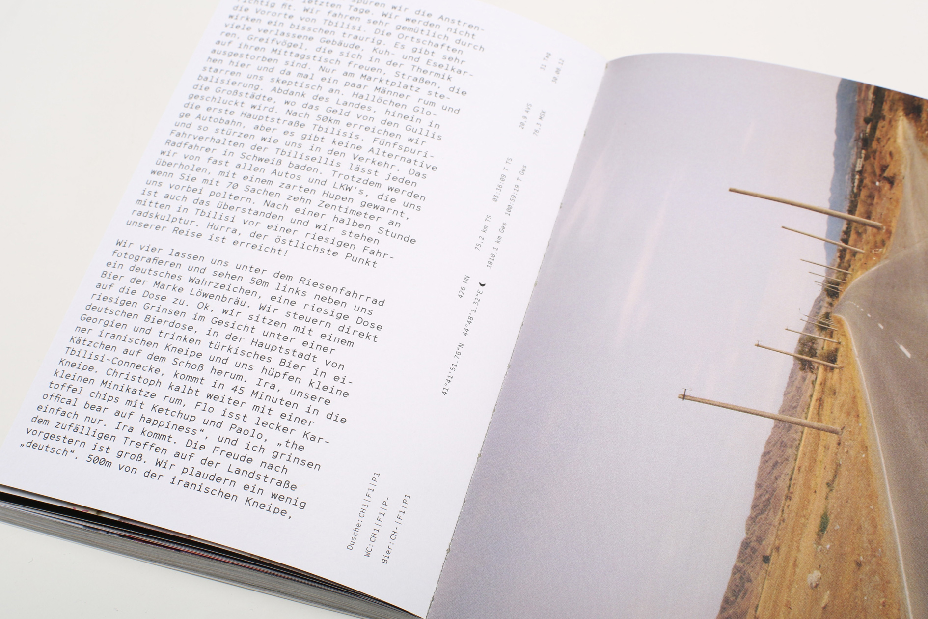 Vielleicht kann man es am ehesten so beschreiben: Man bekommt die Reise nicht erzählt, sondern hat stattdessen die Möglichkeit – wie ein Voyeur – auf dem Handy des Reisenden herumzuklicken und sich an den Fetzen zu ergötzen, die man dabei zu sehen bekommt. Und nun, was soll man damit? Genau das fragte ich mich auch… Die drei Typen haben dieses „Liederliche“, dieses Fetzenhaftige höchst sorgfältig (!) zu einem Buchkonzept gemacht und in nur 20facher (!) Auflage gedruckt (verkaufen wollen die offenbar auch nicht). Und nachdem ich das Buch in den Händen haben durfte, wollte ich es nicht mehr hergeben. Warum bloß??? Warum habe ich das Bedürfnis dieses Ding zu behalten? Dieses Buch enthält Null-Belehrung, Null-Empfehlung und Null-Erklärung – es ist pure Lebenslust die da auf den Voyeur (auf mich) überschwappt. Warum sitze ich eigentlich noch hier – erzähle anderen über Reisen anderer Typen… – ich habe doch auch ein Rad – und bis zum Schwarzen Meer scheint es ein Kinderspiel zu sein… (Maxi Kutschera , September 2015)