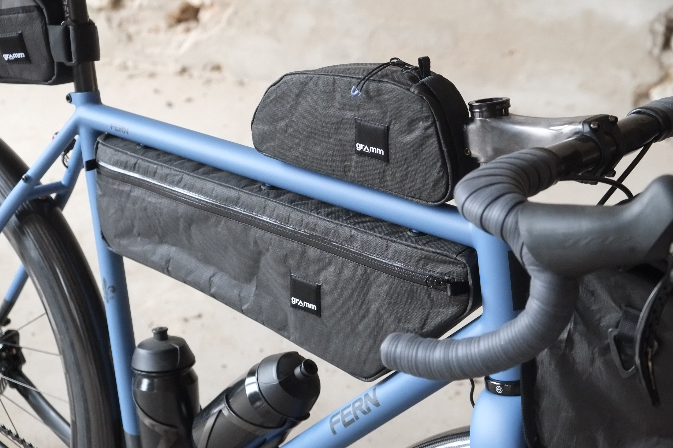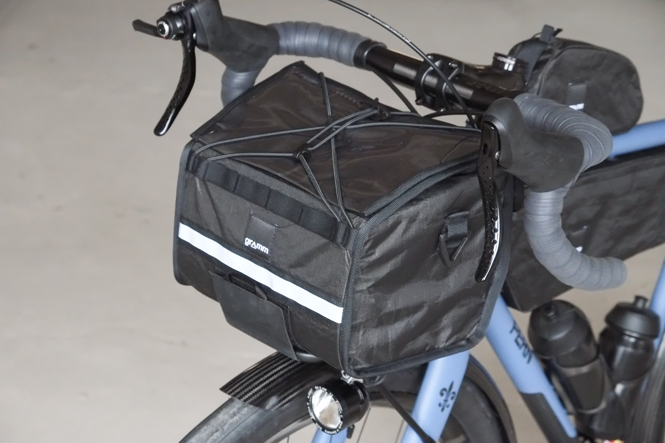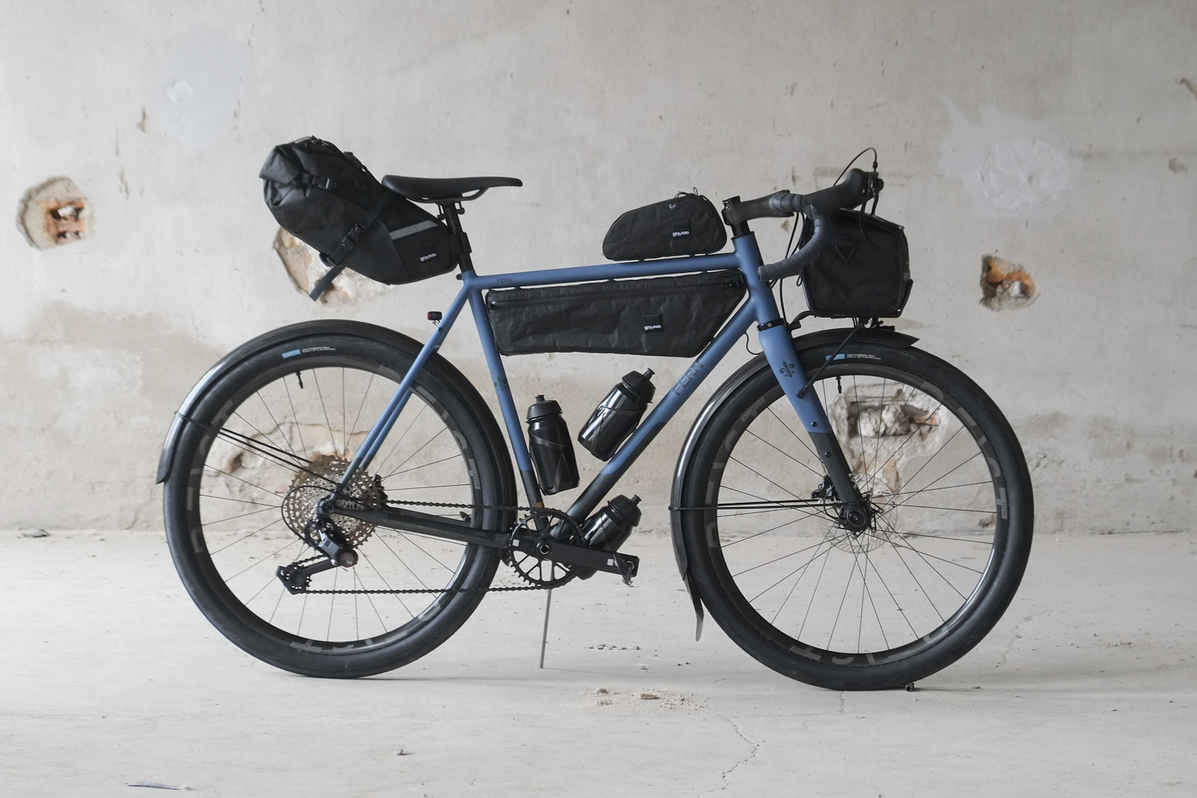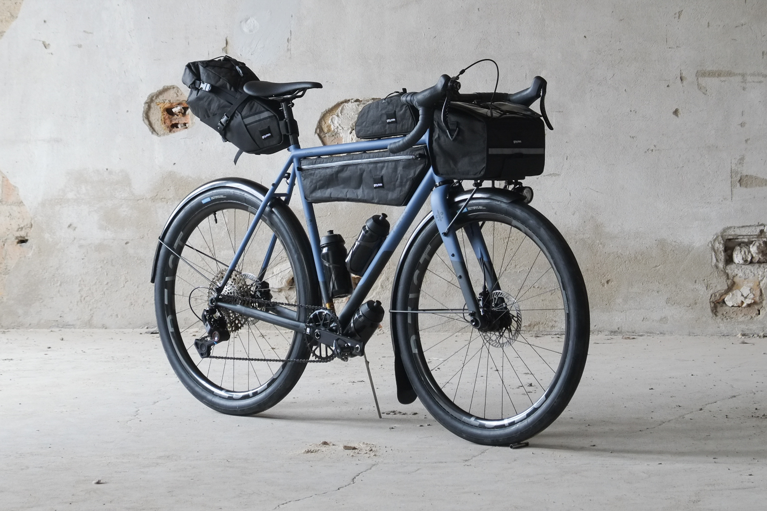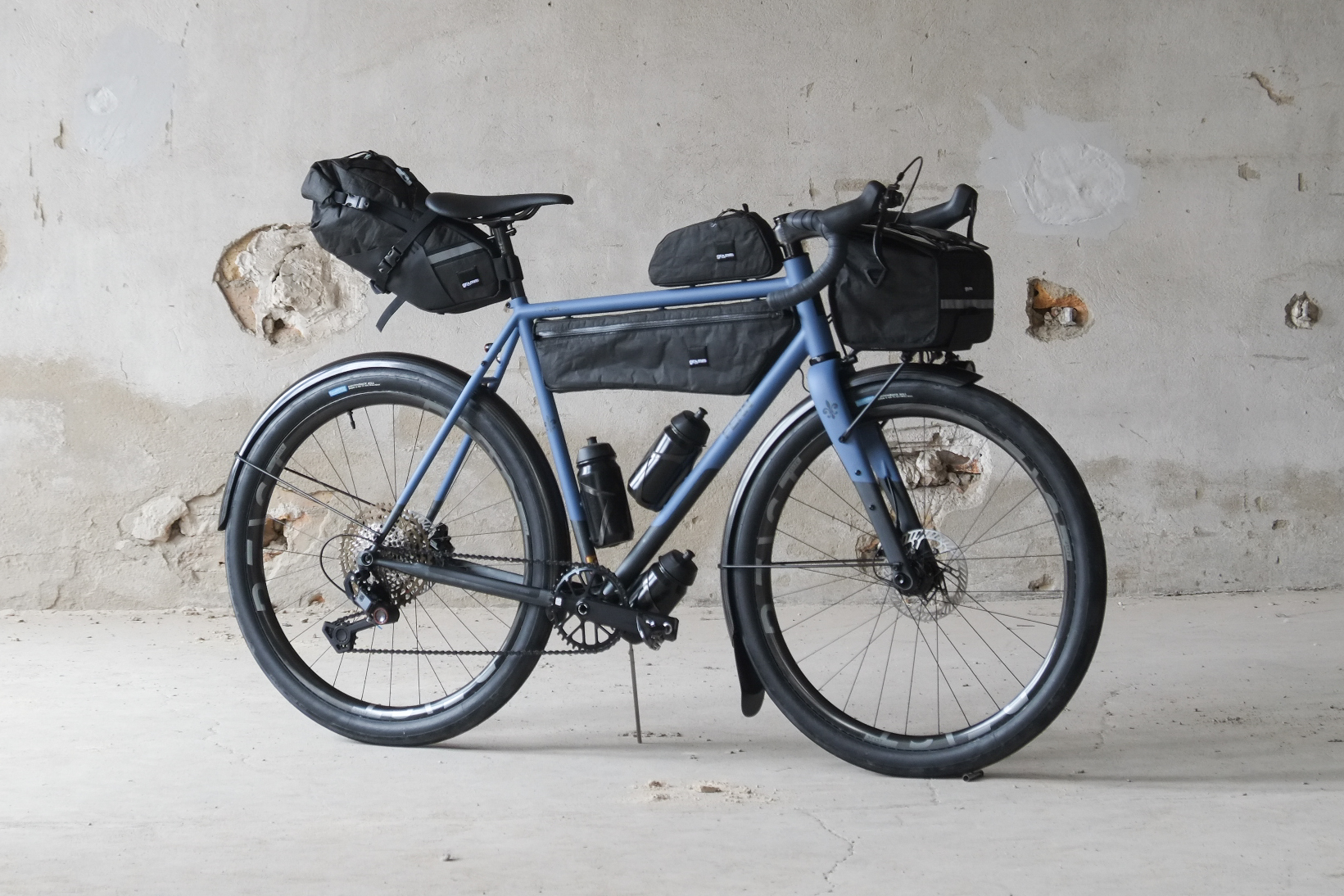 This amazing #candoeverything modern rando / gravel bike we build for Jan from Switzerland who came to Berlin by train to pick up his dream machine and rode his brand new bike all the way back to the swiss mountains, how ccolis that! This bike features just the finest parts and components made by our friends at Ingrid Components, Beast Components, Campagnolo, Gevenalle, Rene Herse, Son Nabendynamo, etc. Superbe blue Lily paintjob as usual by Mr. Paint aka Velociao! Fantastic bag set up by Gramm Tourpacking, matching Diamond Bags and Allygn Components Diamond Front Rack, available in our online shop now!