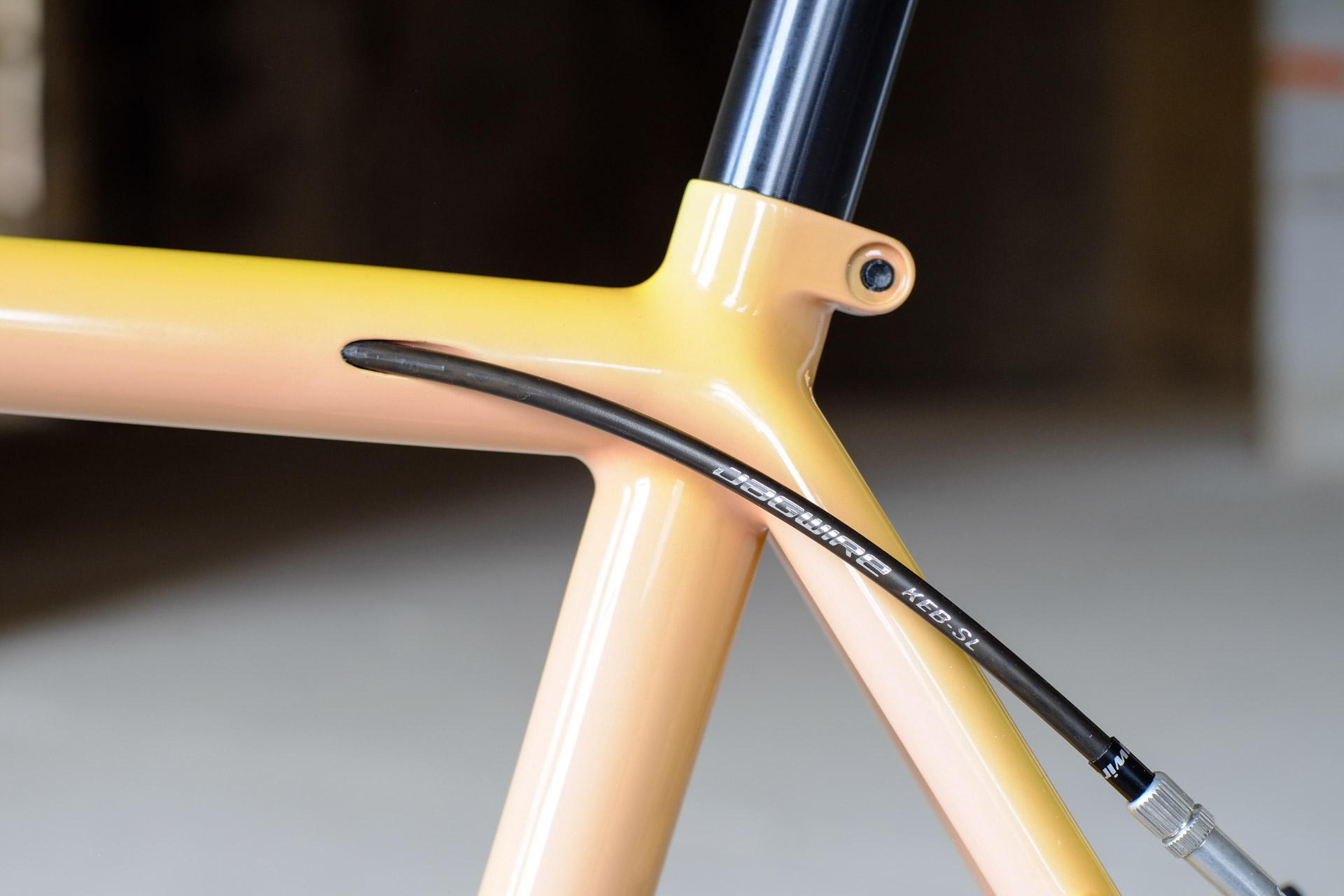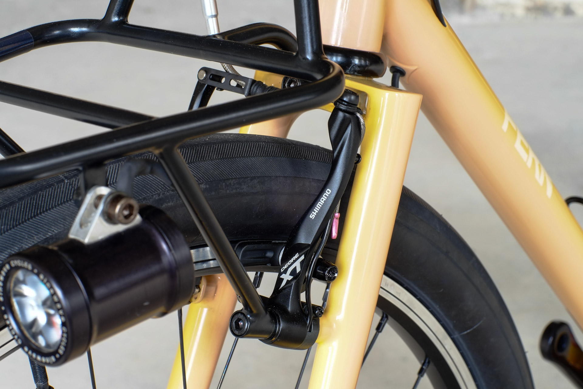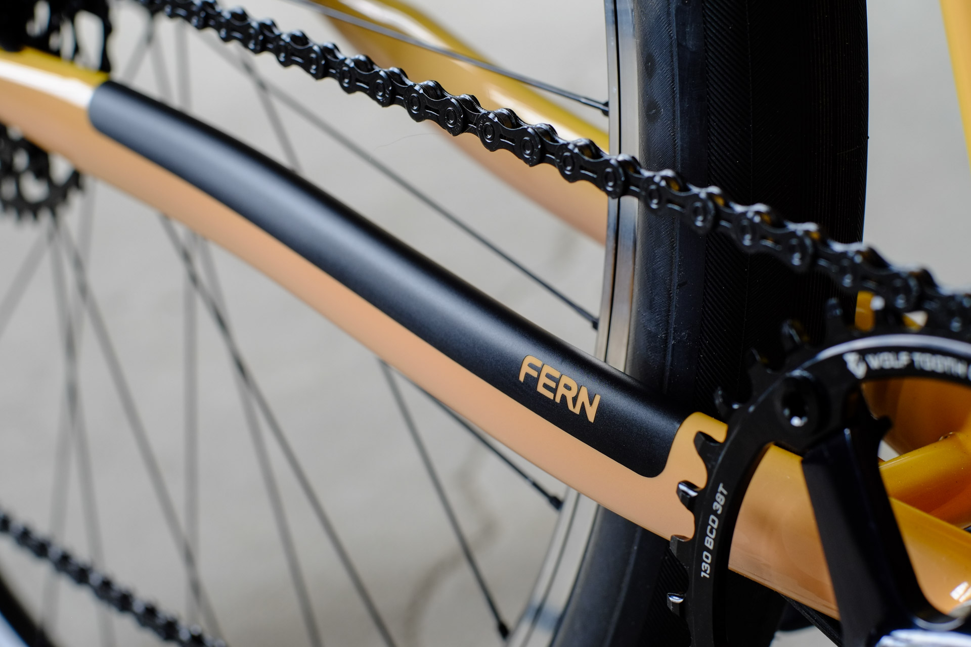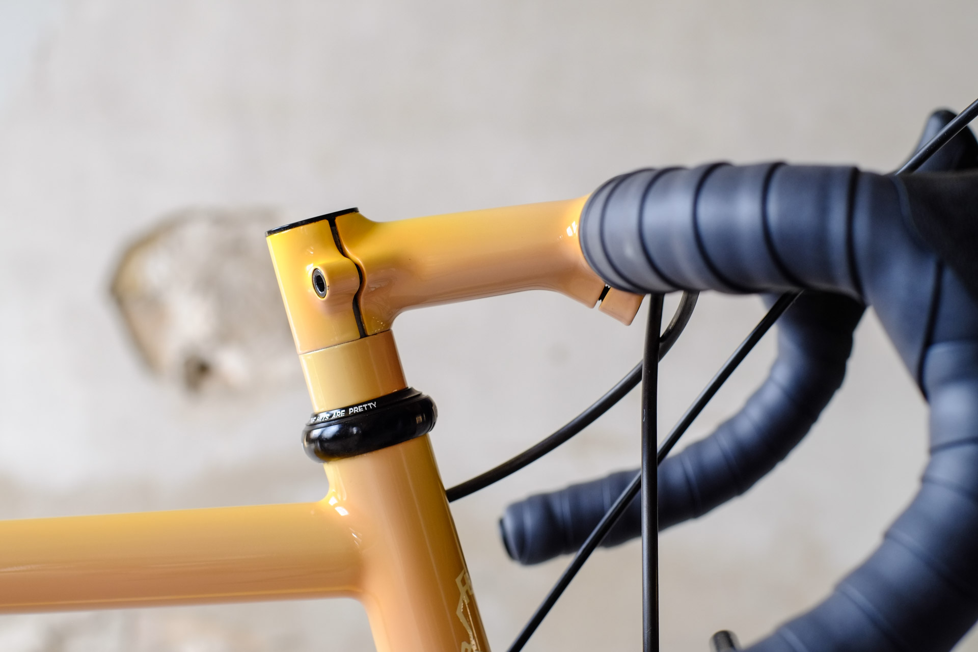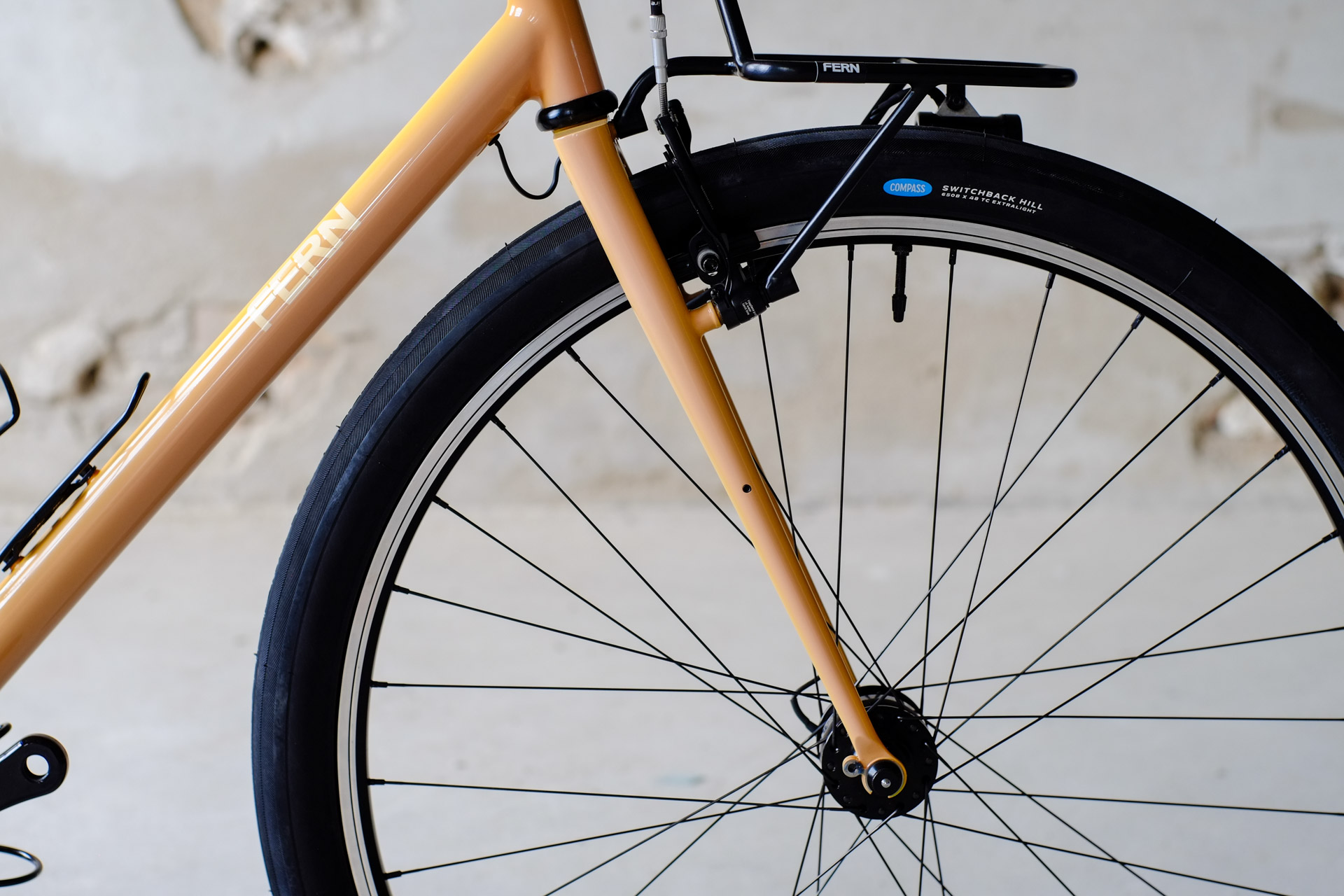 This is our latest new breed,...a cross of the classic randonneur bike CHICO and the rough terrain allroad bike CHUCK. When we created this new type of bike for Nils, we had in mind that this one should be equally capable to handle long distance rides such as Paris-Brest-Paris, but should also absolutely perform on hard offroad- and gravelrides. Fat 650B / 48mm Rene Herse Switchback tires provide a cushy ride even under roughest conditions without making any sacifices in speed. Put on Honjo Fenders for Brevet riding, take them off and you will have room for up 52mm wide tires.