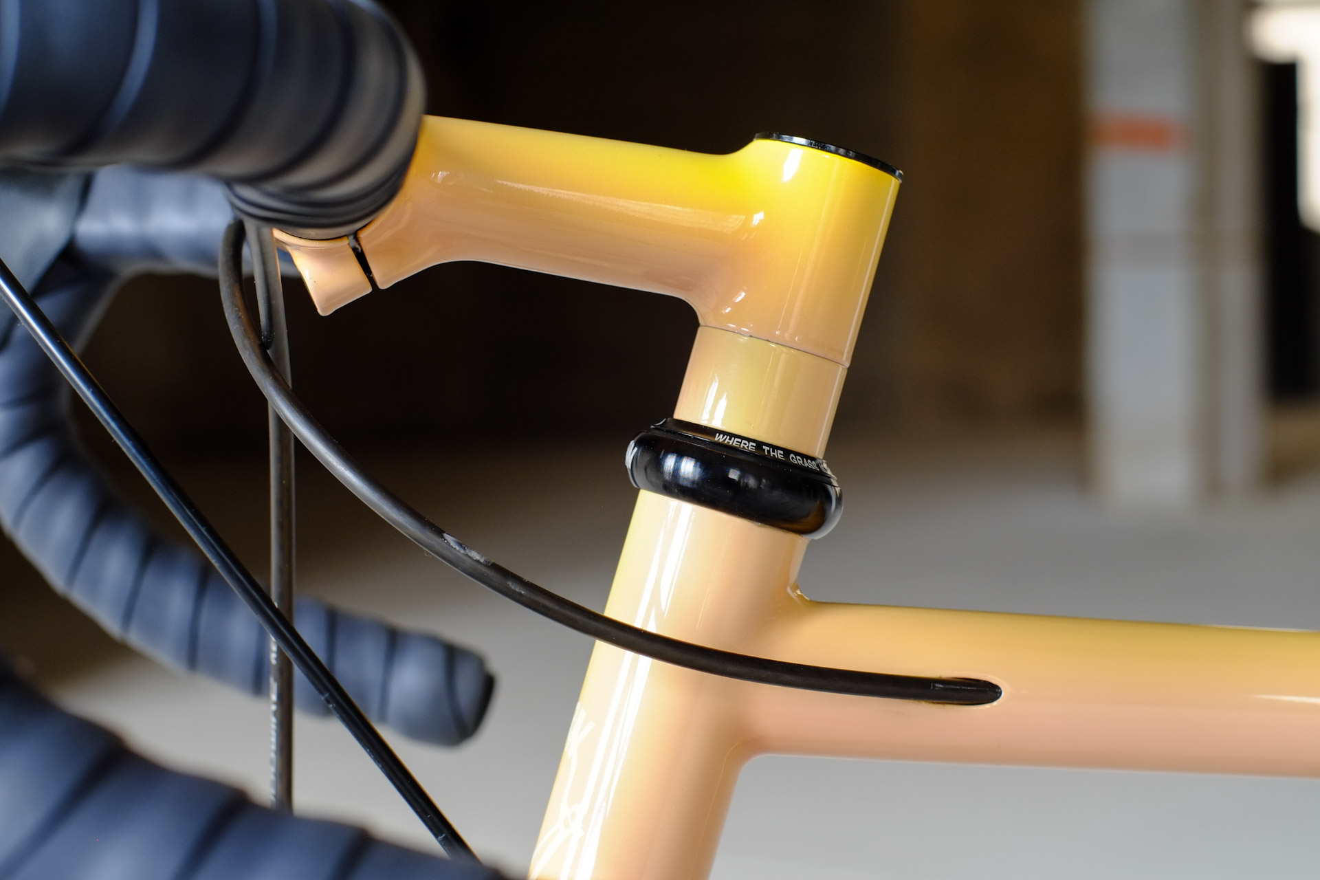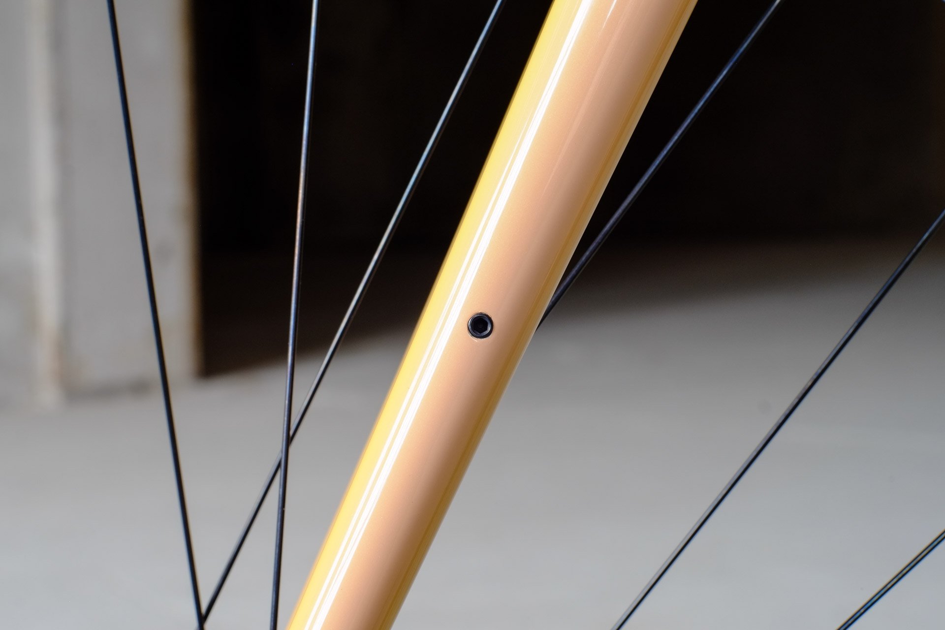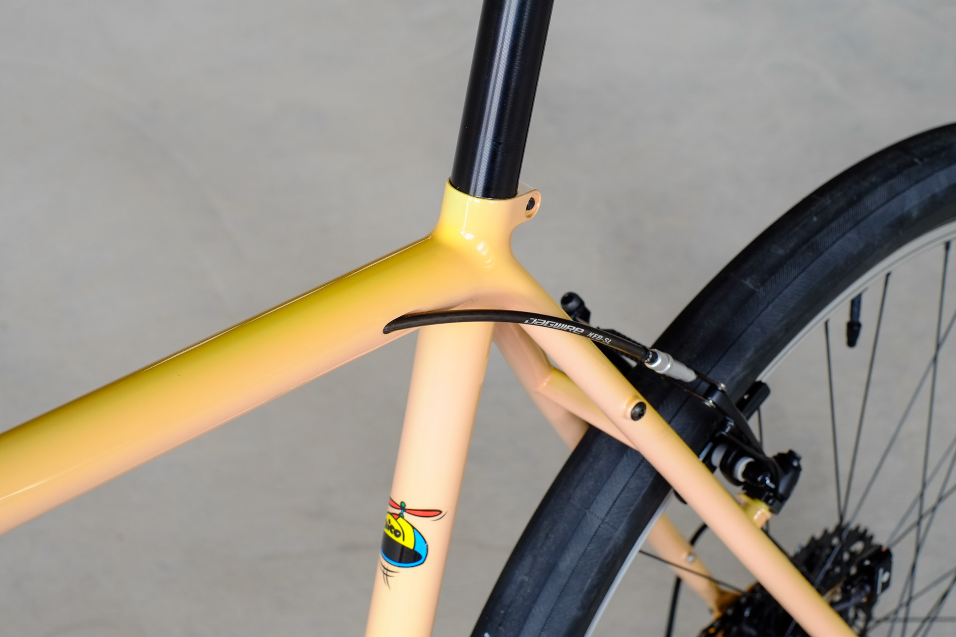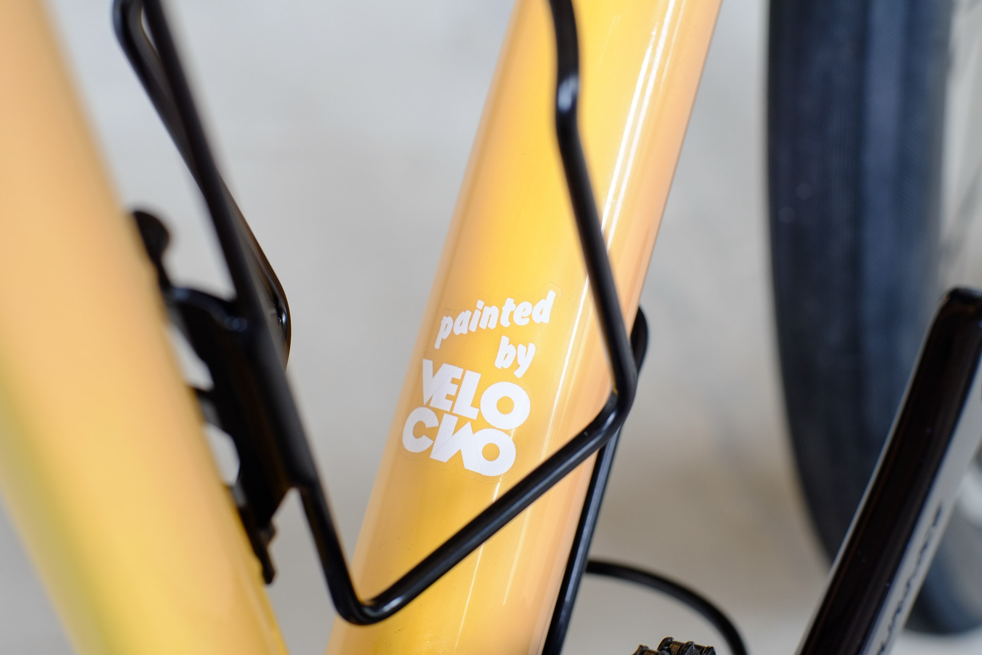Simple, clean and light weight Gevenalle 1x11 set up including longpull V-brakes for hassle free and almost zero maintainance riding fun! Crazy lavalamp paintjob by our man Robert from Velociao .