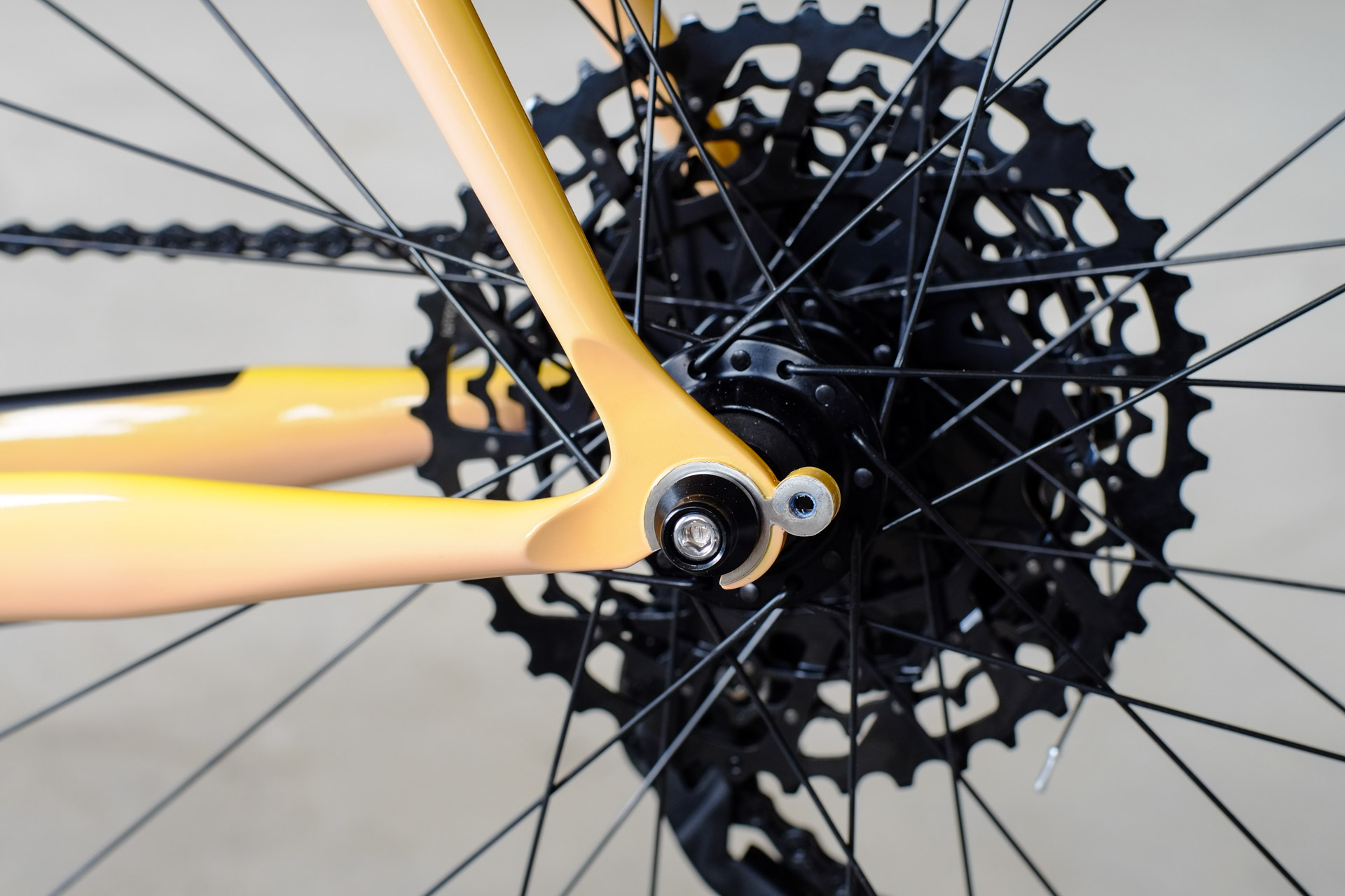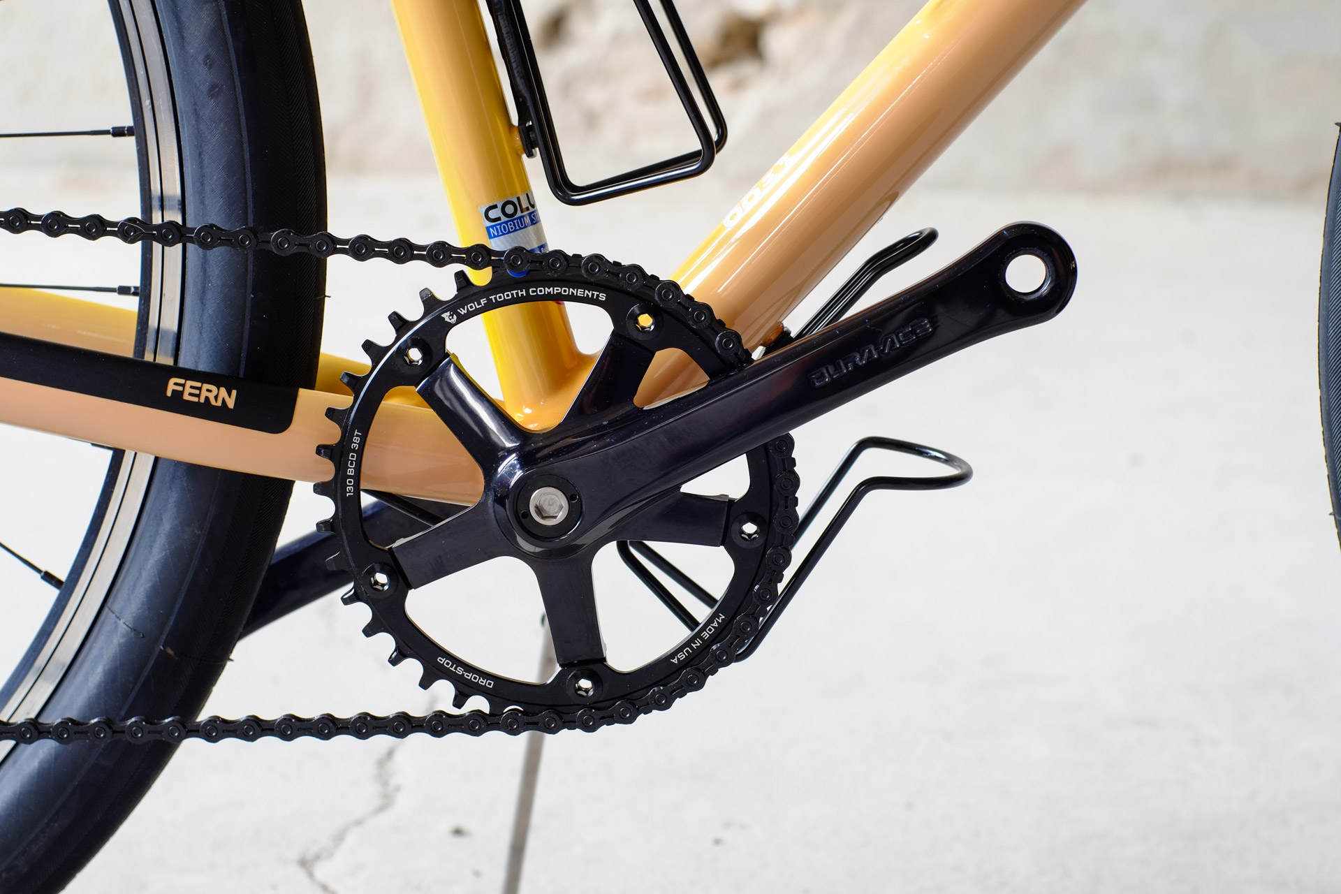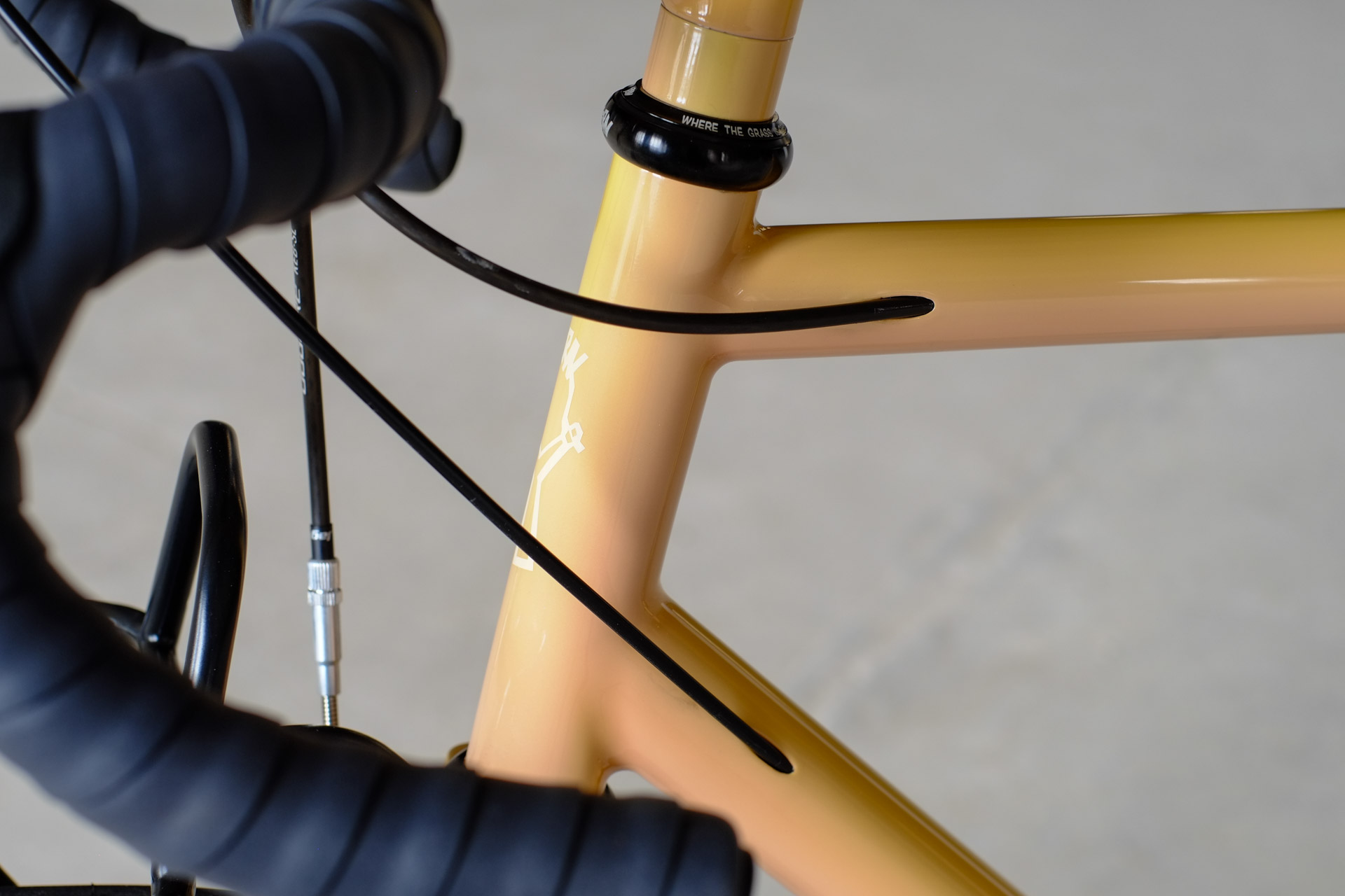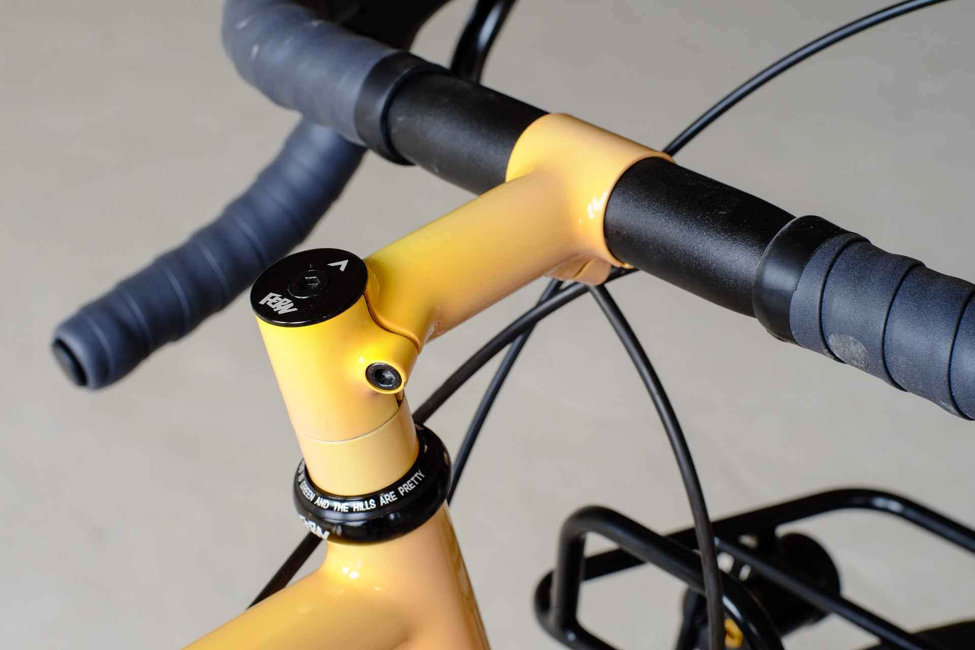 Simple, clean and light weight Gevenalle 1x11 set up including longpull V-brakes for hassle free and almost zero maintainance riding fun! Crazy lavalamp paintjob by our man Robert from Velociao .