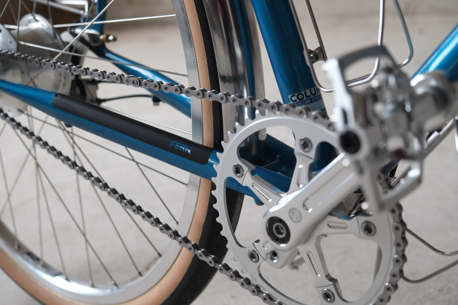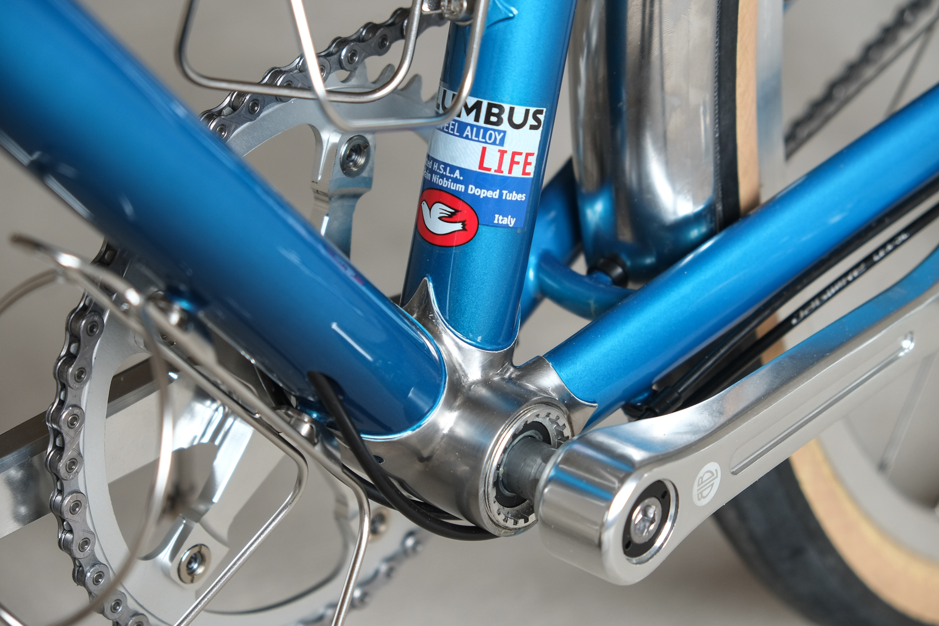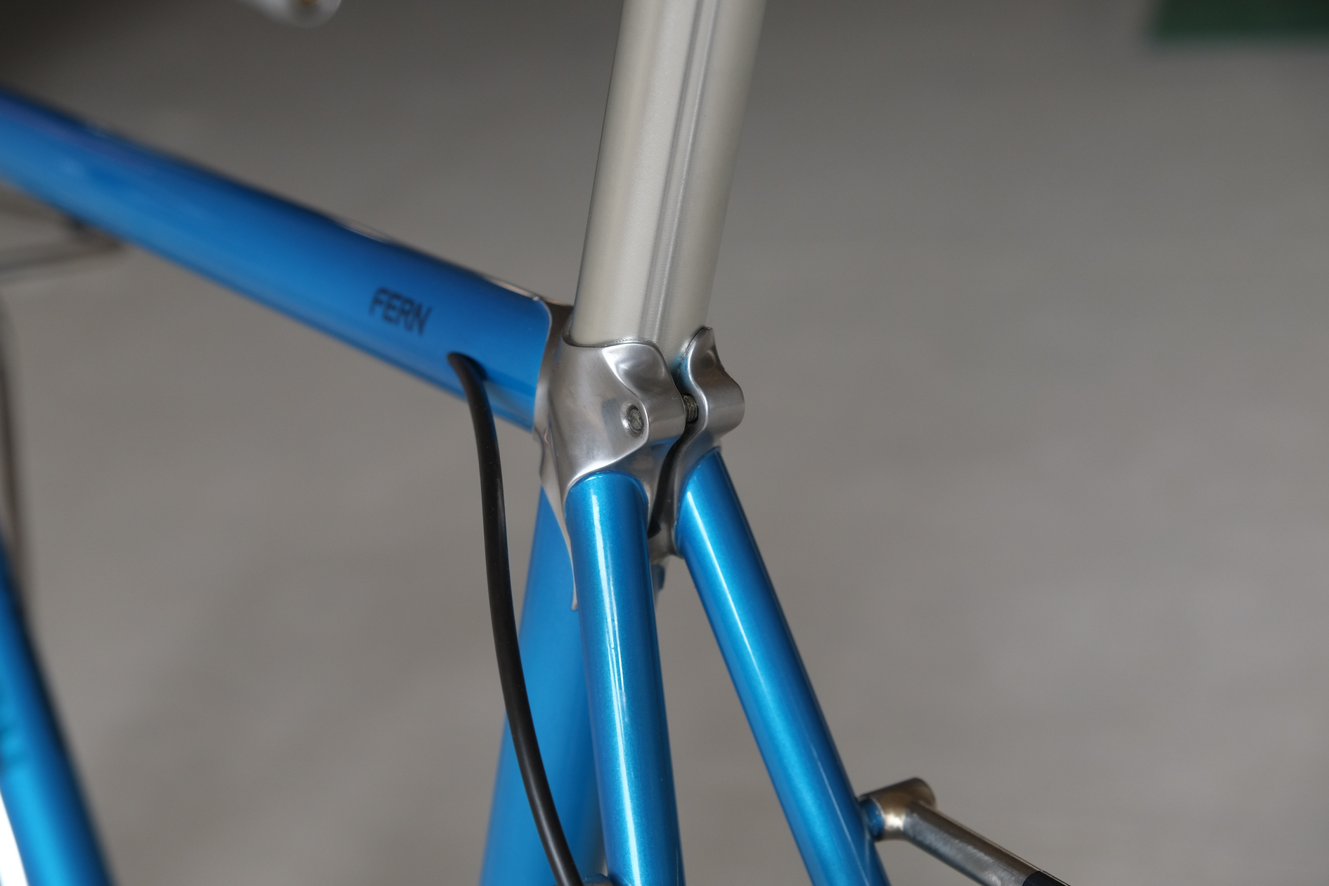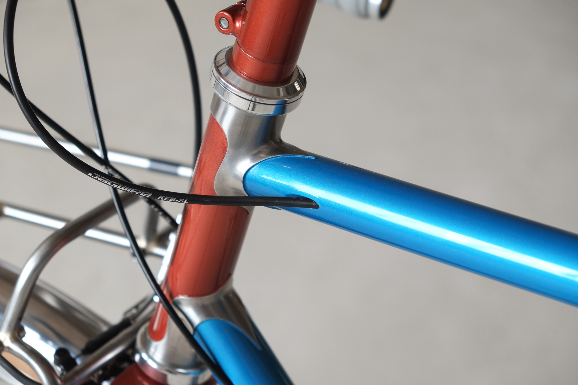 The Chacha touring bike in a classic and refined look. Beautiful handcarved stainless lugs matching the special stainless custom racks. Despite it’s classic appeal this bike is a modern and fully capable world traveller, providing a stable ride with it’s oversized high end tubing even when heavy loaded. We combined the famous Rohloff internally geared hub with special customized Gevenalle shifters to give you the best shifting performance ever to be found on a dropbar Rohloff bike.