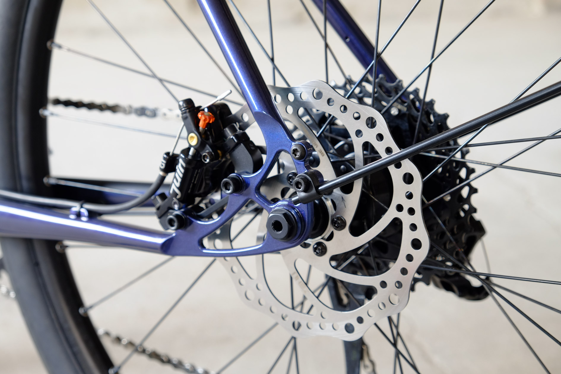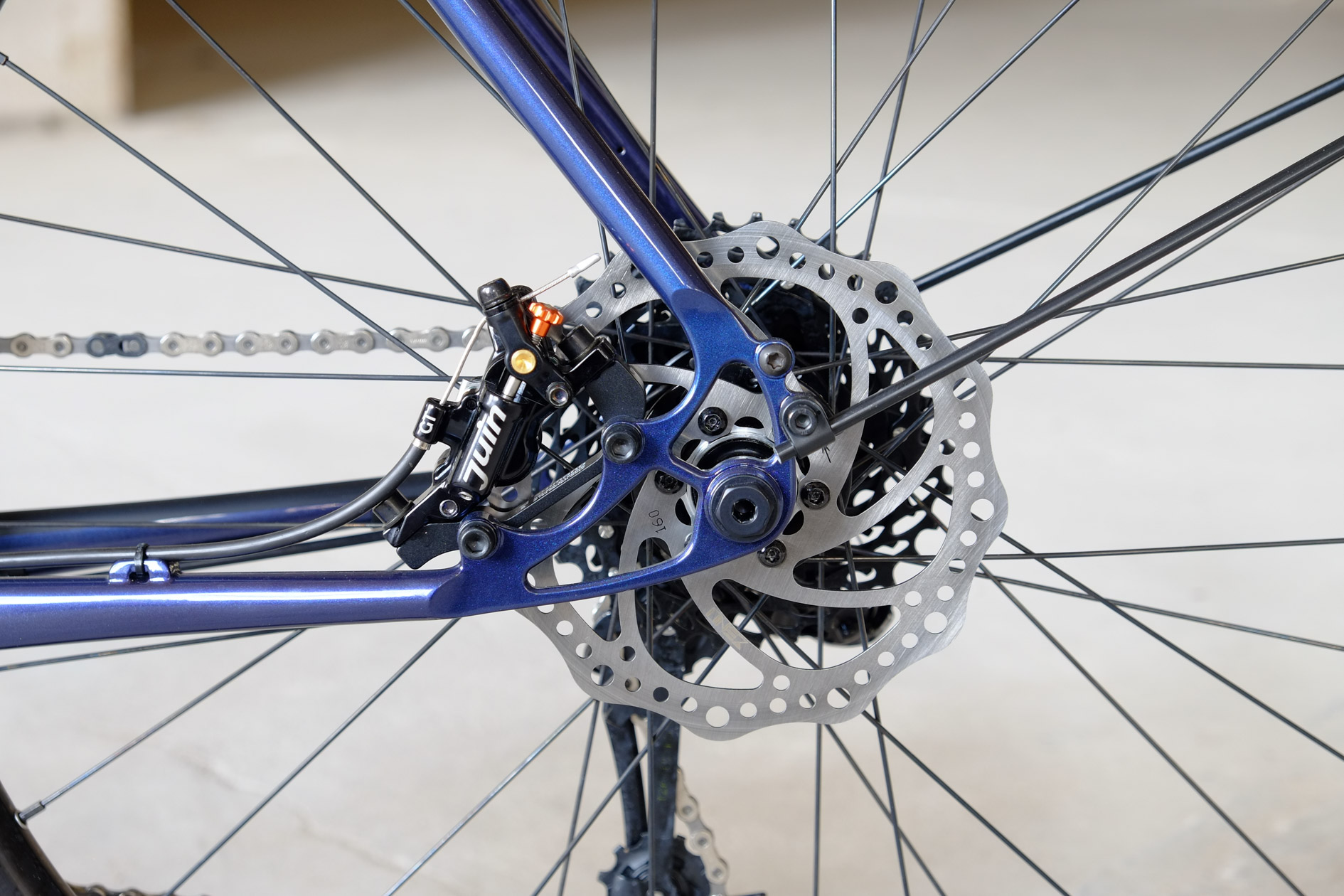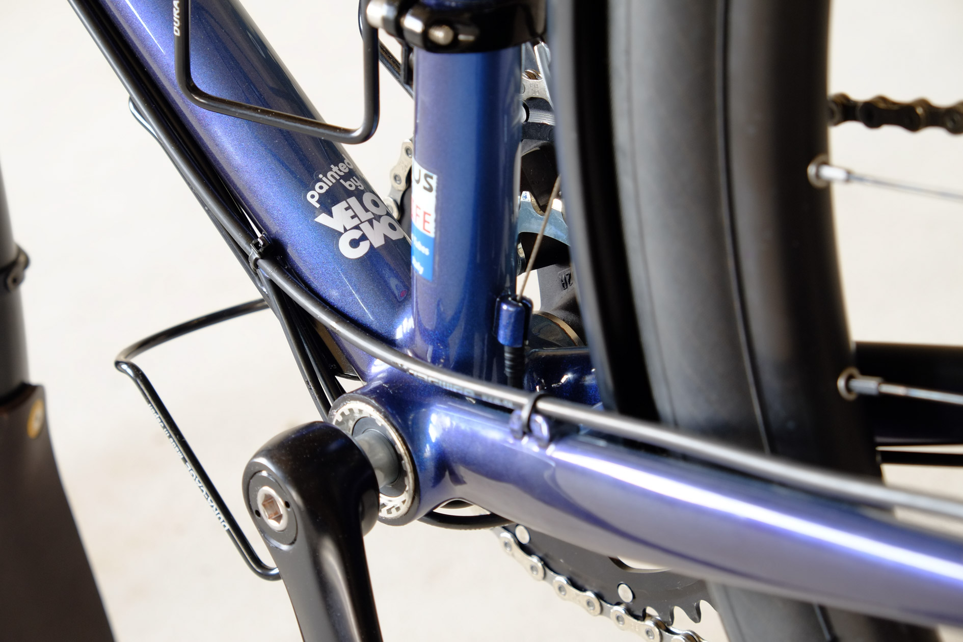 For Sabrina we created this very special 26 Chacha with disc brakes. Sabrina is quite small so we had to make some special tweaks in the geometry to create a perfect fitting bike for her, but without compromising in the handling or ride characteristics. Added up with this fantastic two-faced Jekyll and Mr Hyde paint job done by Velociao, Sabrina got a truely absolute unique piece of bike!