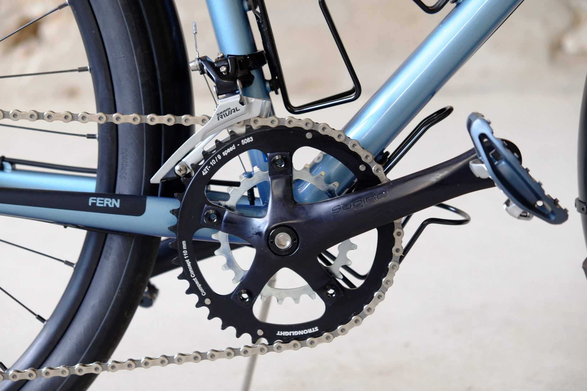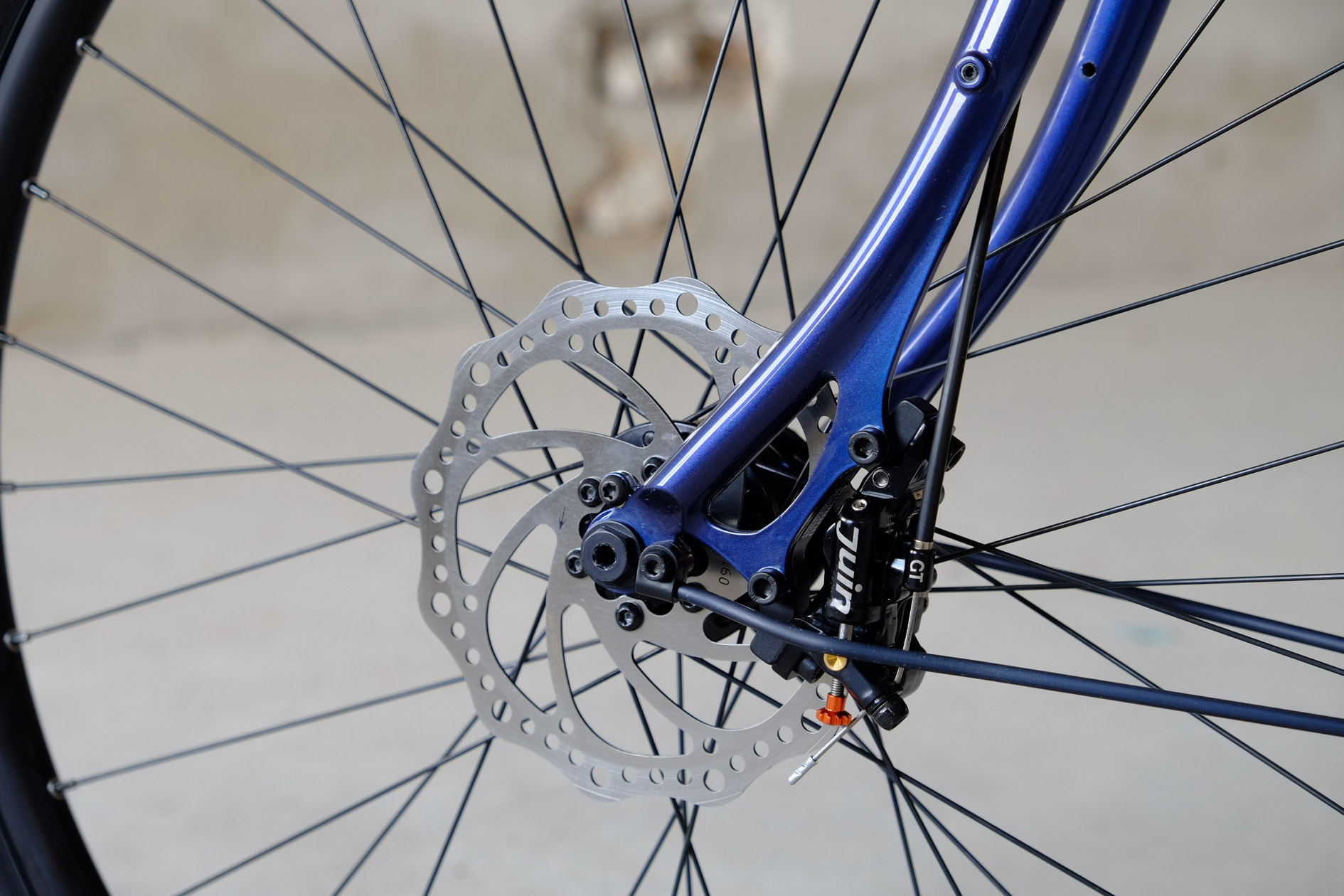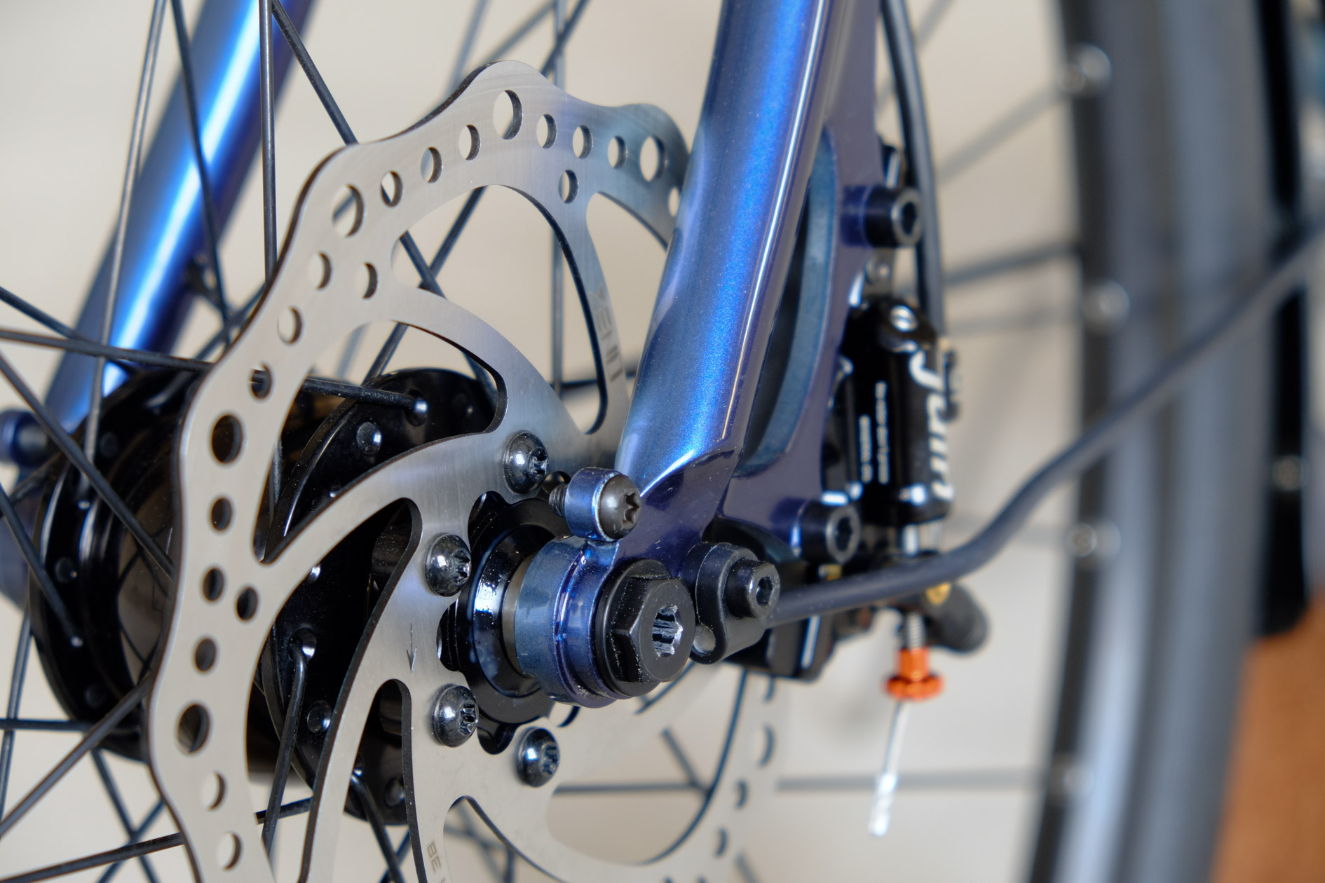 For Sabrina we created this very special 26 Chacha with disc brakes. Sabrina is quite small so we had to make some special tweaks in the geometry to create a perfect fitting bike for her, but without compromising in the handling or ride characteristics. Added up with this fantastic two-faced Jekyll and Mr Hyde paint job done by Velociao, Sabrina got a truely absolute unique piece of bike!