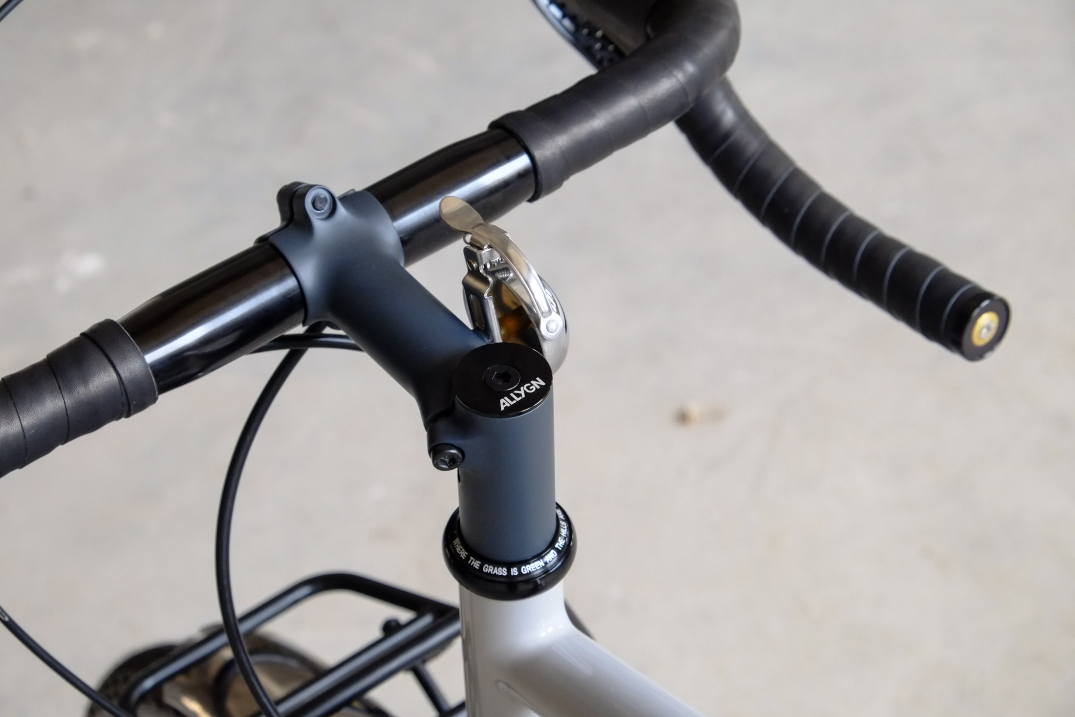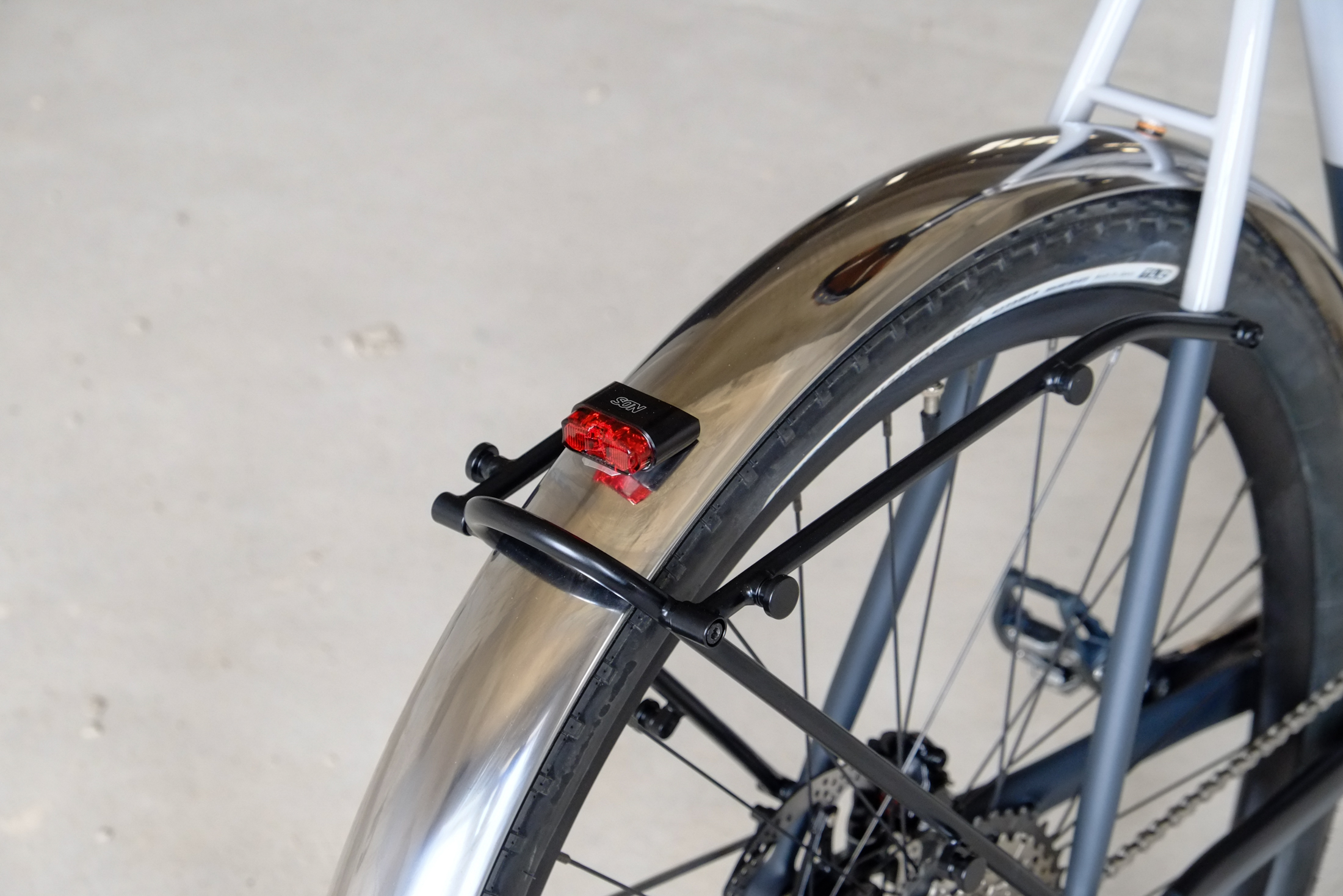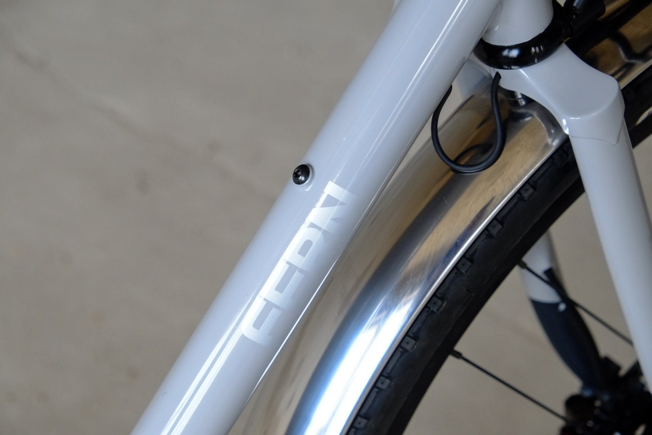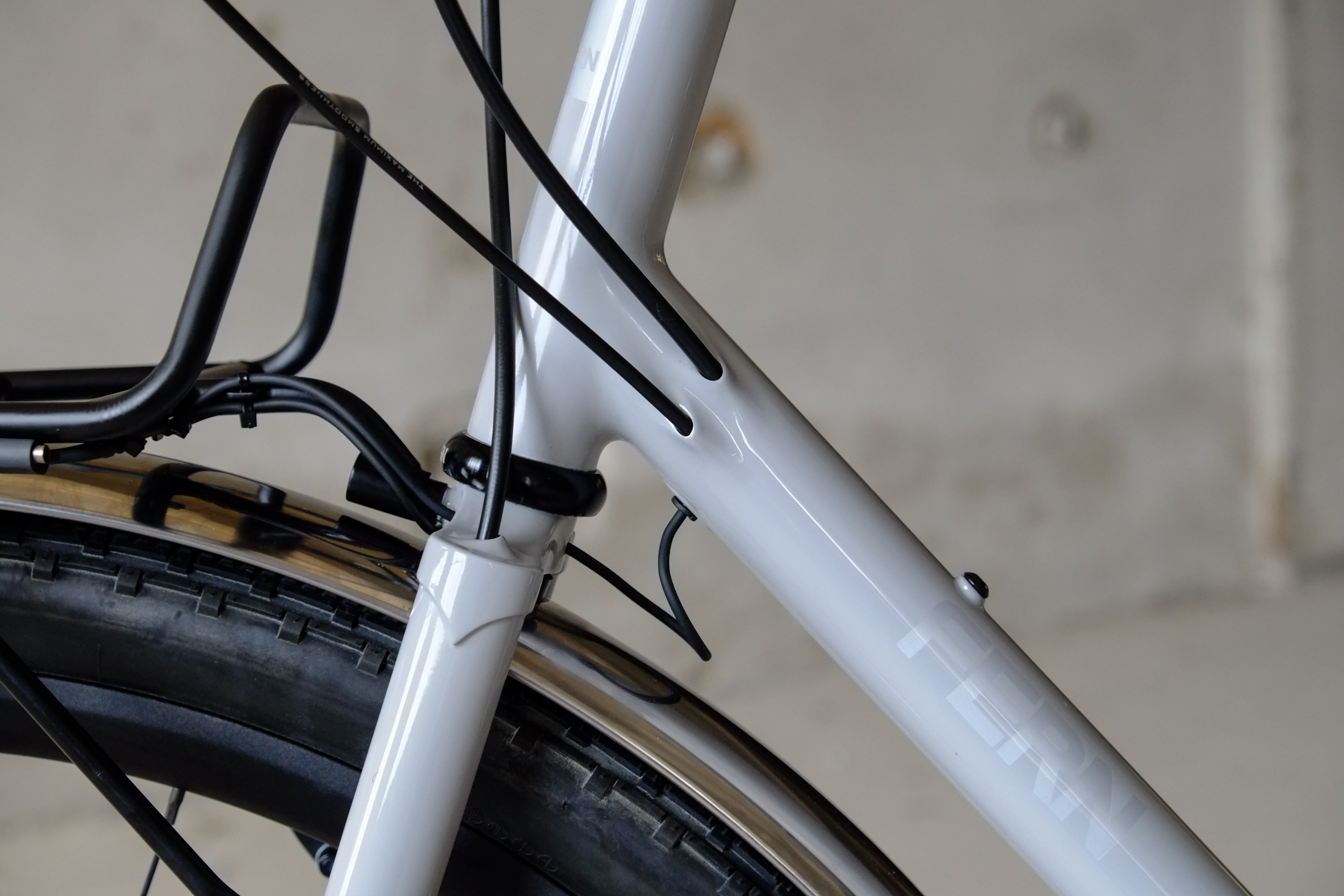 We created a very special bike for Sascha blending modern components such as direct mount flatmount TRP Hylex Disc brakes and 1x Gevenalle drivetrain with the classic silhouette of a fully equipped randonner bike. Wonderful parts made by our friends at Gilles Berthoud are clearly the icing on the cake! To make a really super versatile bike we build in enough clearance for super wide 700cx50mm tires so you can ride this monster really everywhere!