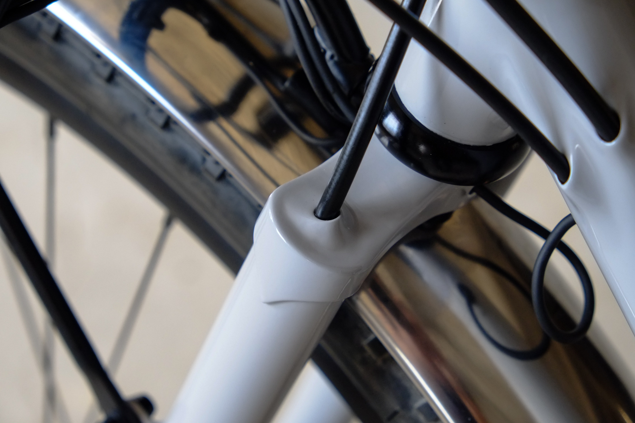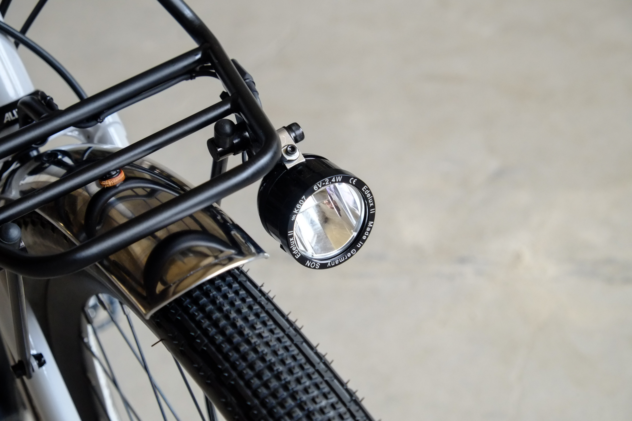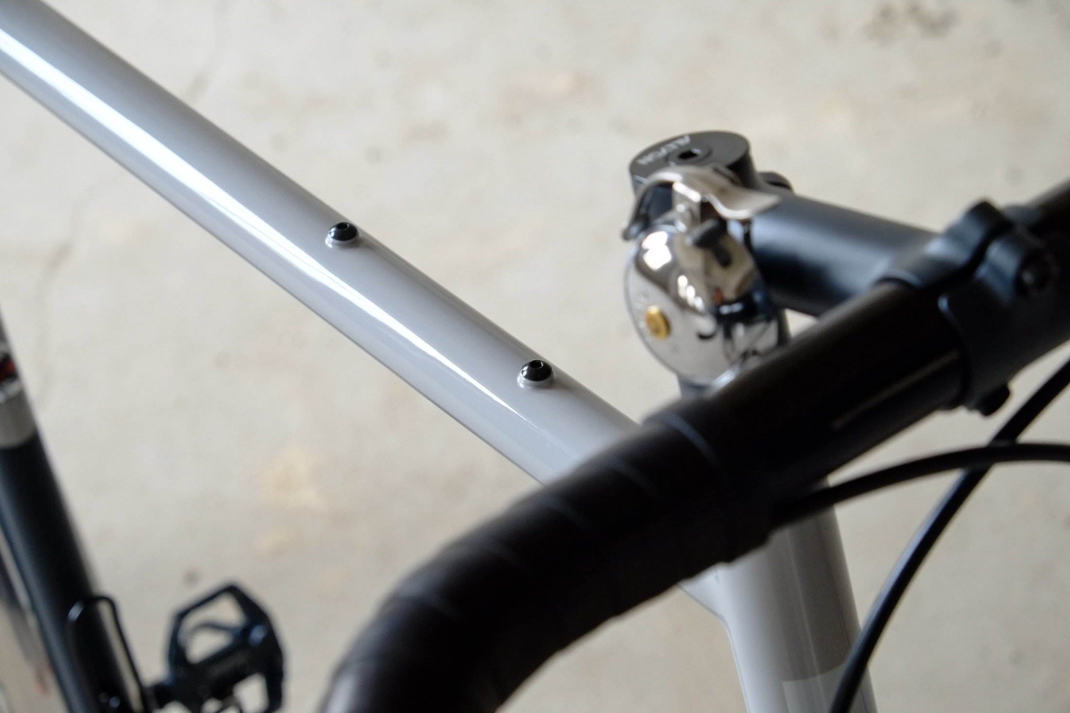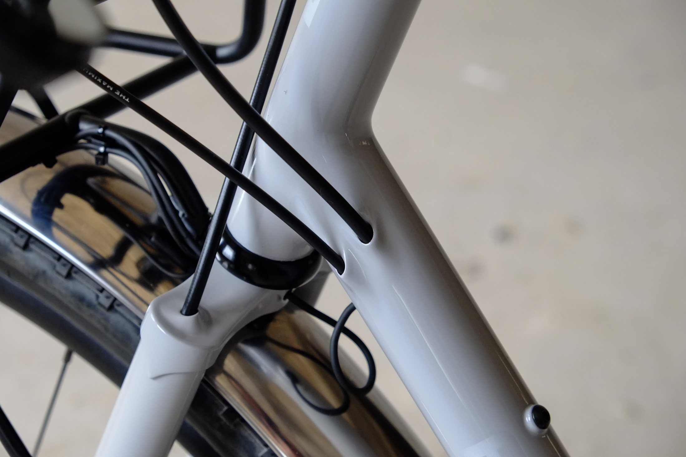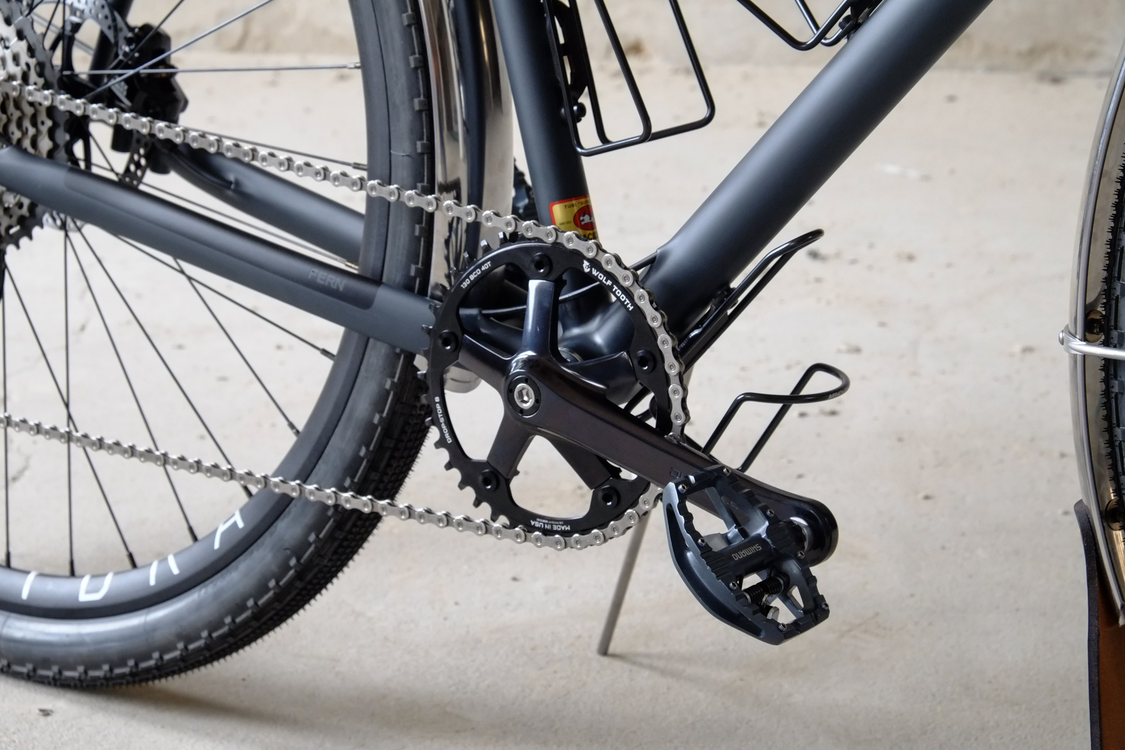 We created a very special bike for Sascha blending modern components such as direct mount flatmount TRP Hylex Disc brakes and 1x Gevenalle drivetrain with the classic silhouette of a fully equipped randonner bike. Wonderful parts made by our friends at Gilles Berthoud are clearly the icing on the cake! To make a really super versatile bike we build in enough clearance for super wide 700cx50mm tires so you can ride this monster really everywhere!