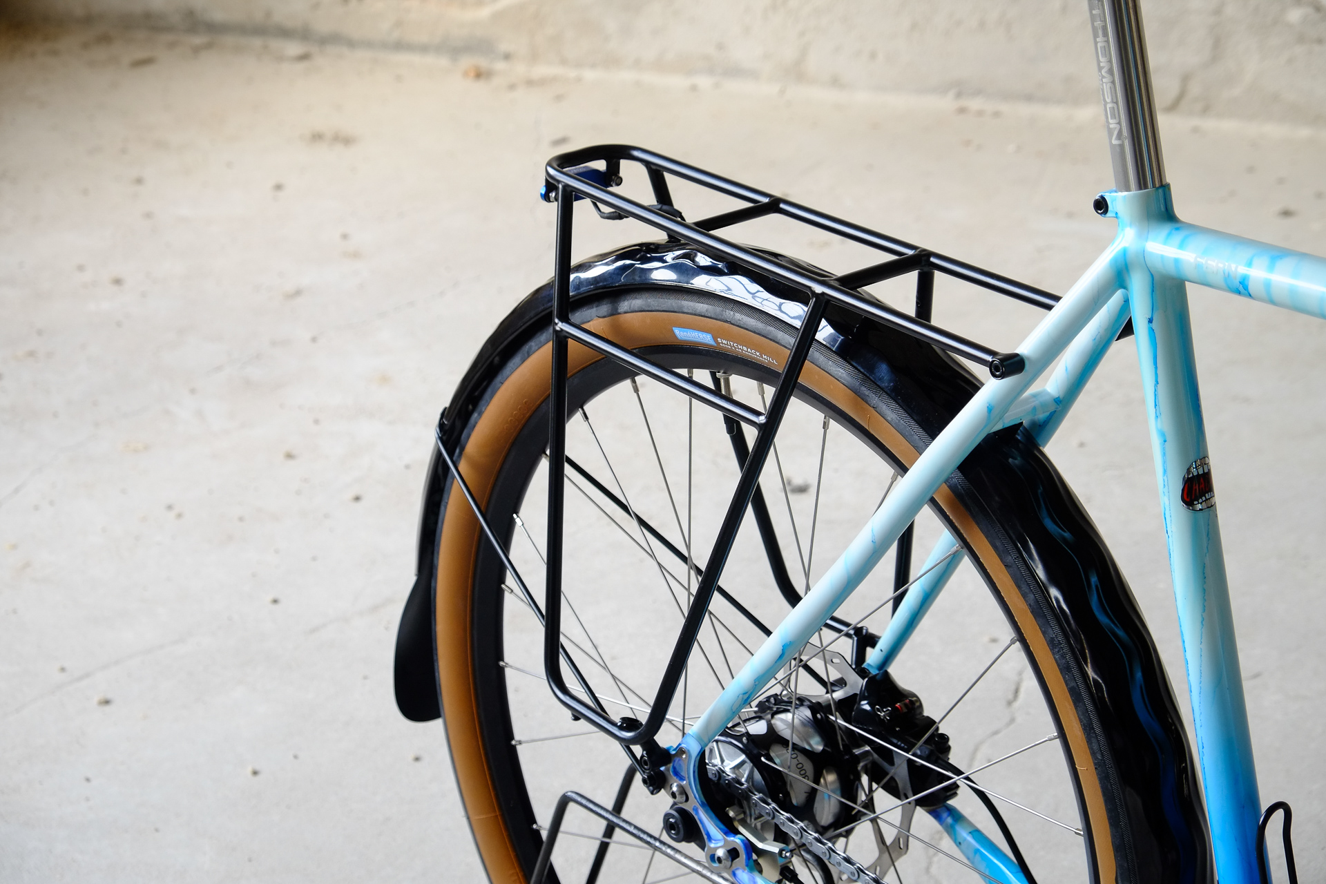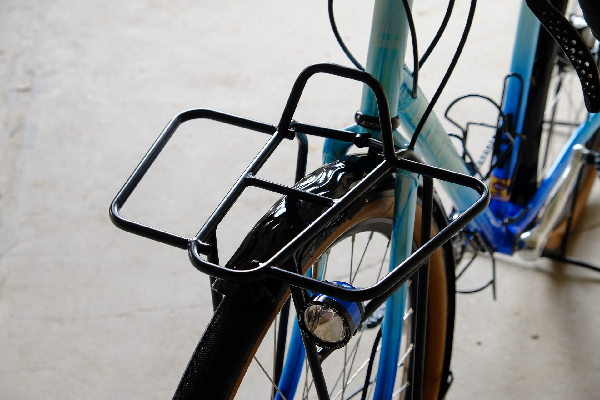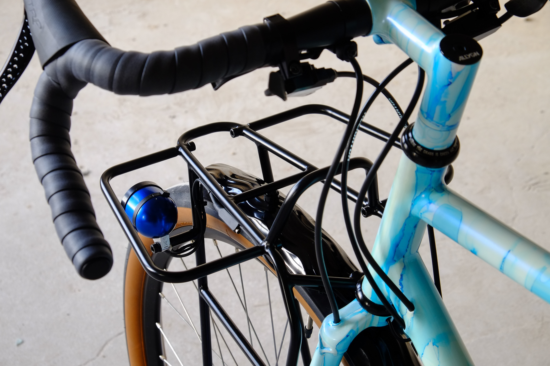 The bike is fully illuminated and electrified by SON (Schmidts Original Nabendynamo) components. Dry feet provided by Velo Orange with additional help of our friends at Ass Savers. Spinning by Middleburn, sitting on Brooks with Thomson, steering with our own brand's Allygn headset and ESI handlebartape for a sure grip.