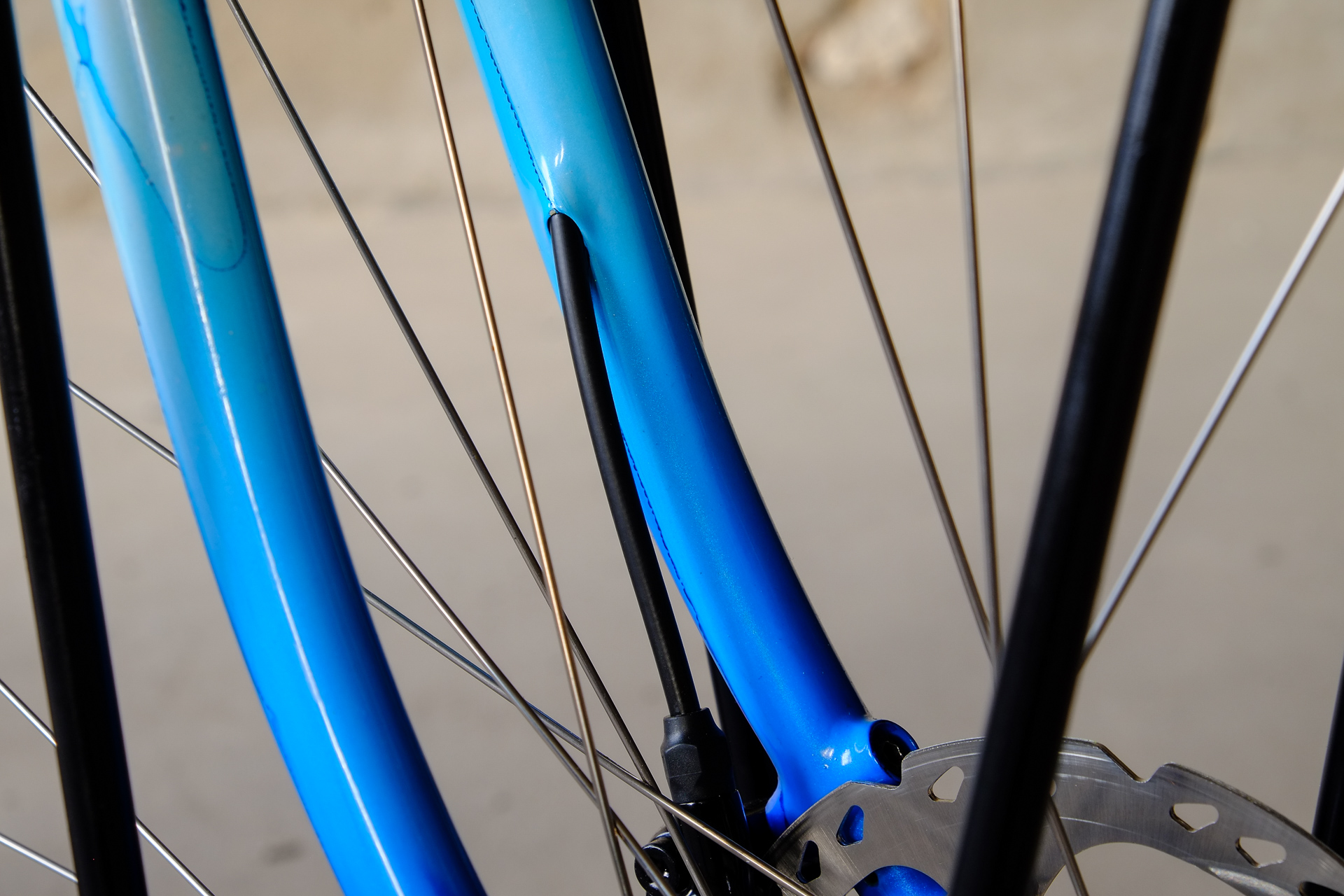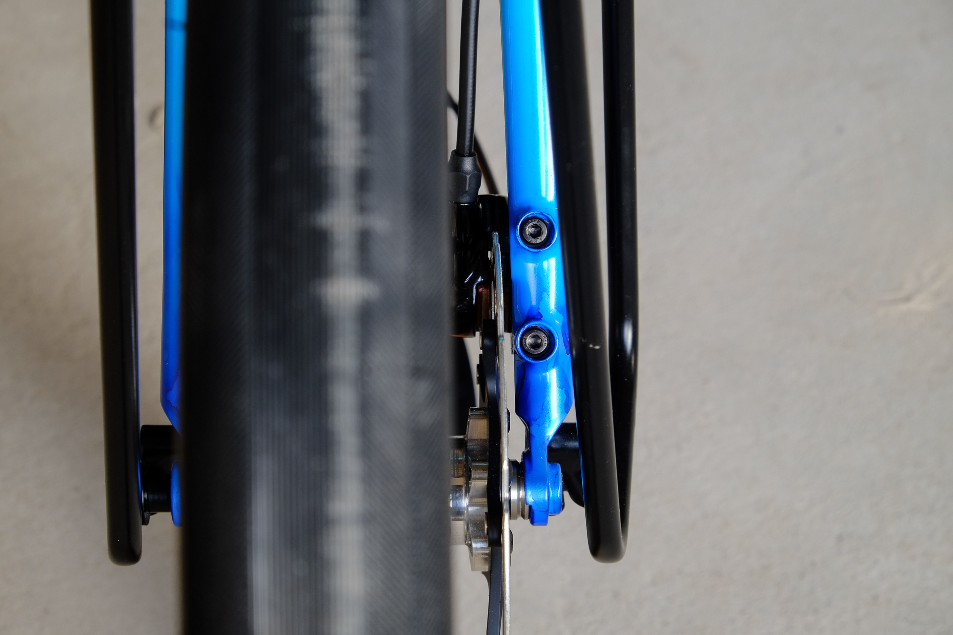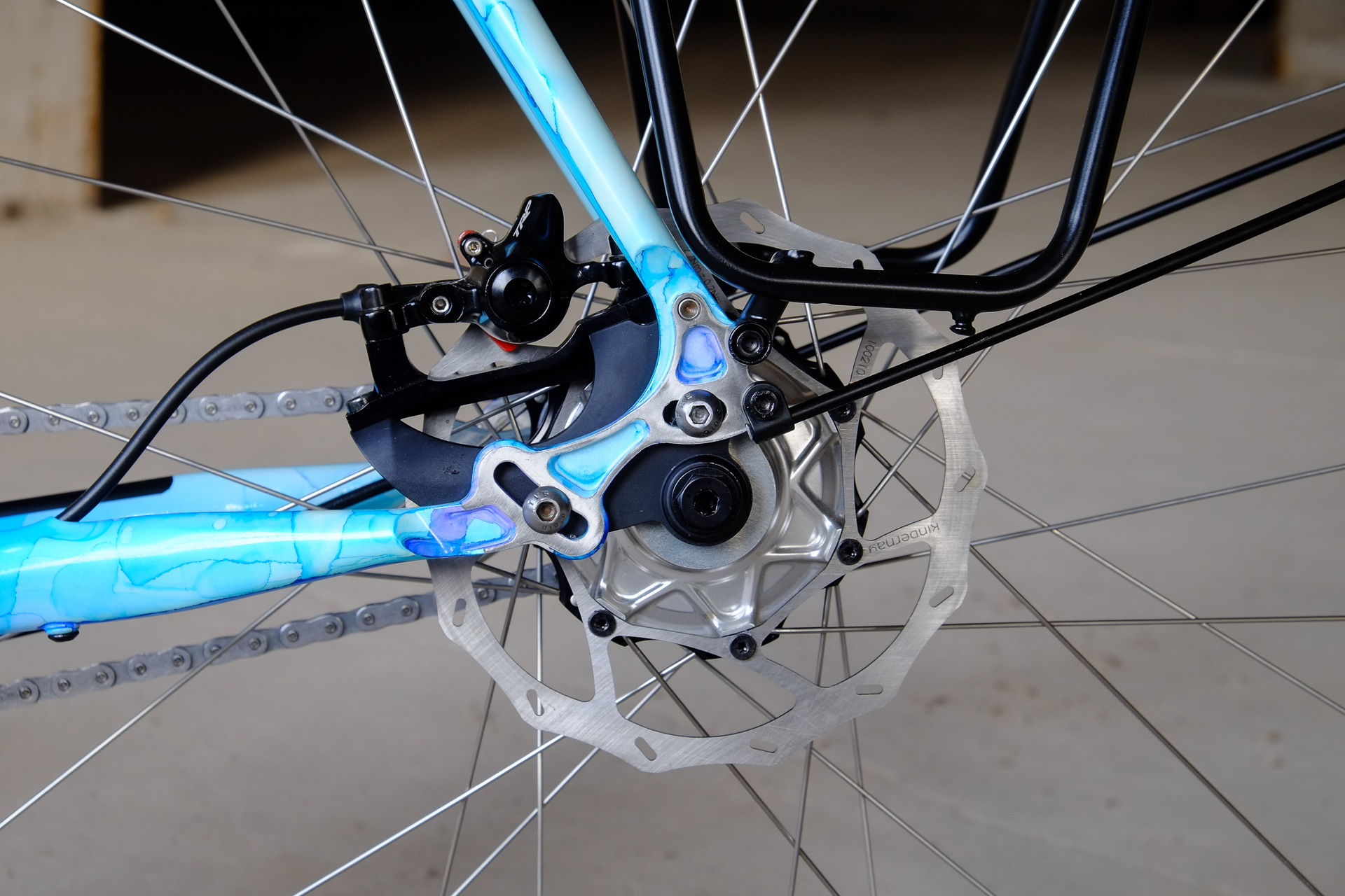 The bikes frame is made as usual only from the finest selection of Columbus tubes, including nice touches as fully internal cable routing and and very nice Paragon Rocker Dropouts. The Fork features Fern's own direct flatmount standard. Custom made Fern Deluxe Stem. All racks are custom made by Fern and only available for complete Fern Bicycles.