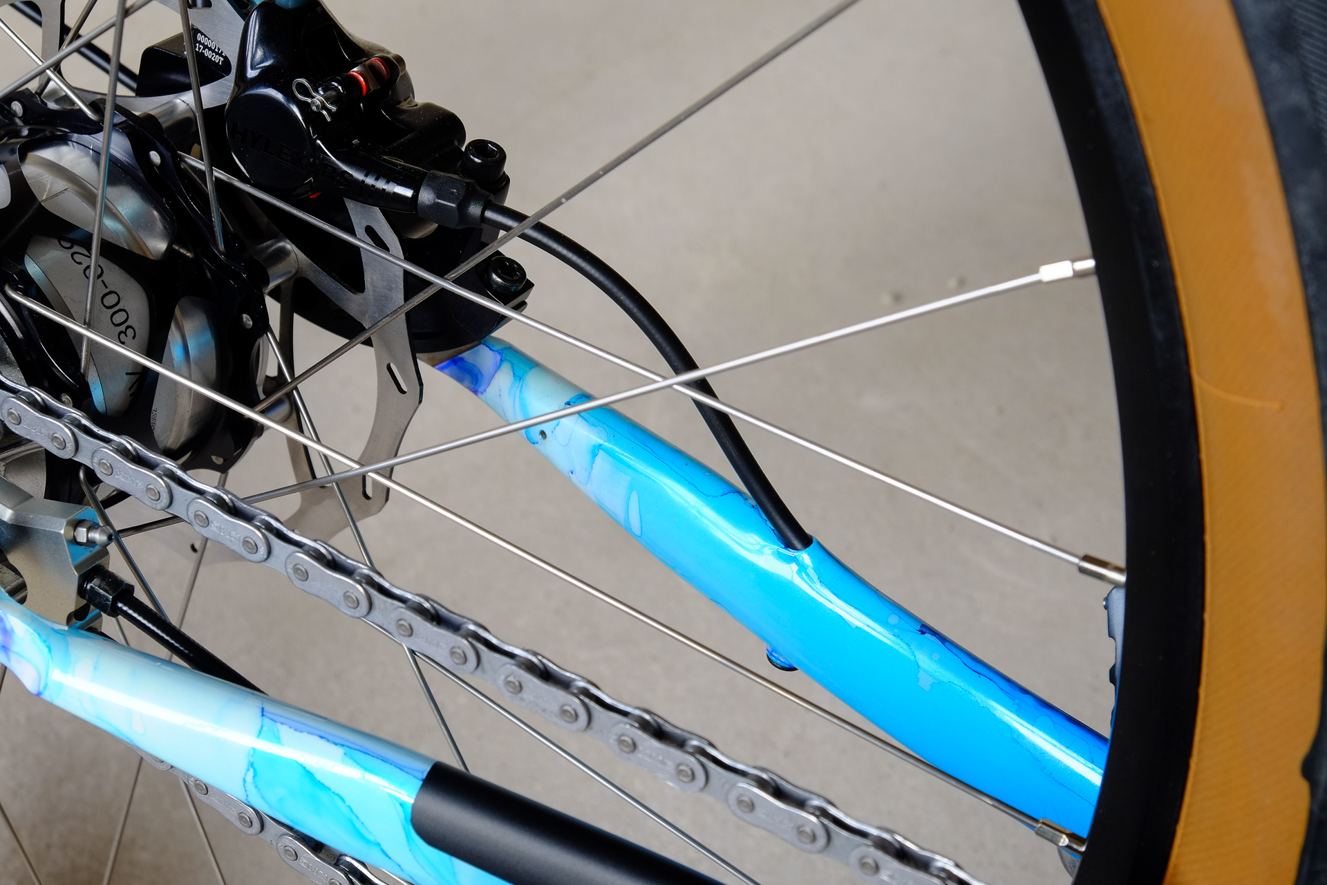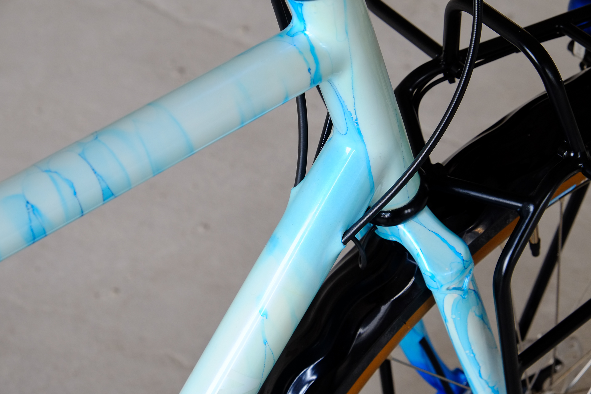 Lilli is an avid mountaineer and skier and she loves the mountains, ice and snow and the glaciers. Together with Robert at Velociao we created this amazing glacial colour sheme which perfectly matches Lillis lifestyle. Hope you'll have a lot of adventures not only in the winter season on your new ice cool Fern Bike Lilli! ;)