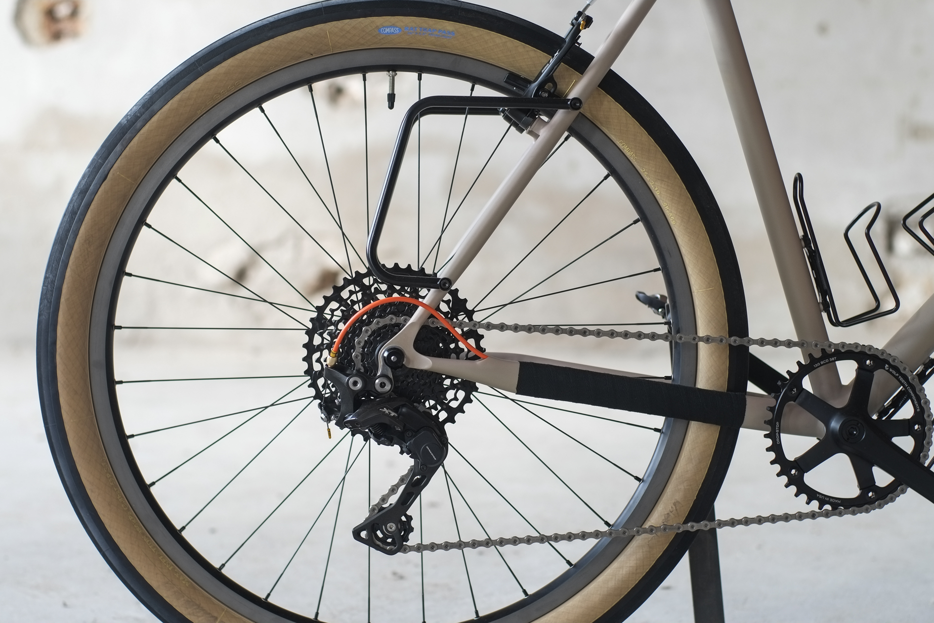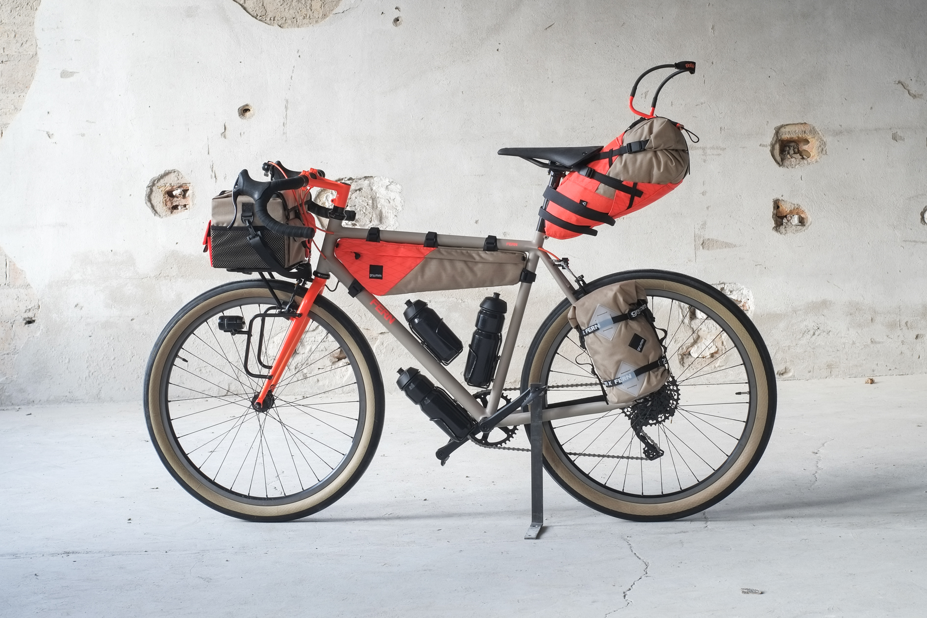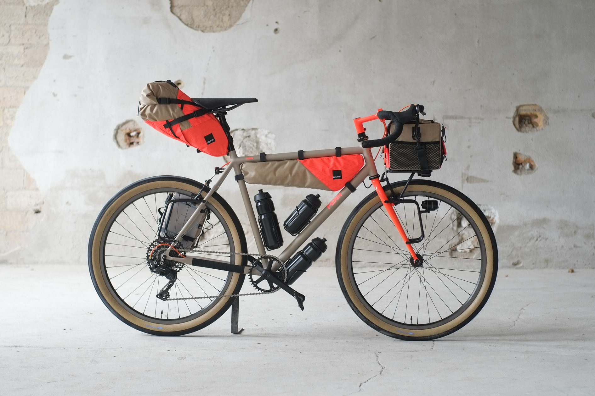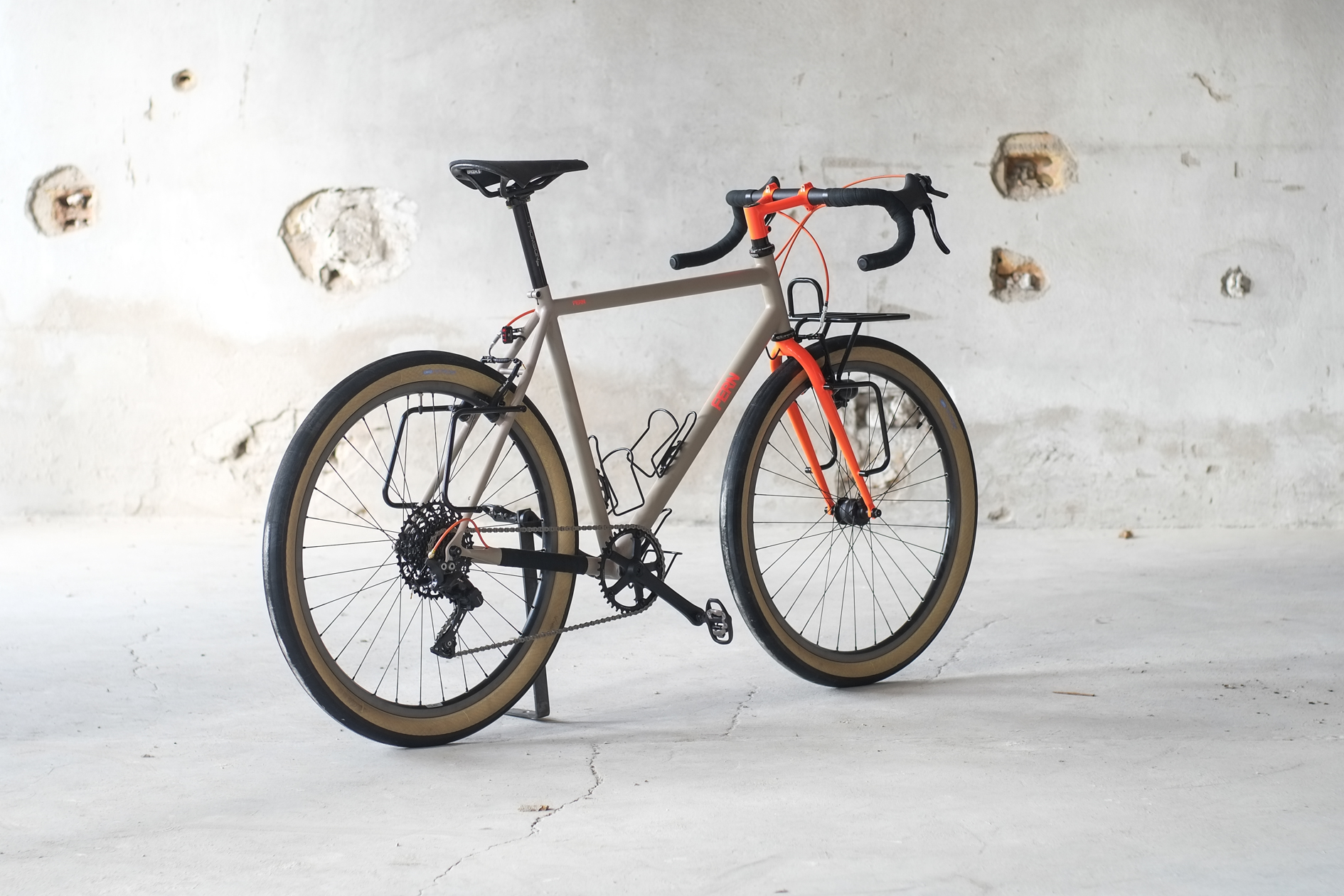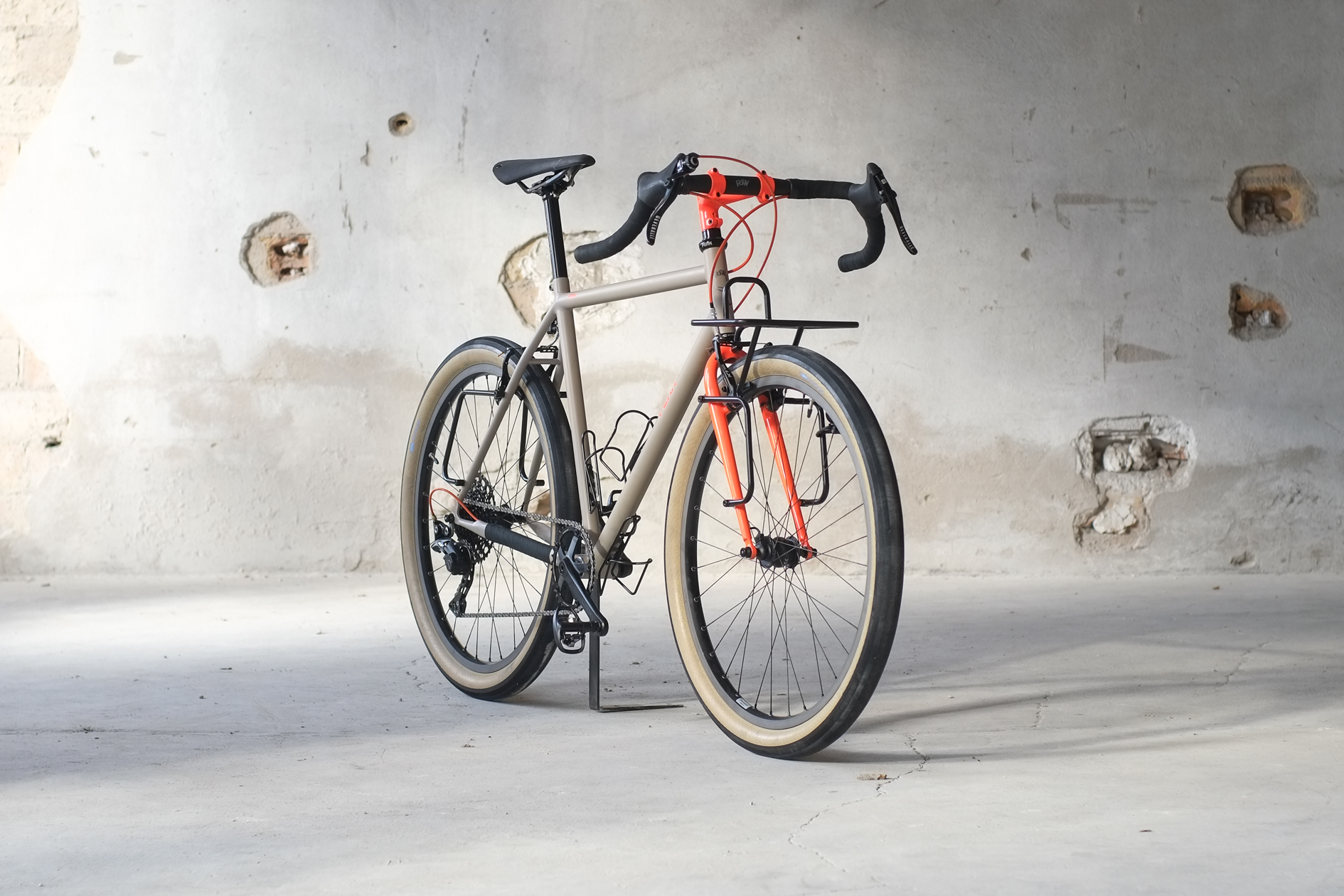 Chuck, eine Kollaboration von Gramm Tourpacking und Fern. Ein Rad gebaut für harte Wüstendurchquerungen oder die nächste Wochenendrunde durch die märkische Sandbüchse. Dank ultraleichter 26Zoll / 54mm Bereifung bügelt Chuck über jede Offroadpiste und ist trotzdem superschnell auf der Strasse. Ein Hybrid aus Randonneur und MTB. Volle Reiseradtauglichkeit mit jeder Menge Gepäckträgern für viele schöne Gramm-Fahrradtaschen und das alles bei einem traumhaften Gesamtgewicht von 10,5 Kilo inklusive Licht, Dynamo, Trägern. Lowtrail / Race Geometrie, Columbus Rohrsatz.