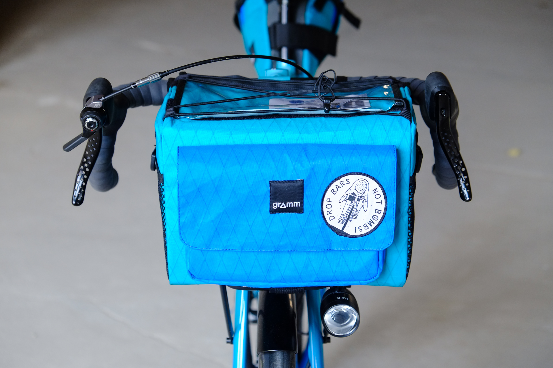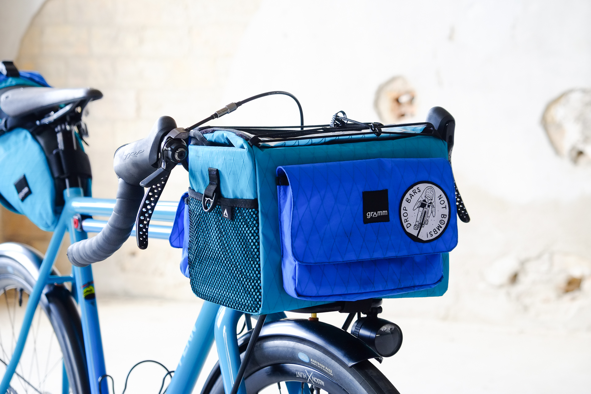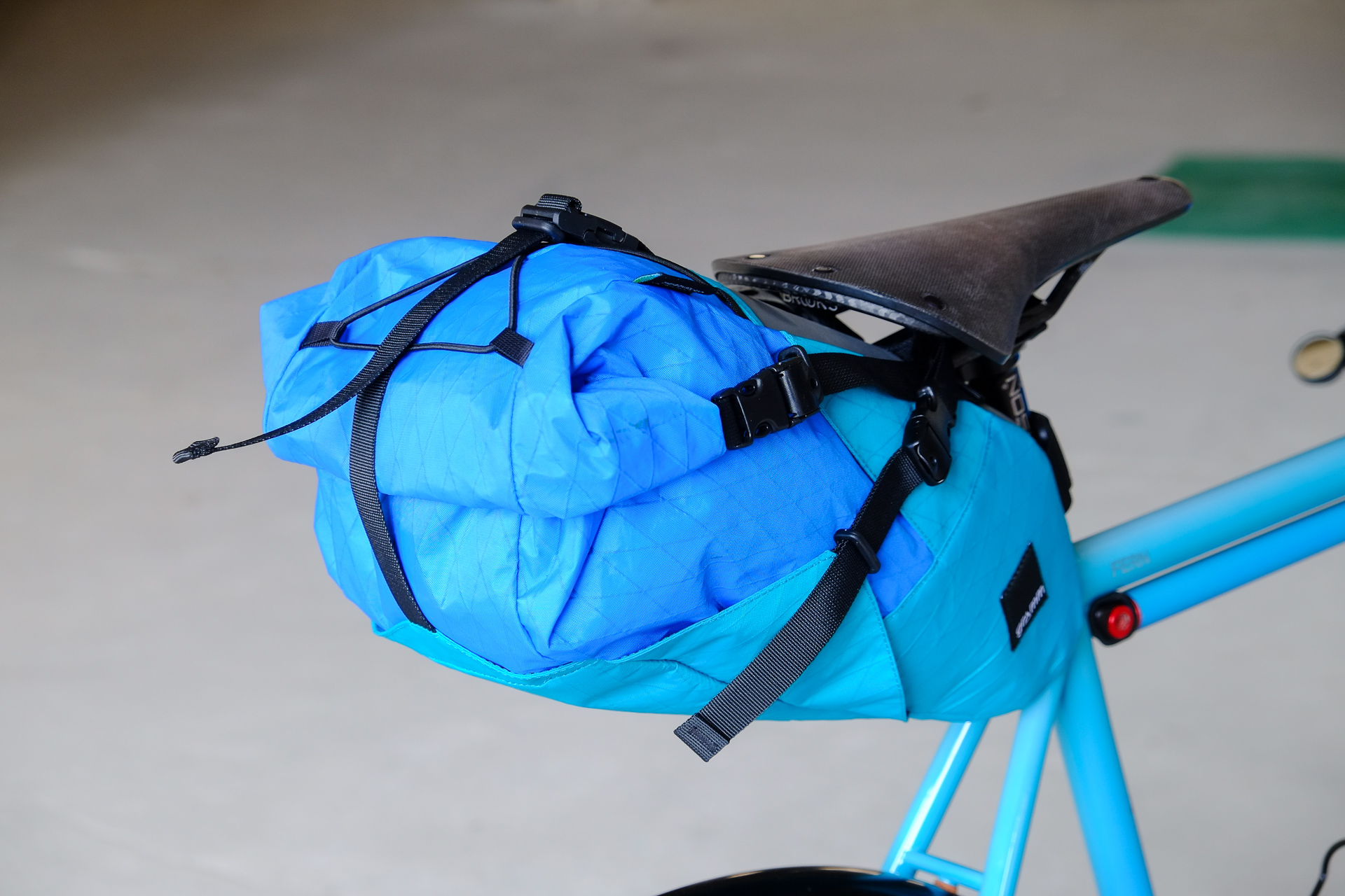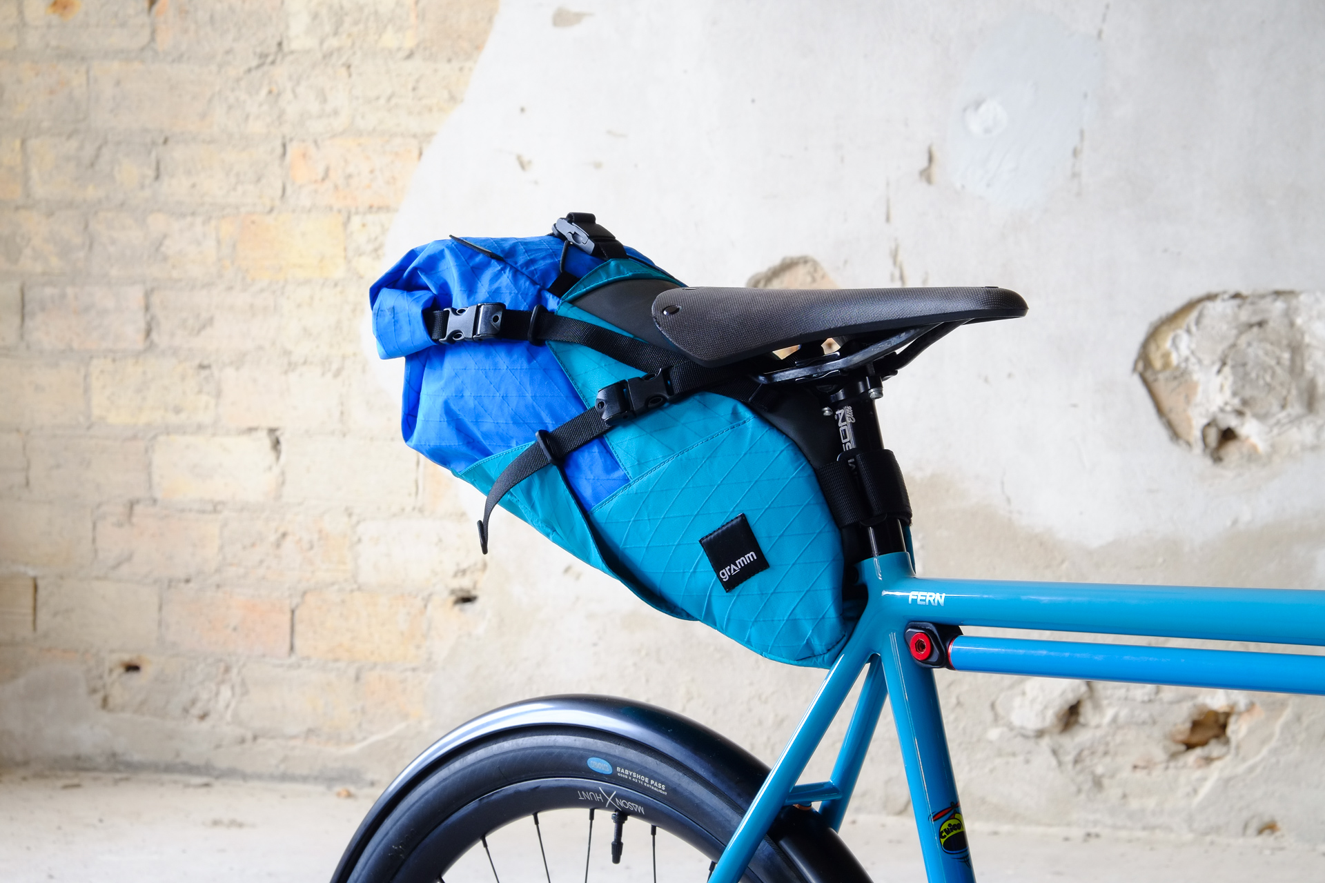 This is Daniel's finalized 650B Disc Chico, which he already successfully raced in a prototype state in the 2019 PBP edition. The bike is equipped with a prototype Allyn Components M.U.D. fork and a Allygn Diamond Front Rack. The fillet brazed frame is made only from the finest Columbus tubing and featuring our new 160mm flat direct mount standard on a Syntace X-12 through axle system. Fully internal cable routing. Hydraulic brake and shift action by Gevenalle, 1x12 Sram Eagle drivetrain spun fast with our trademark super low q-factor vintage Dura Ace crankset . Rolling ultra smooth on Hunt Wheels equipped with Rene Herse Baby Shoe Pass tires, mud protection by Velororange. Power supplied by SON deluxe hub dynamo and safety rear view mirror by our friends at Gilles Berthoud. Awesome Gramm Tourpacking bags, percfectly colour matching Velociao's vibrant paintjob.