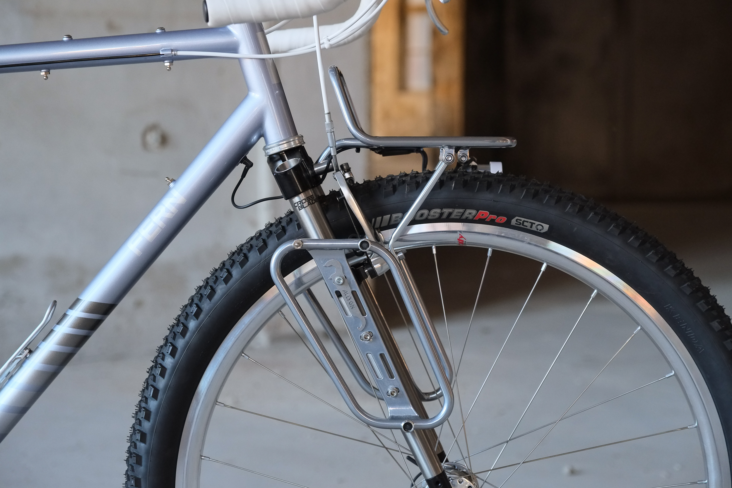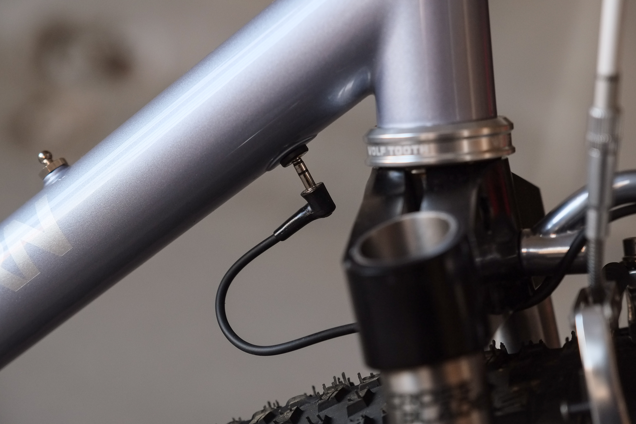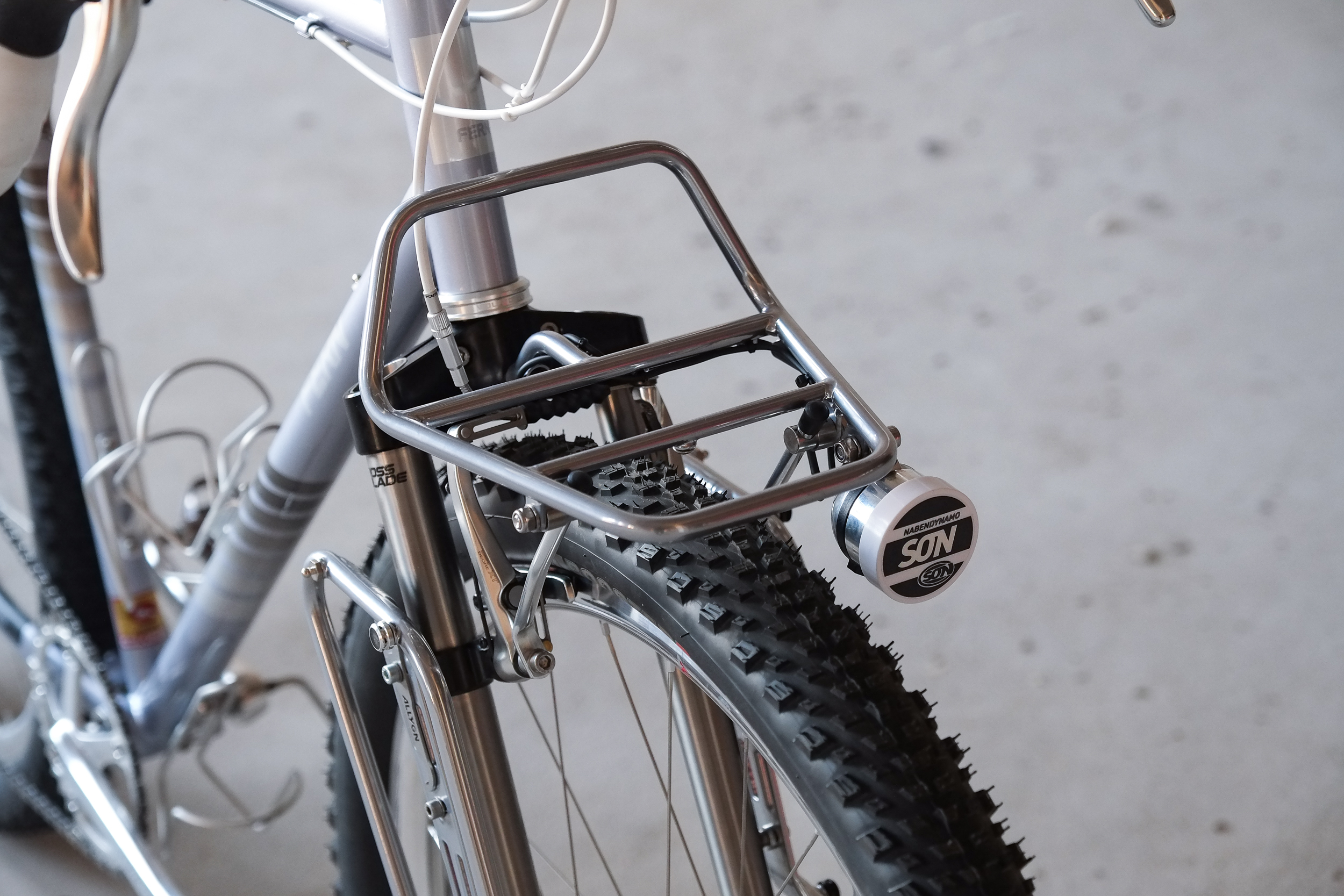 We stayed in touch and ping-ponged ideas back and forth over the big pond and more and more it crystalized how that custom Josh-Fern-Bike could actually look like.When finally Christian of Cyber Cycles offered that he could make an oldschool cantilver rim brake version of his infamous Tange Switchblade inspired Cyber Forks, it was clear that we gonna make a bike which blends an homage to the vintage MTB era back of the 80ties and 90ties with a today's modern Dropbar Gravel Touring bike. Since I really like to make theme bikes, I asked Josh after his personal favorites and other objects and designs he likes and it turns out that one of his most loved objects he owns is his 1988 Toyota Hilux Truck. I was immediately hooked by that topic and off we went to create a matching monster machine to his monster pickup truck! We wanted to use as many shiny silver components as possible and Josh did an amazing job sourcing those parts from all over the world. We had great support from friends companies such as Velocity, Ergon, Bitchn Bikes, Garbaruk, Wolftooth, SON, Tune, Gevenalle, Thomson, Busch und Müller, who all contributed their parts to this amazing machine. Thanks so much to all of you for your support on this project!