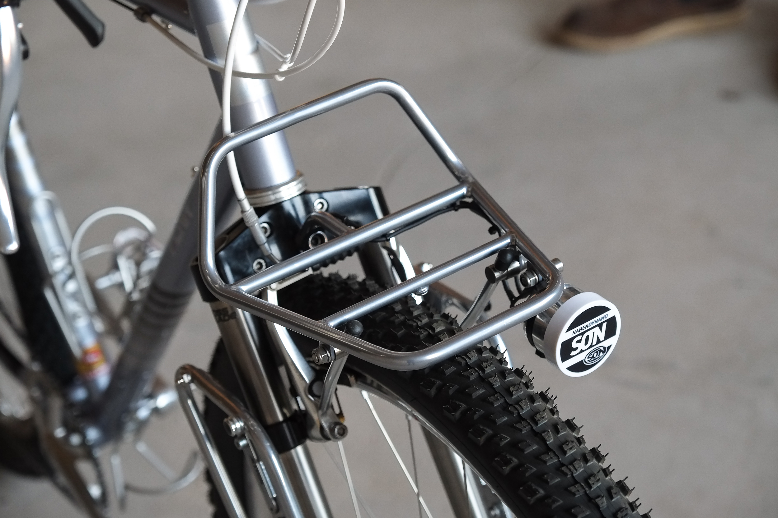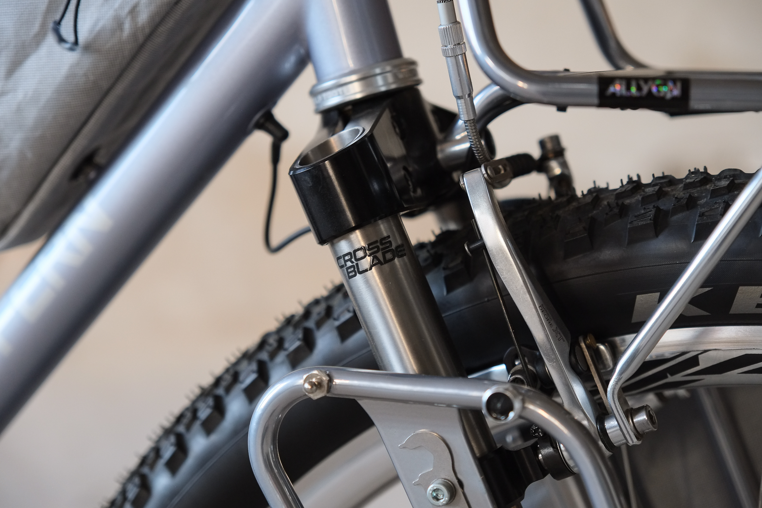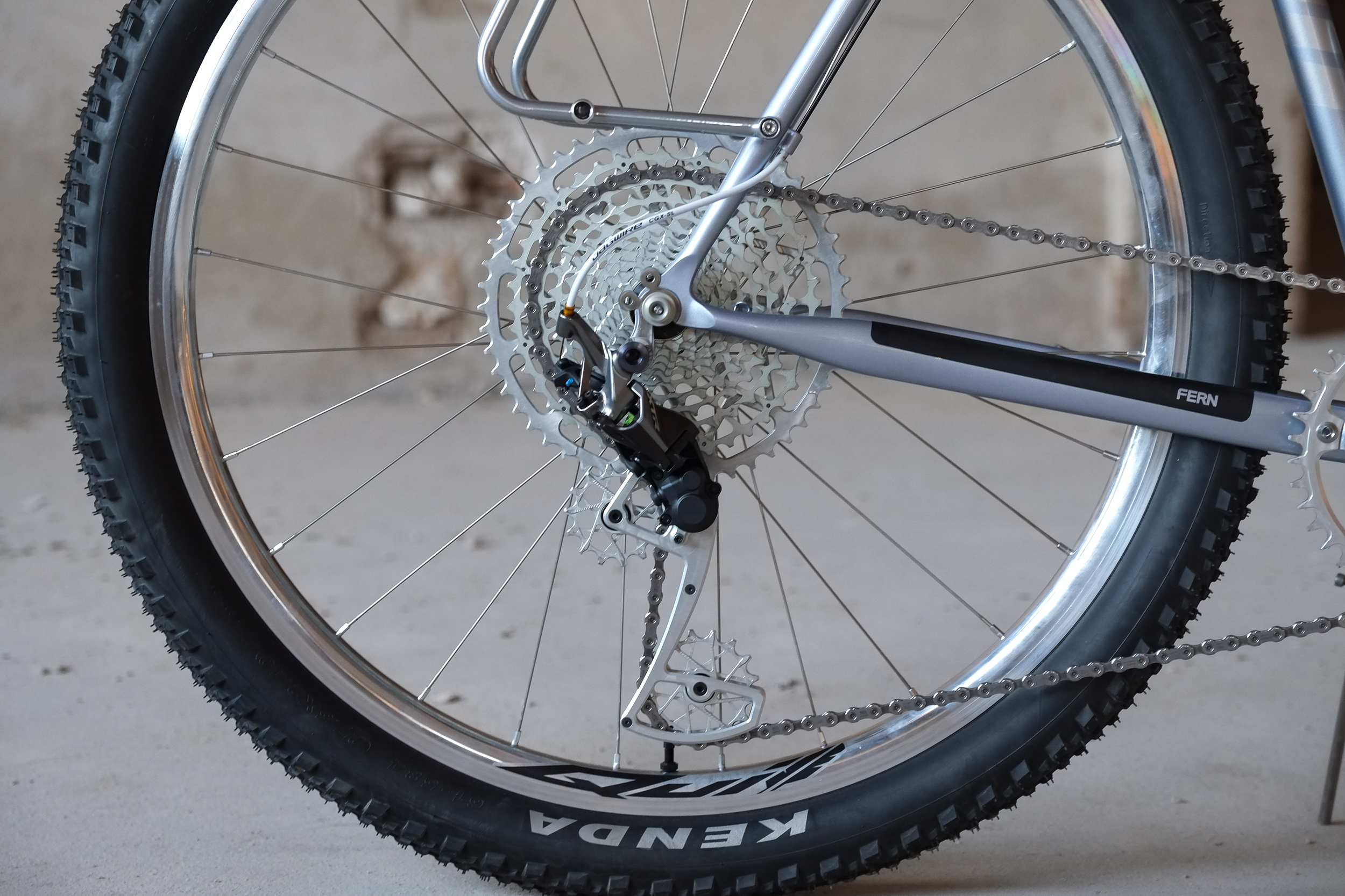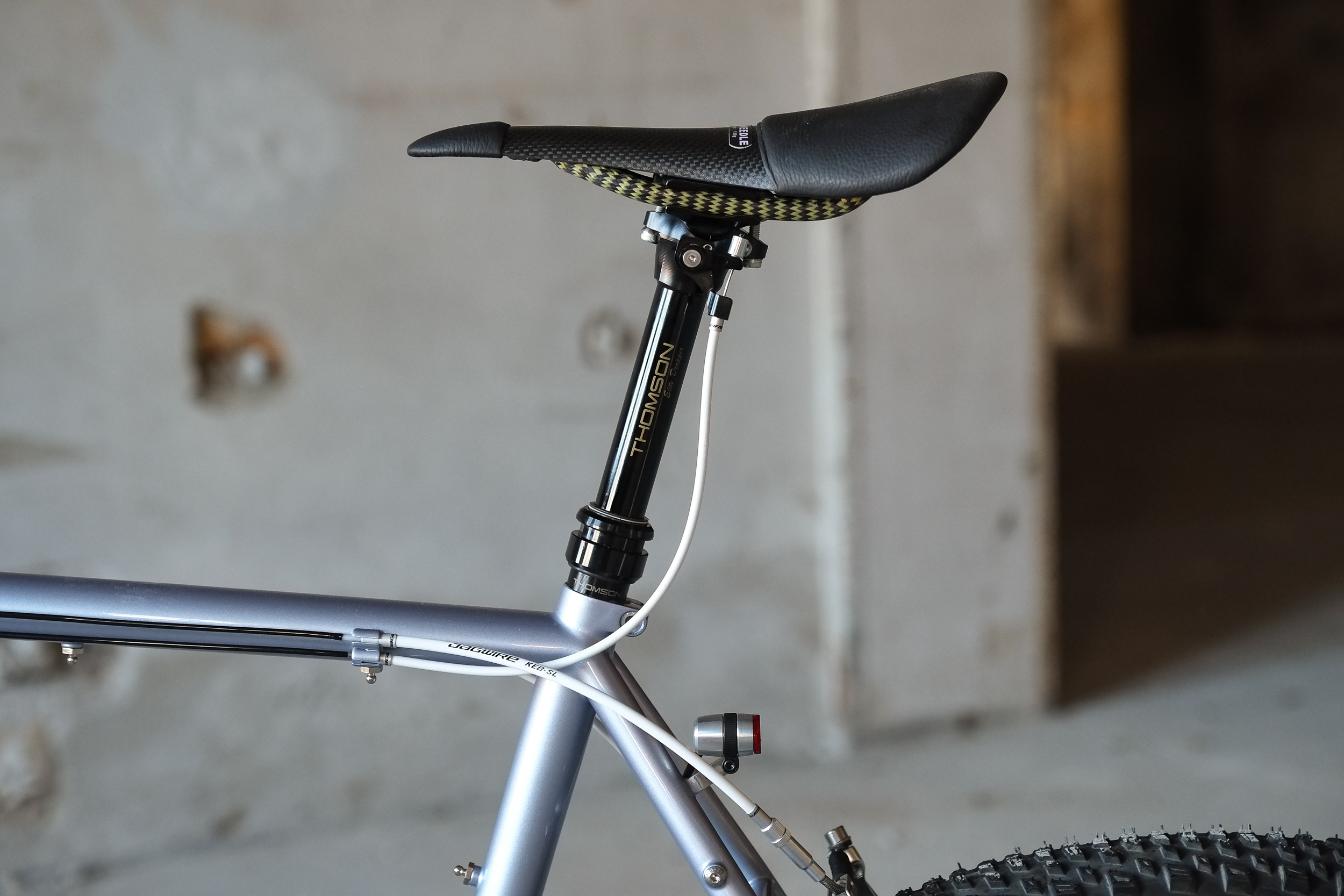 We stayed in touch and ping-ponged ideas back and forth over the big pond and more and more it crystalized how that custom Josh-Fern-Bike could actually look like.When finally Christian of Cyber Cycles offered that he could make an oldschool cantilver rim brake version of his infamous Tange Switchblade inspired Cyber Forks, it was clear that we gonna make a bike which blends an homage to the vintage MTB era back of the 80ties and 90ties with a today's modern Dropbar Gravel Touring bike. Since I really like to make theme bikes, I asked Josh after his personal favorites and other objects and designs he likes and it turns out that one of his most loved objects he owns is his 1988 Toyota Hilux Truck. I was immediately hooked by that topic and off we went to create a matching monster machine to his monster pickup truck! We wanted to use as many shiny silver components as possible and Josh did an amazing job sourcing those parts from all over the world. We had great support from friends companies such as Velocity, Ergon, Bitchn Bikes, Garbaruk, Wolftooth, SON, Tune, Gevenalle, Thomson, Busch und Müller, who all contributed their parts to this amazing machine. Thanks so much to all of you for your support on this project!