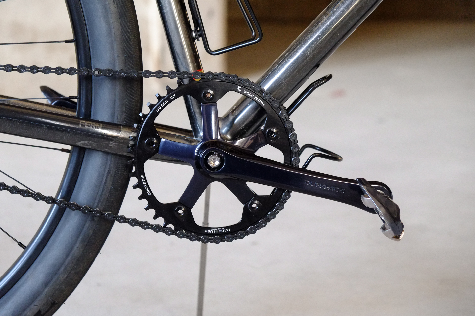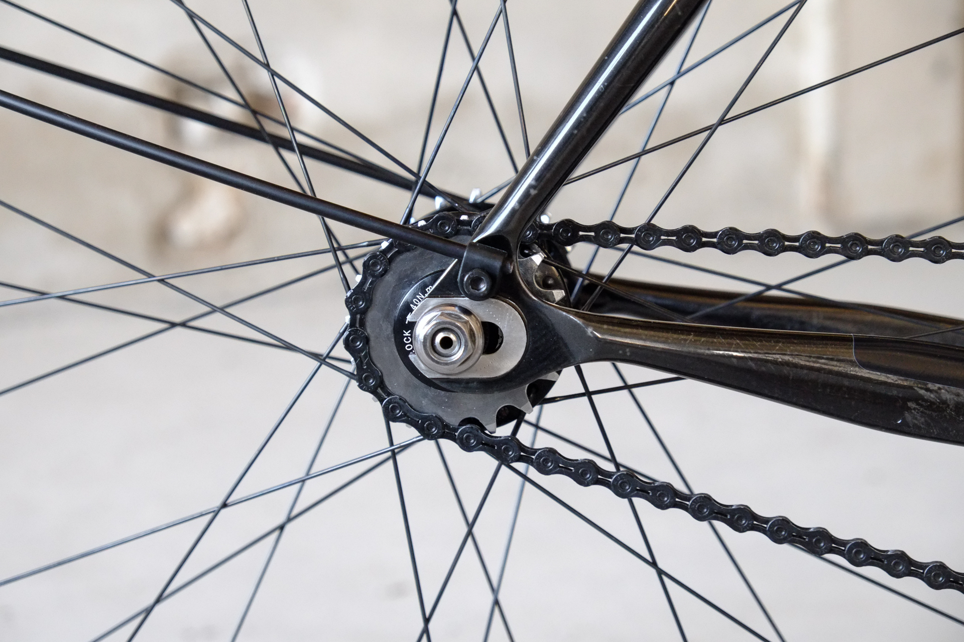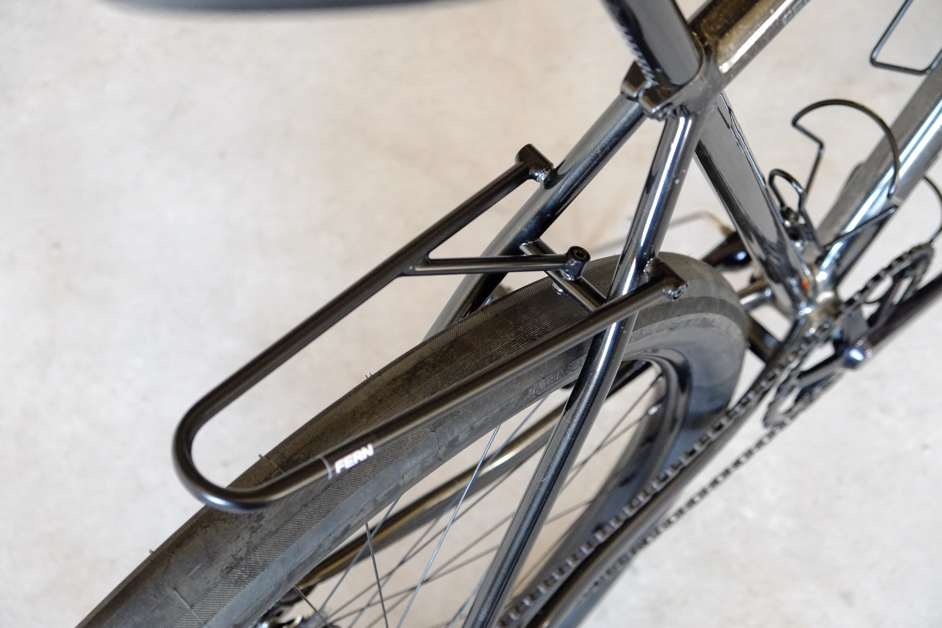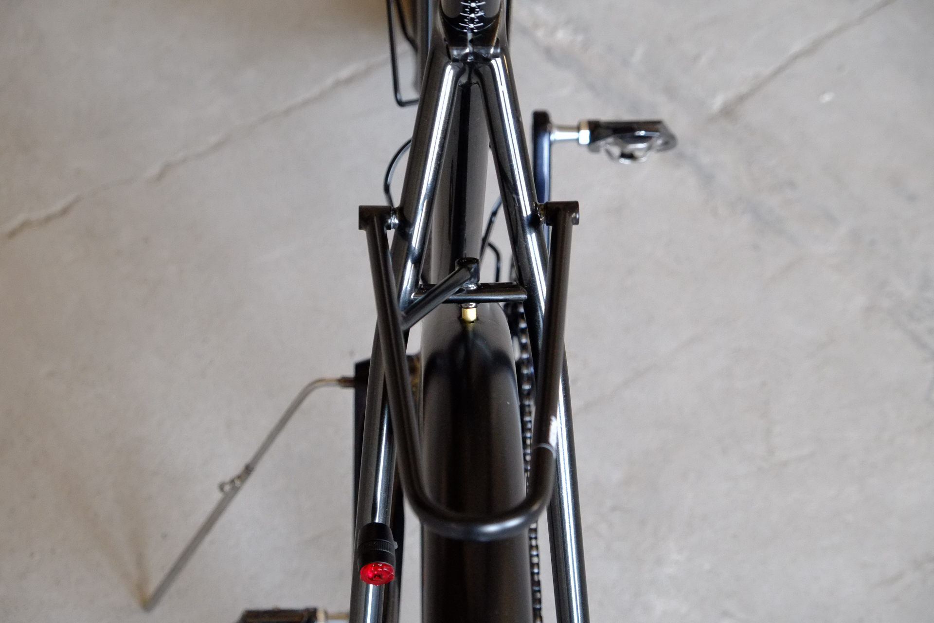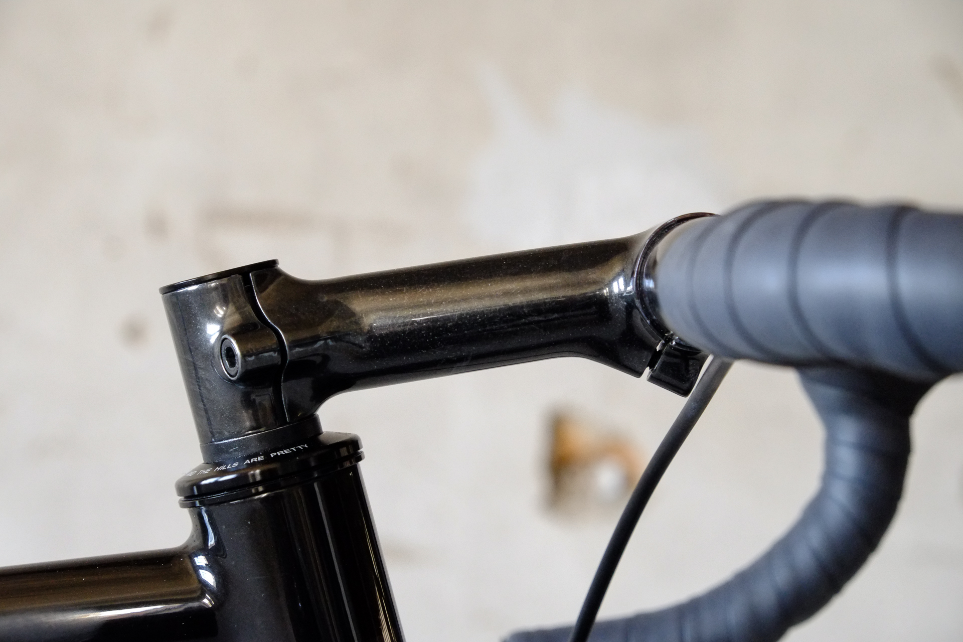 The bike is equipped with our brand new prototype Allygn M.U.D. carbon fork, which we completey designed and engineered here at Fern Bicycles. That fork gives you perfect clearance for tires up to 700cx55m, internal cable routing for SON hubdynamo and brake cable, all the mounts for fenders, anythingcages, lights, just everything. For more details go check our sister companies page www.allygn.de