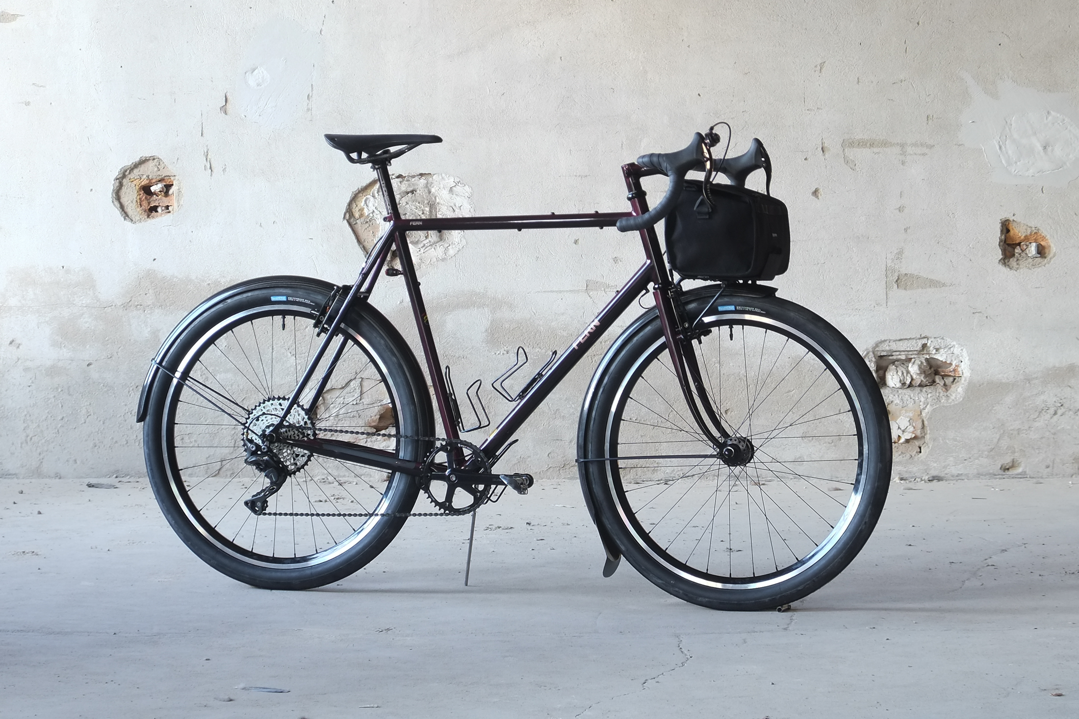 Josef is a very humble man but when sitting on a bike he turns into a real beast! Riding PBP in close to world record time, he is by far not what you would call an average cyclist. When he came first into my shop Josef was looking for a relaxed bike for easy touring,... After finding out what this guy can actually do on a bike I surely had in mind that maybe one day he will ride PBP on a Fern bike. So I created a true performance Randonneur bike for him which he can use for both, for "easy" touring with bags and racks but eventually this machine could be as well used for real hardcore brevet riding. The bike is equipped with only the finest parts and components, such Rene Herse Tires, Tune handle bar, Gevenalle x Garbaruk drivetrain, Extralite brakes, Veloduo Fenders, Thomson / Brooks seat area and so on. Also featuring our infamous Allygn Components Diamond Rack and Gramm Tourpacking Bag which are available now in our online shops!