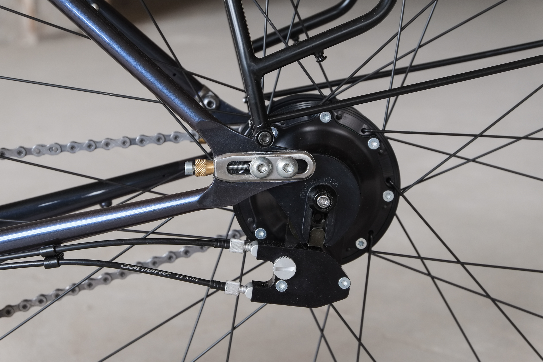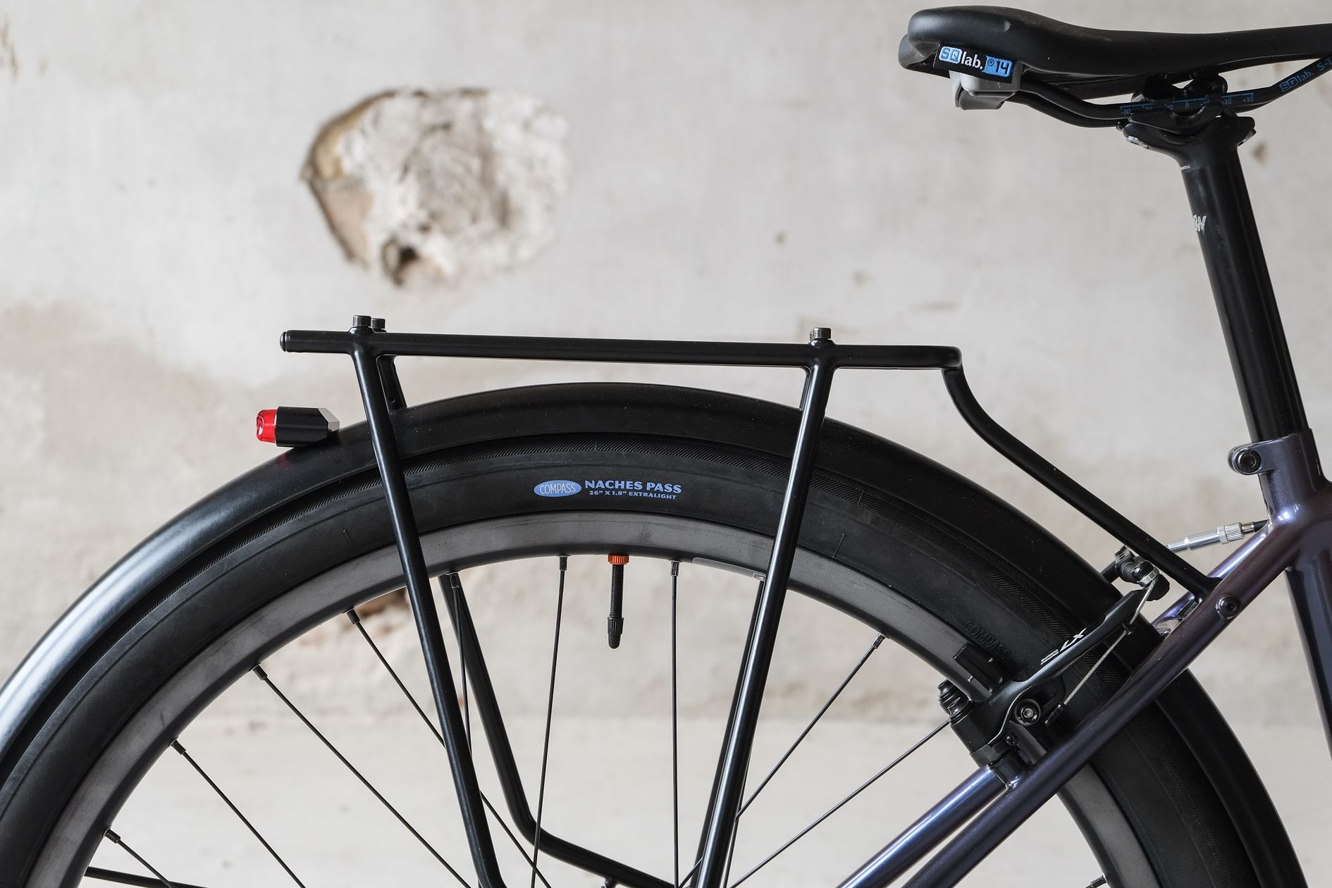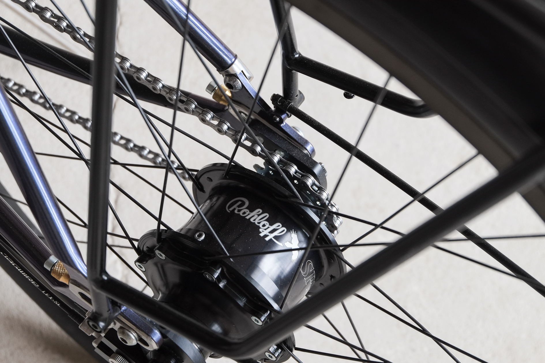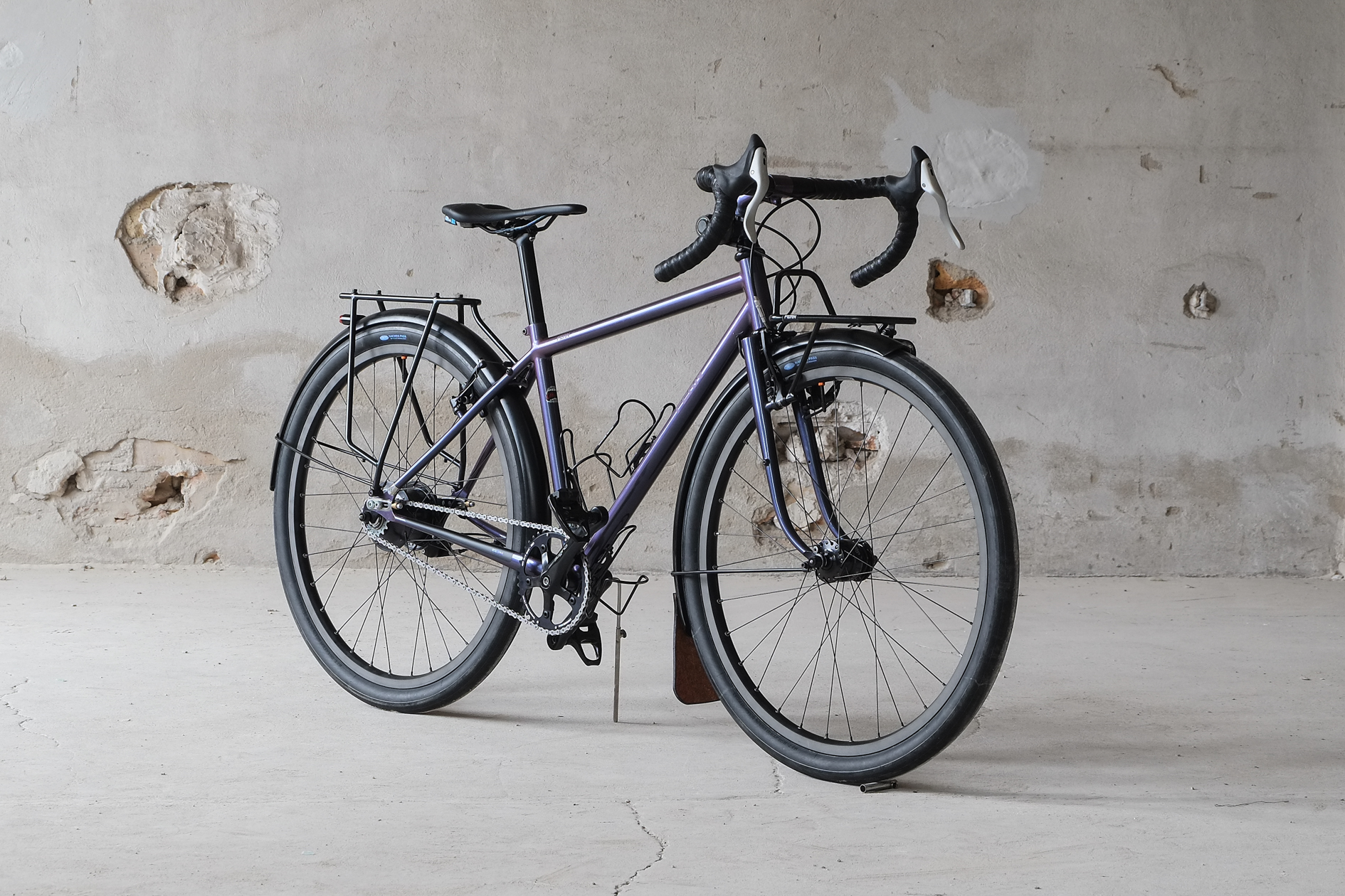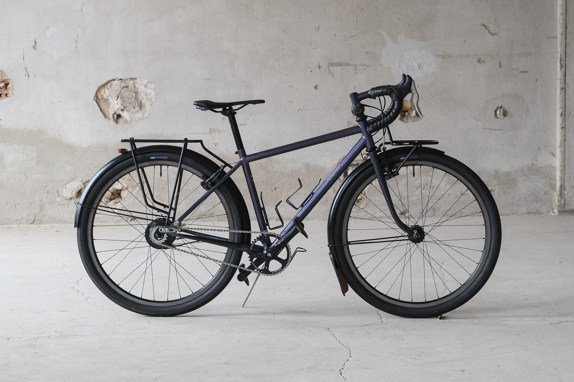 Bettina is small in size but she goes big on her bike! Beeing an avid randonneuse, she needed finally a bike which fits her body perfectly and still provides all the features she needed. Big tires for a comfy ride, fenders, lights, battery charging, carefree Rohloff internal geared hub drivertrain,...and so on. She now has a bike which does all that, without making any compromises in handling or ride characteristics. Hope to meet you soon on one of our next brevet rides, Bettina ;)!