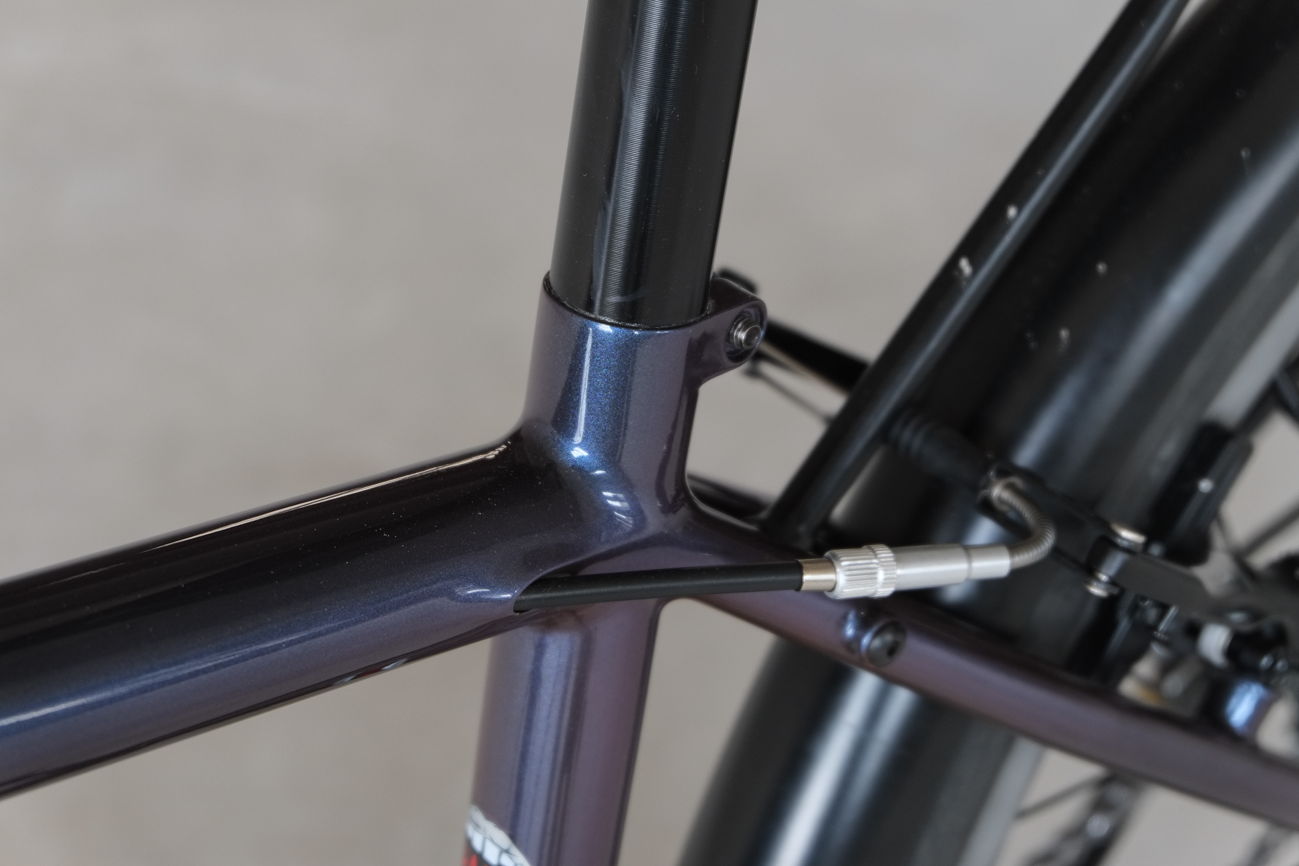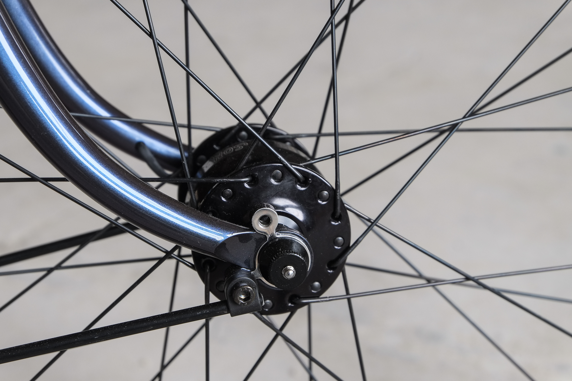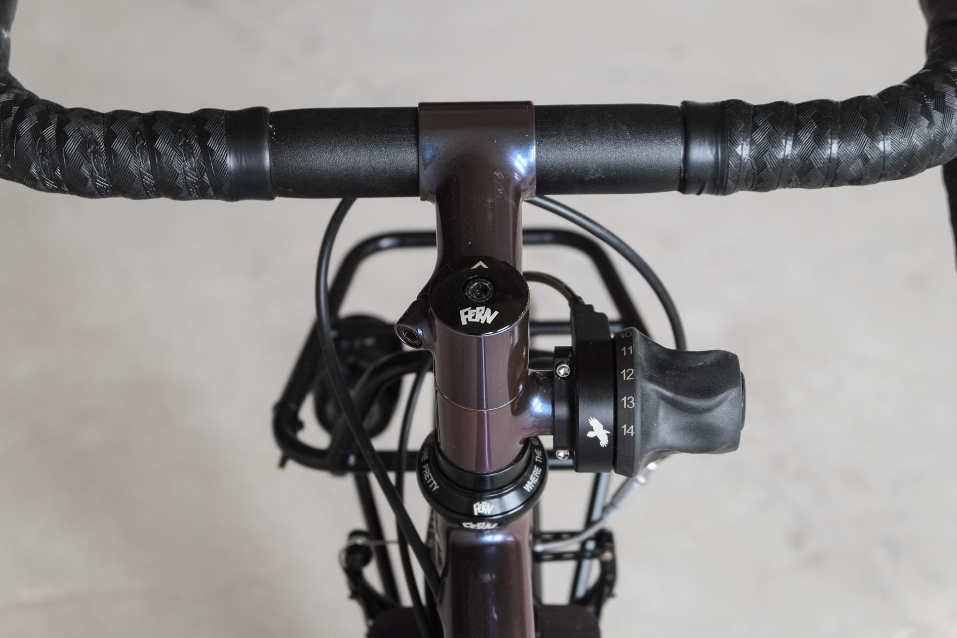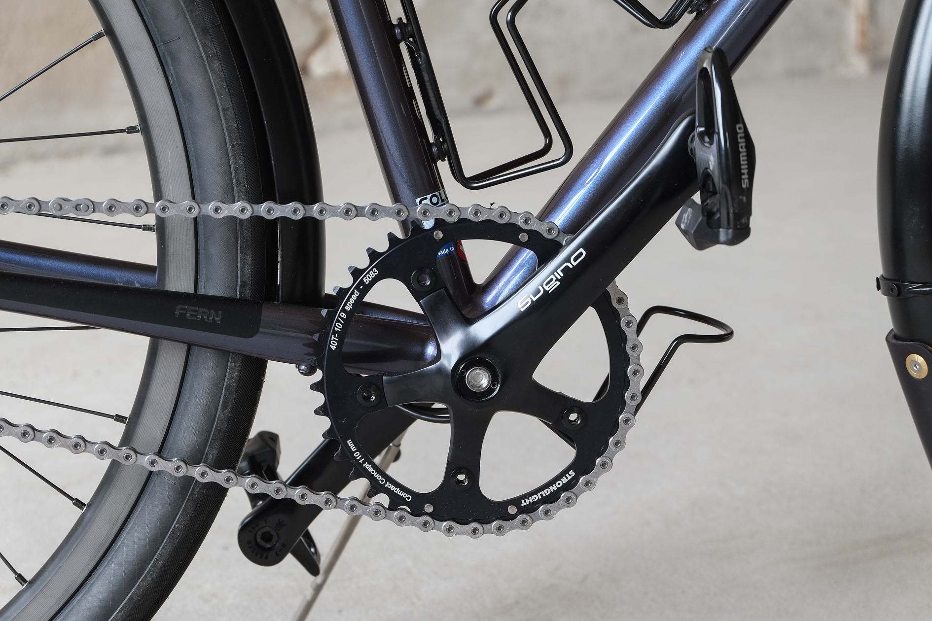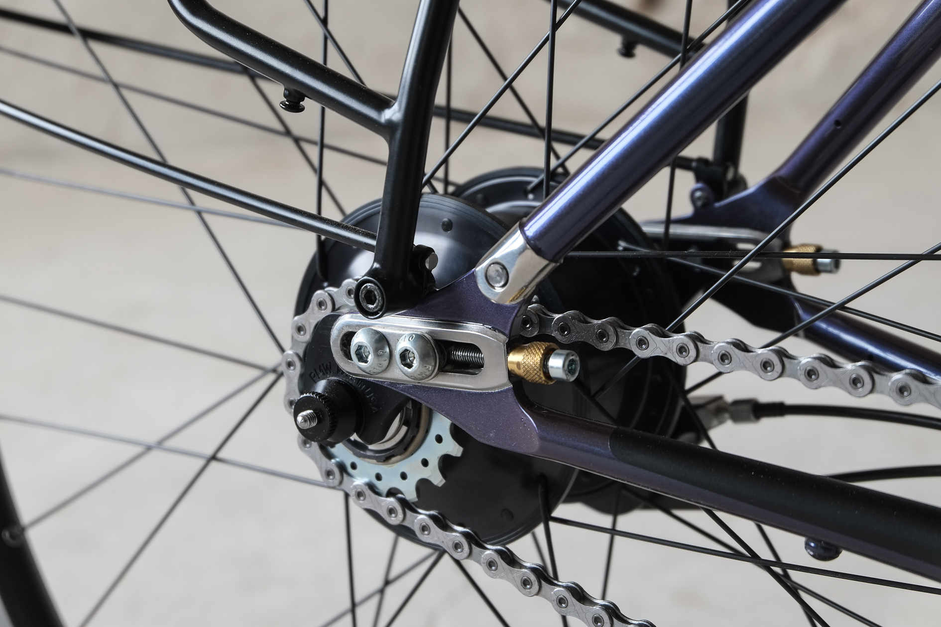 Bettina is small in size but she goes big on her bike! Beeing an avid randonneuse, she needed finally a bike which fits her body perfectly and still provides all the features she needed. Big tires for a comfy ride, fenders, lights, battery charging, carefree Rohloff internal geared hub drivertrain,...and so on. She now has a bike which does all that, without making any compromises in handling or ride characteristics. Hope to meet you soon on one of our next brevet rides, Bettina ;)!