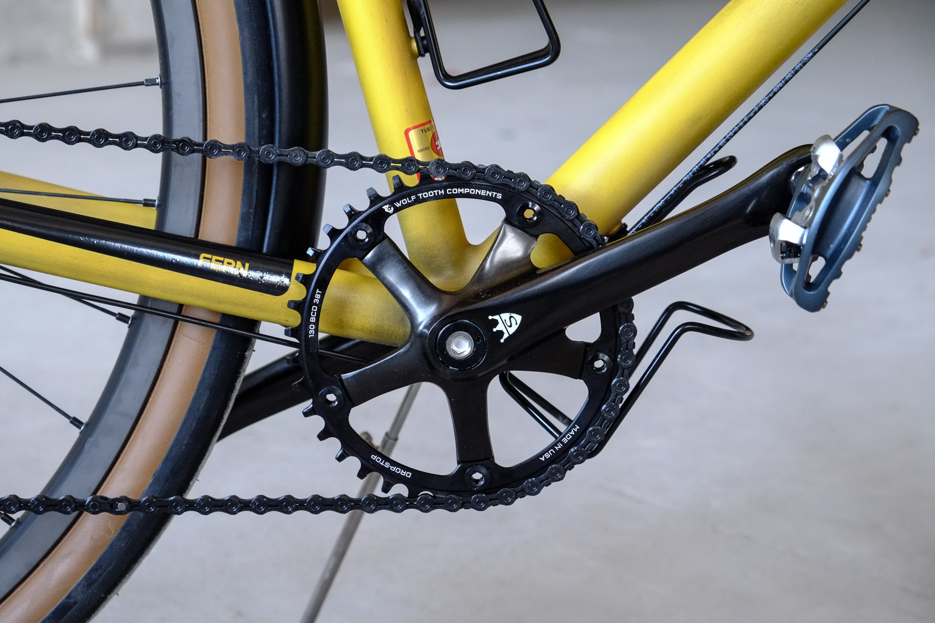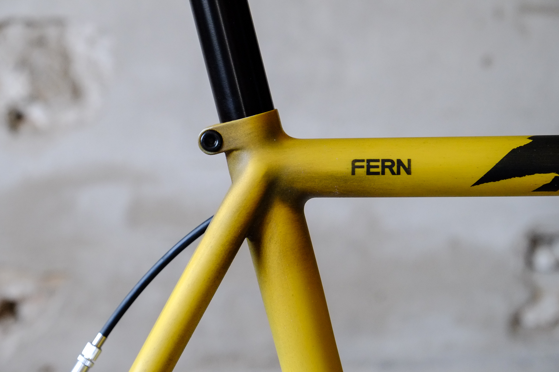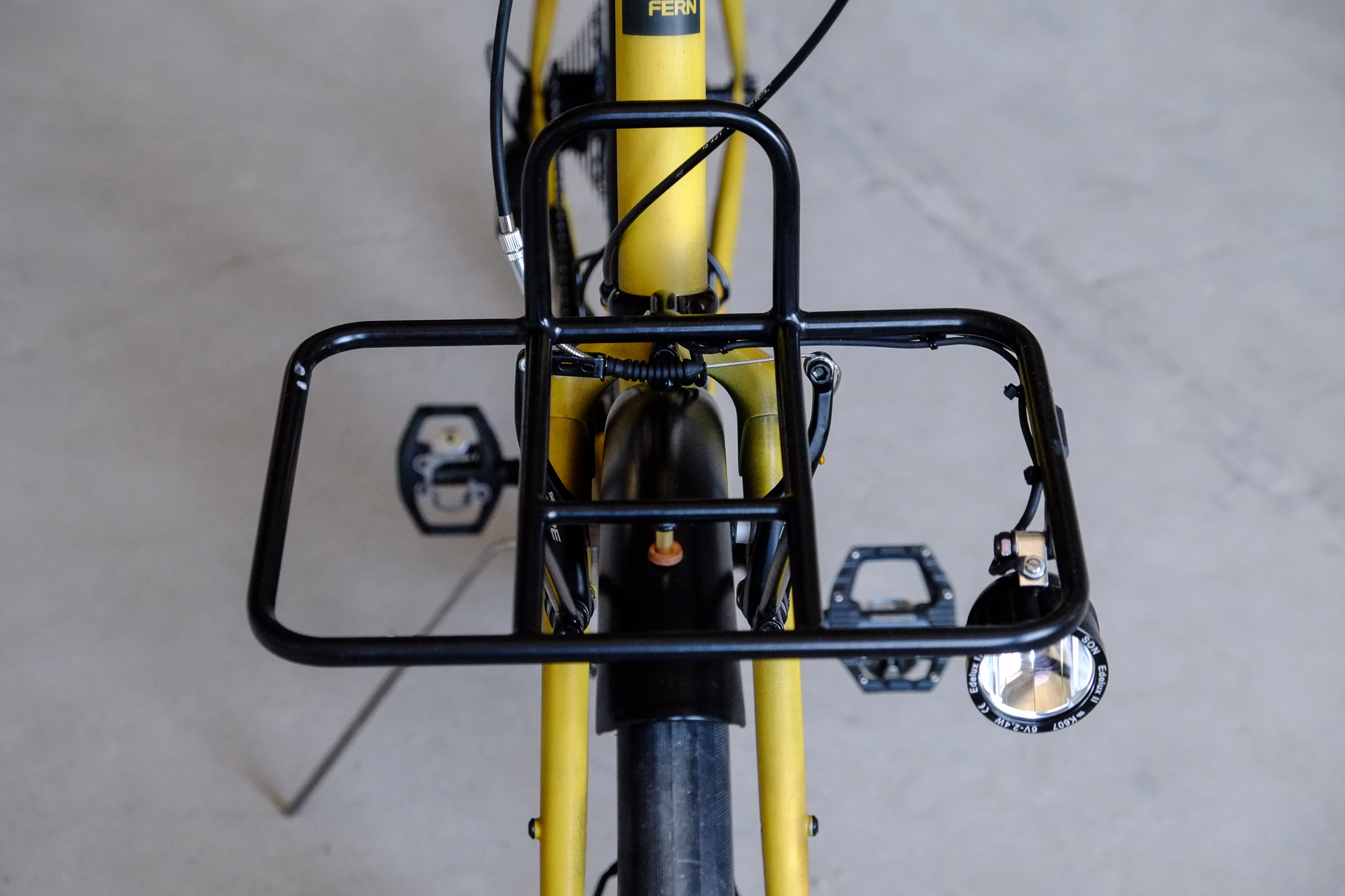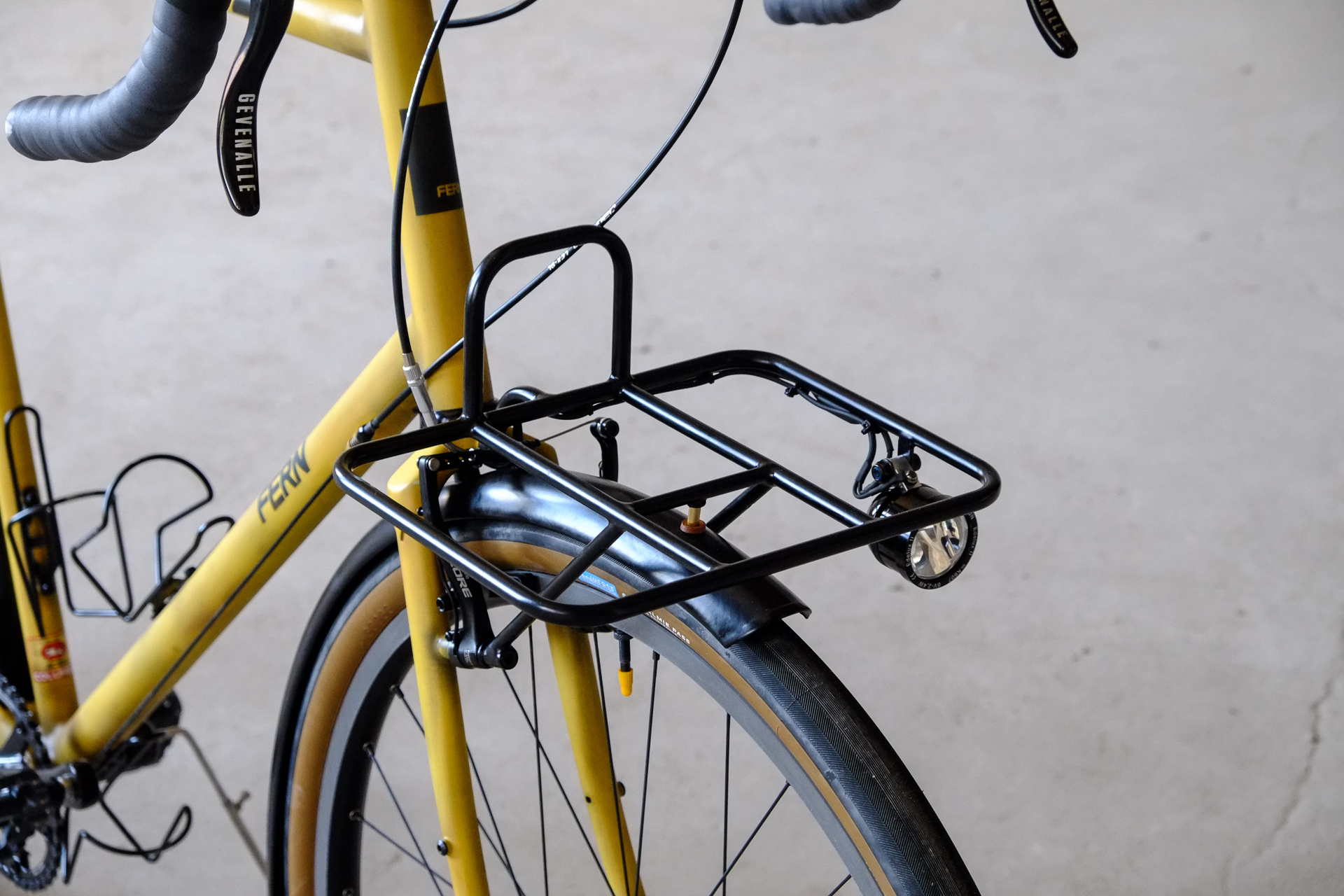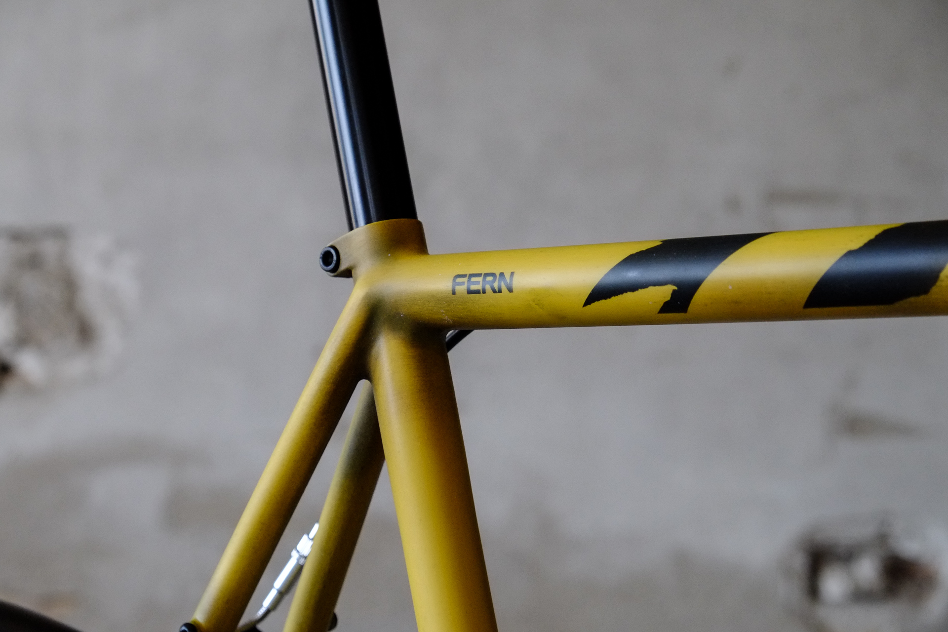 This bike is featuring a randonneur bike geometry, and is as always rolling super smooth on supple Rene Herse 44mm Snoqualmie Pass tires. Maximum speed and absolutely superior comfort on any kind of terrain, no matter if you go for racing on asphalt or for fun gravelriding off the road, the Chico 28 can do it all. The bike is equipped with a Gevenalle powered 1x11 Shimano drivetrain turned by a Wolftooth Drop Stop chainring mounted to a Sugino crank set. Fenders, Saddle and Mudflap made by our friends at Berthoud Cycles. Lights and power supply by SON , "Schmidt's Original Nabendynamo". Handmade frontrack by Fern. Let's hope earth's future will be brighter than in the movie and with this bike you found your big love Ruben!