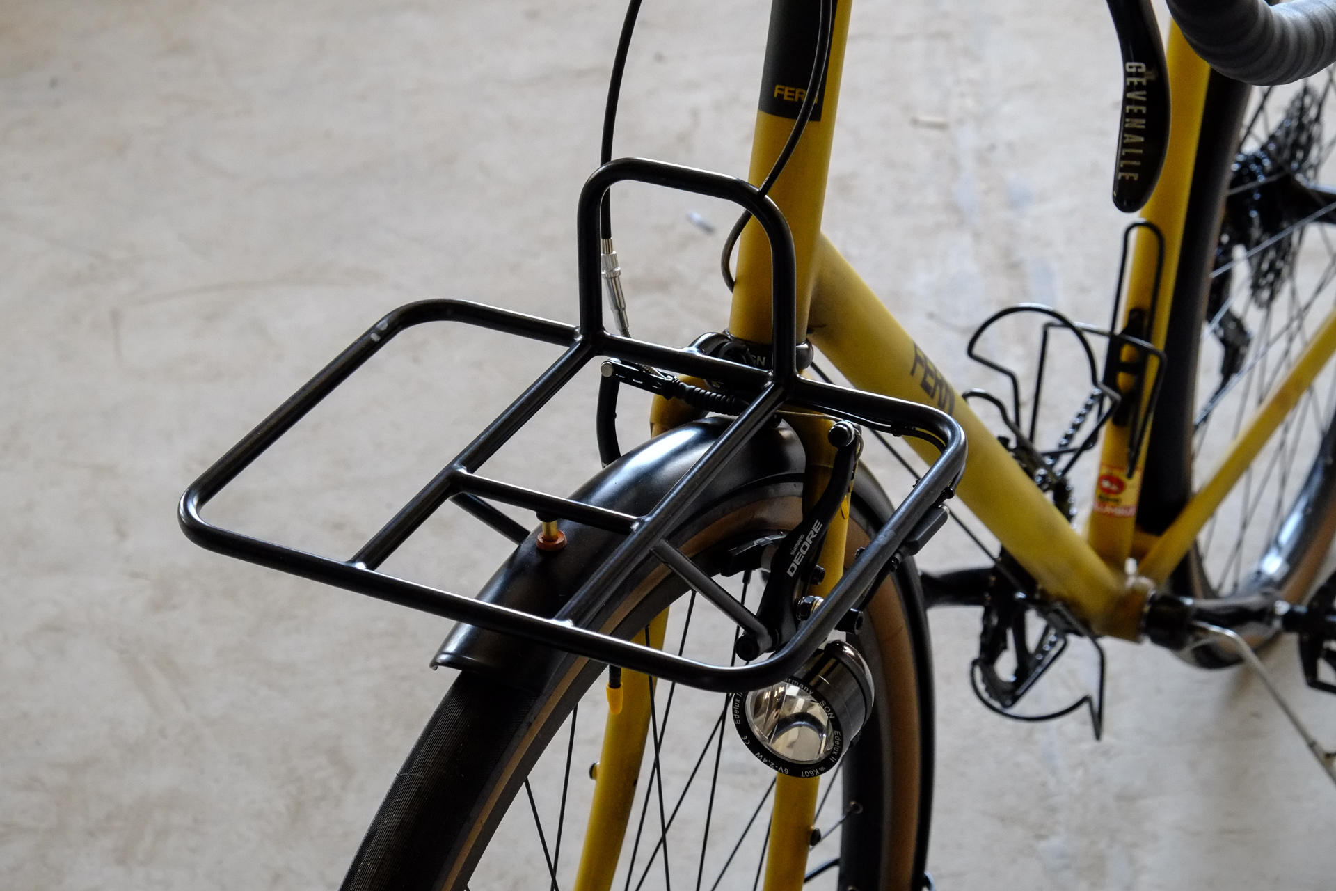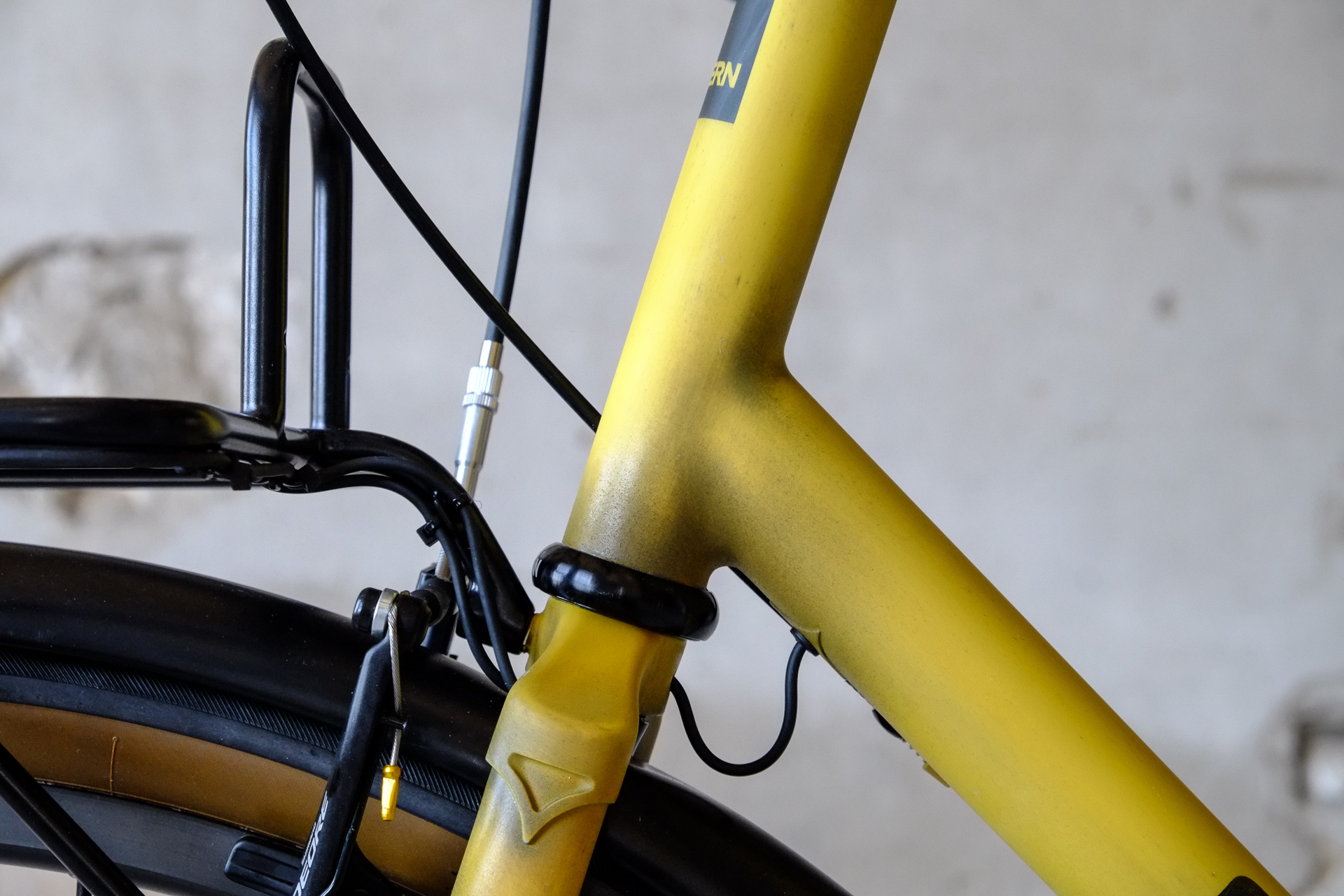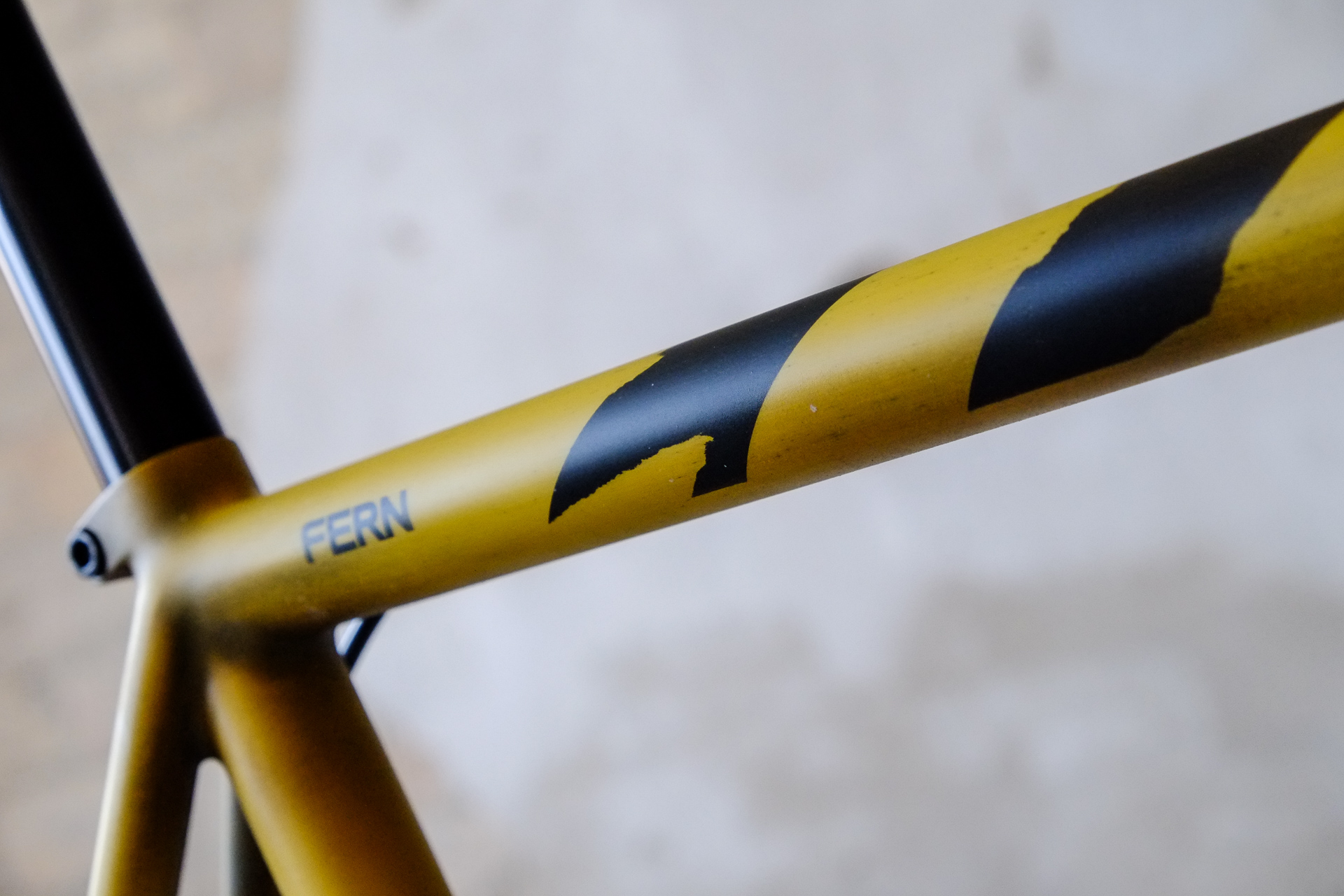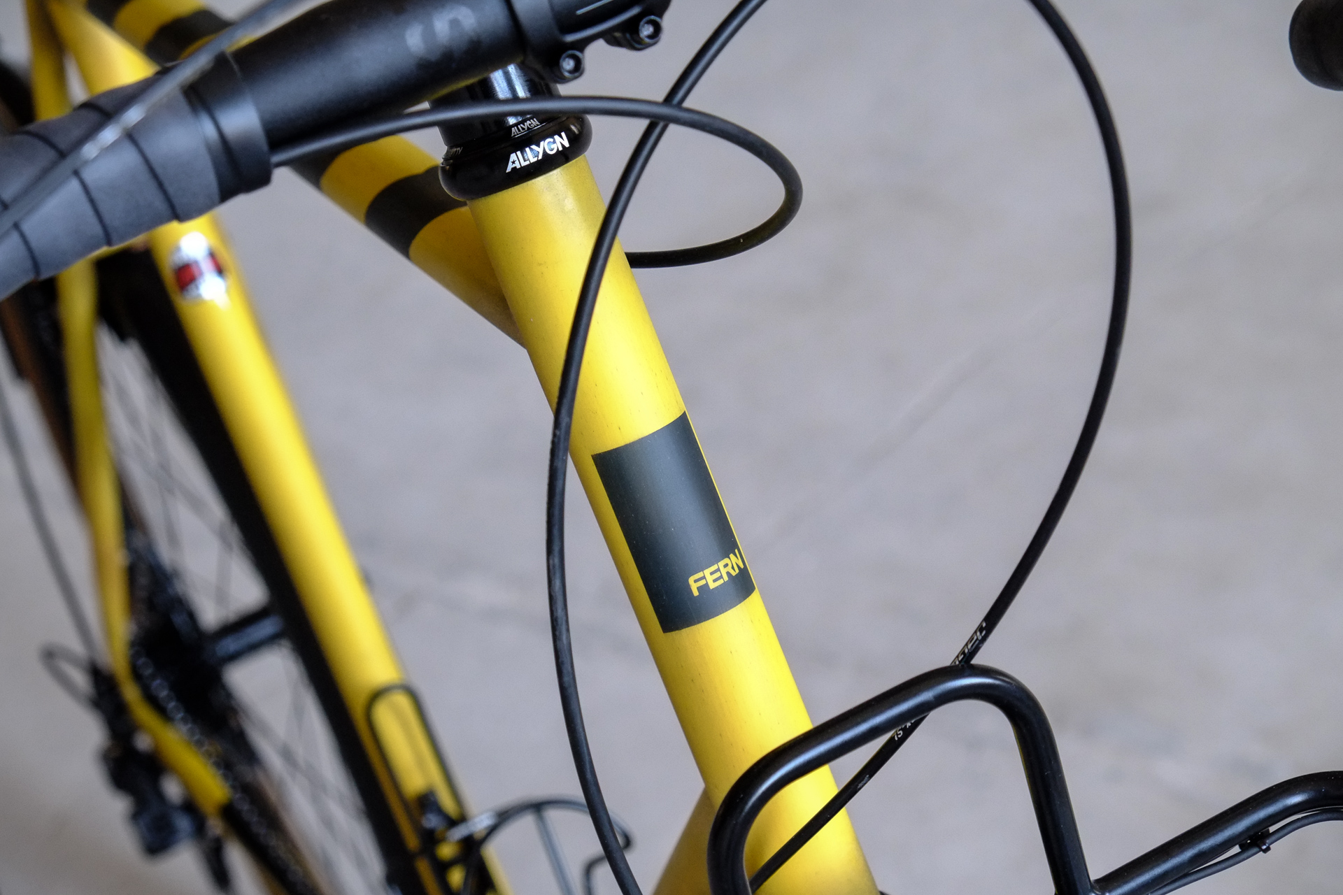 This bike is featuring a randonneur bike geometry, and is as always rolling super smooth on supple Rene Herse 44mm Snoqualmie Pass tires. Maximum speed and absolutely superior comfort on any kind of terrain, no matter if you go for racing on asphalt or for fun gravelriding off the road, the Chico 28 can do it all. The bike is equipped with a Gevenalle powered 1x11 Shimano drivetrain turned by a Wolftooth Drop Stop chainring mounted to a Sugino crank set. Fenders, Saddle and Mudflap made by our friends at Berthoud Cycles. Lights and power supply by SON , "Schmidt's Original Nabendynamo". Handmade frontrack by Fern. Let's hope earth's future will be brighter than in the movie and with this bike you found your big love Ruben!