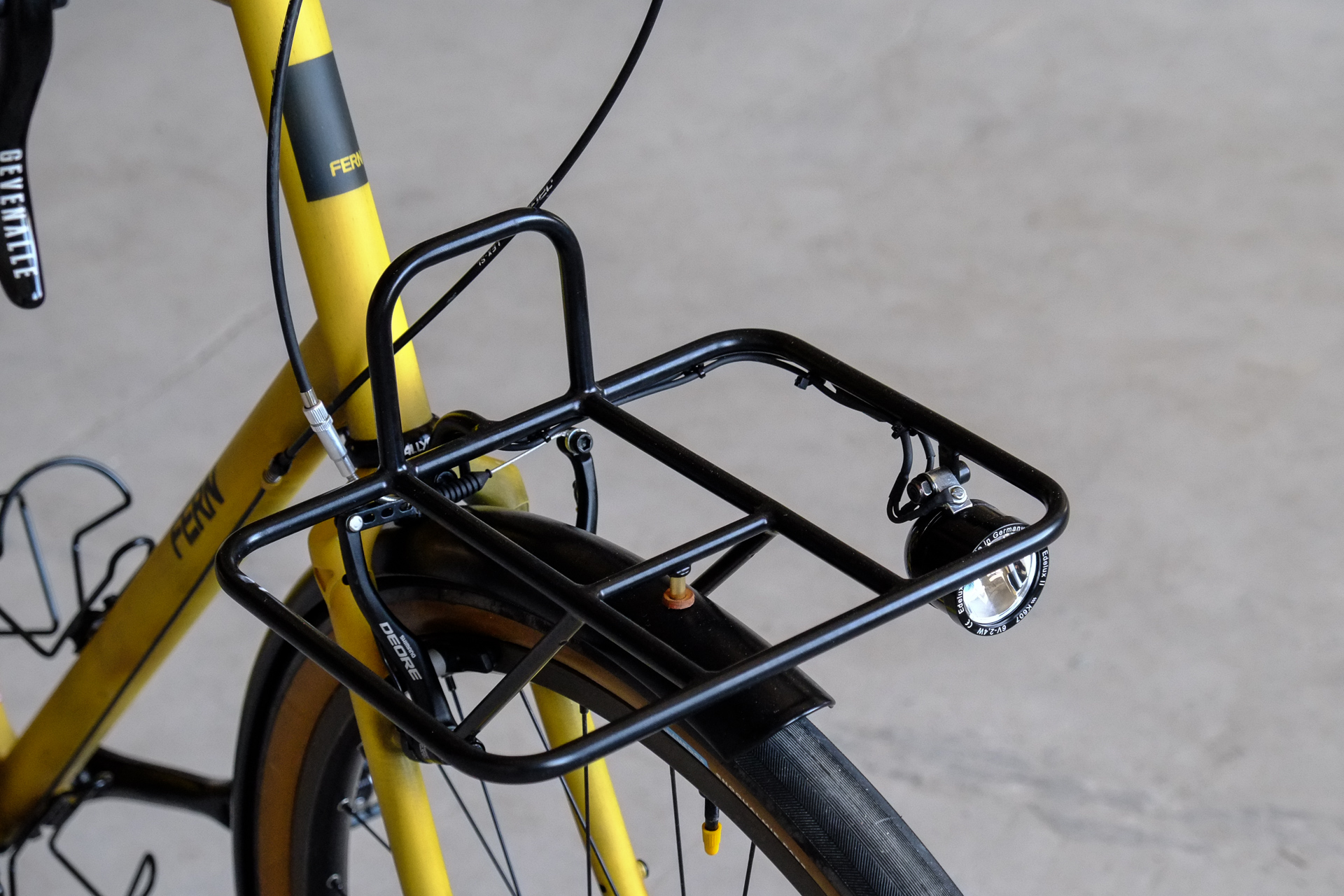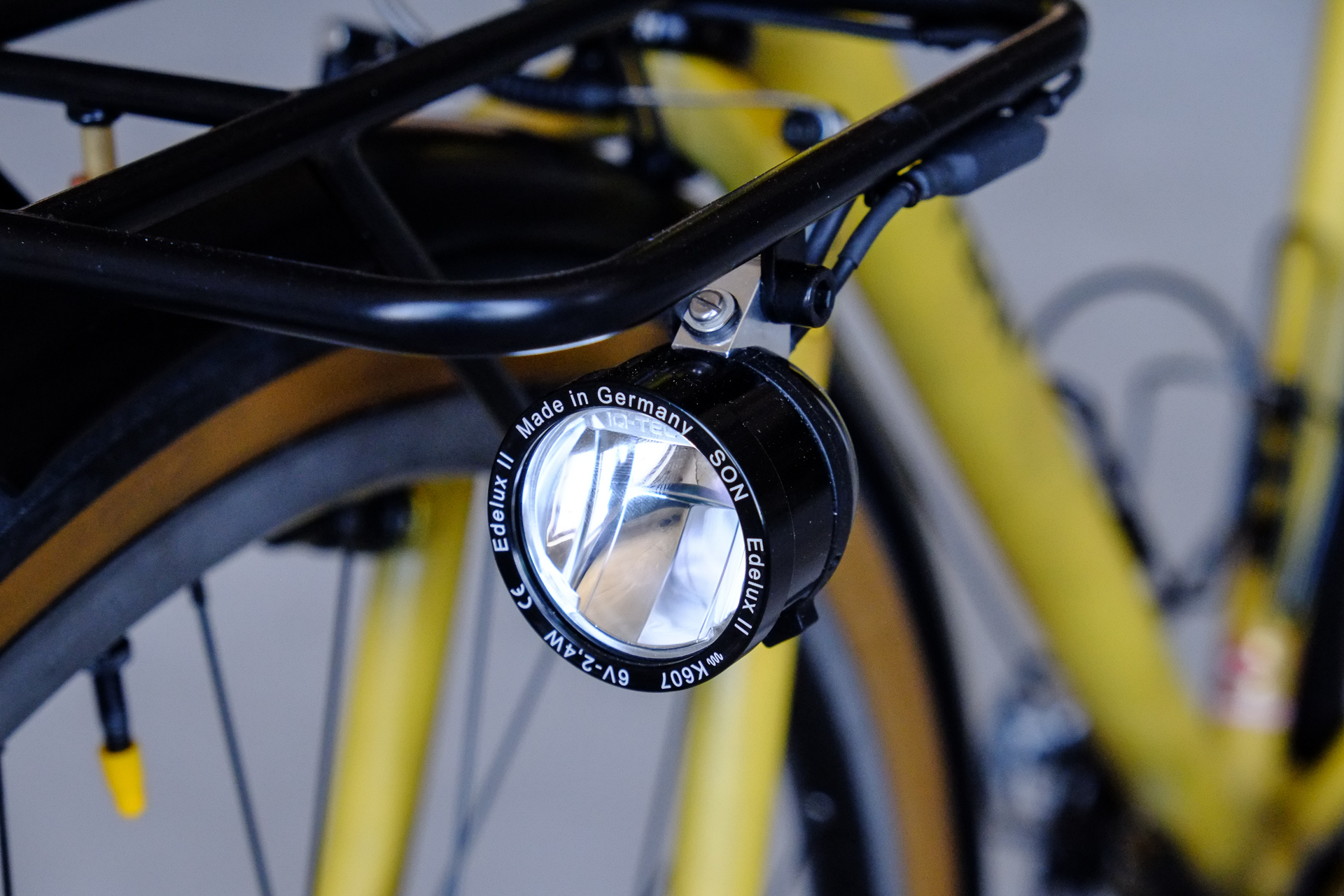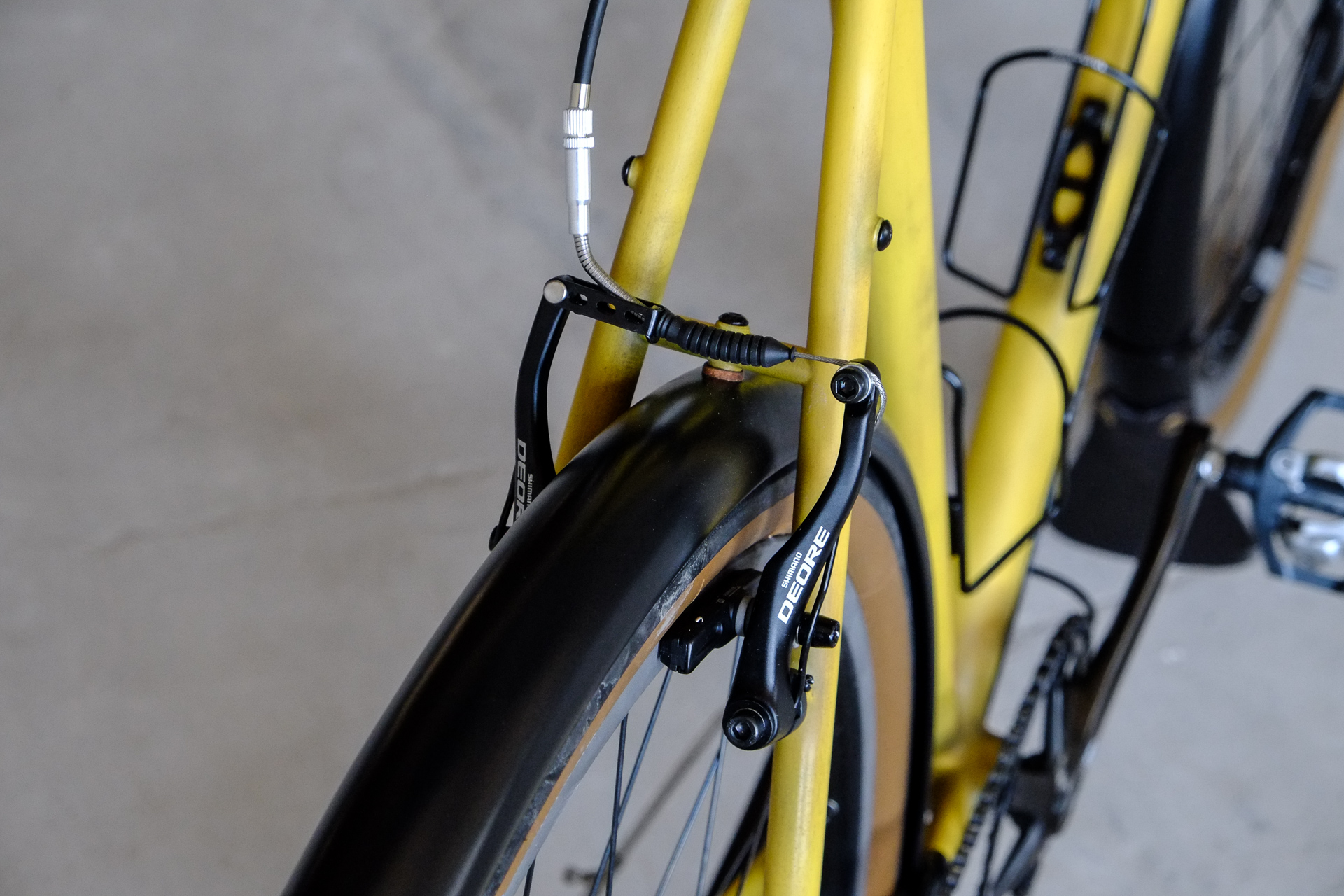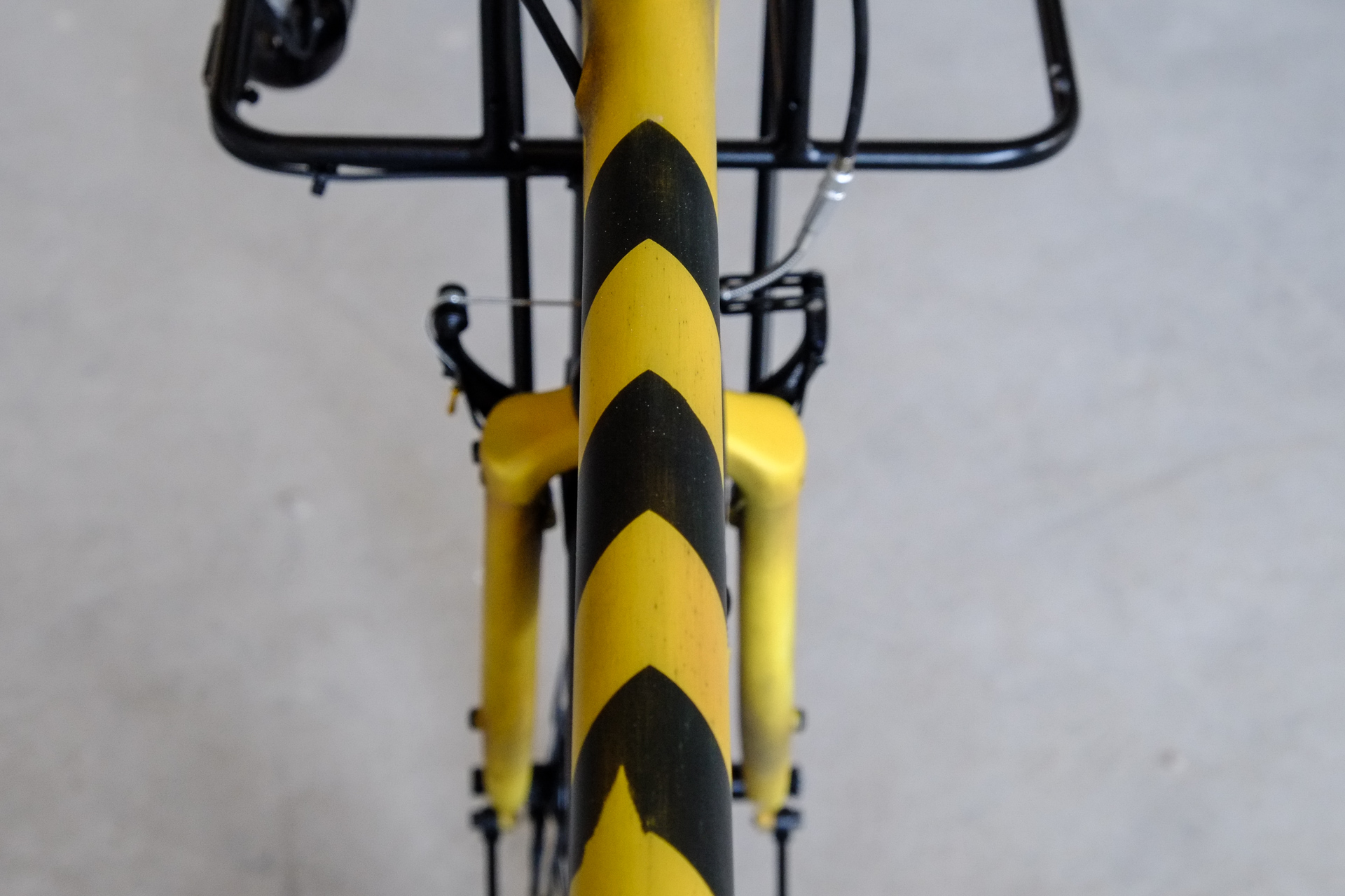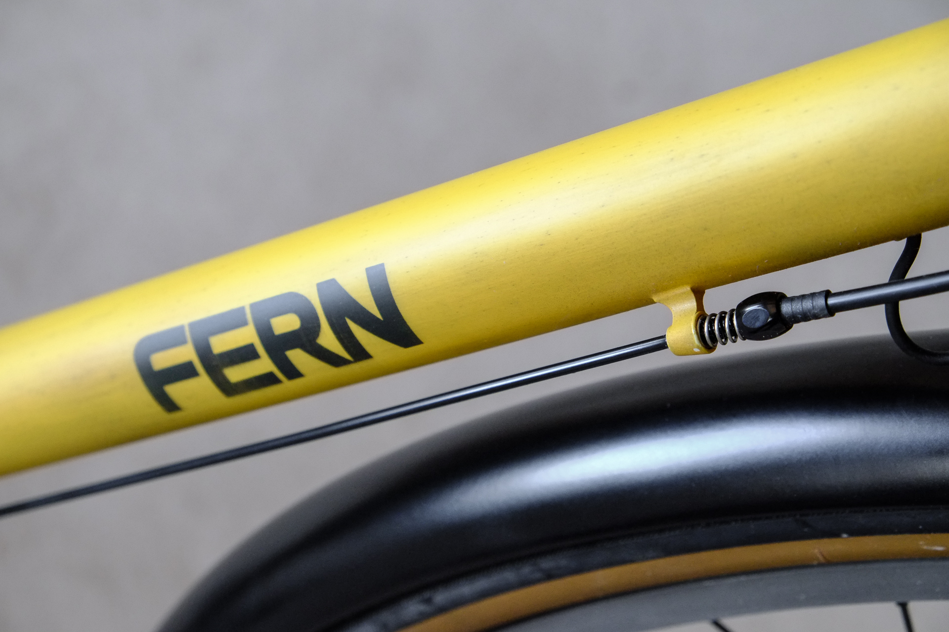 This bike is featuring a randonneur bike geometry, and is as always rolling super smooth on supple Rene Herse 44mm Snoqualmie Pass tires. Maximum speed and absolutely superior comfort on any kind of terrain, no matter if you go for racing on asphalt or for fun gravelriding off the road, the Chico 28 can do it all. The bike is equipped with a Gevenalle powered 1x11 Shimano drivetrain turned by a Wolftooth Drop Stop chainring mounted to a Sugino crank set. Fenders, Saddle and Mudflap made by our friends at Berthoud Cycles. Lights and power supply by SON , "Schmidt's Original Nabendynamo". Handmade frontrack by Fern. Let's hope earth's future will be brighter than in the movie and with this bike you found your big love Ruben!