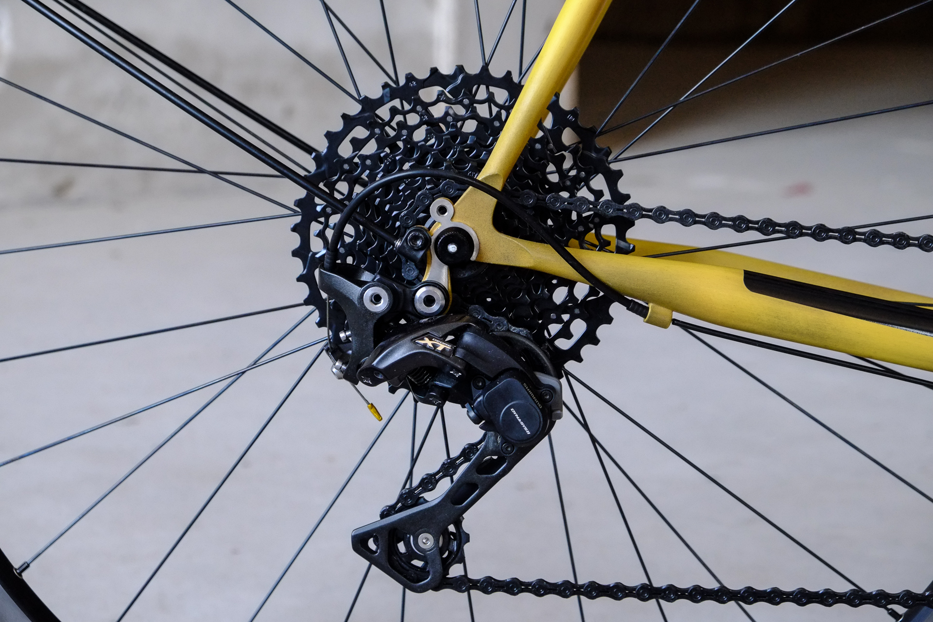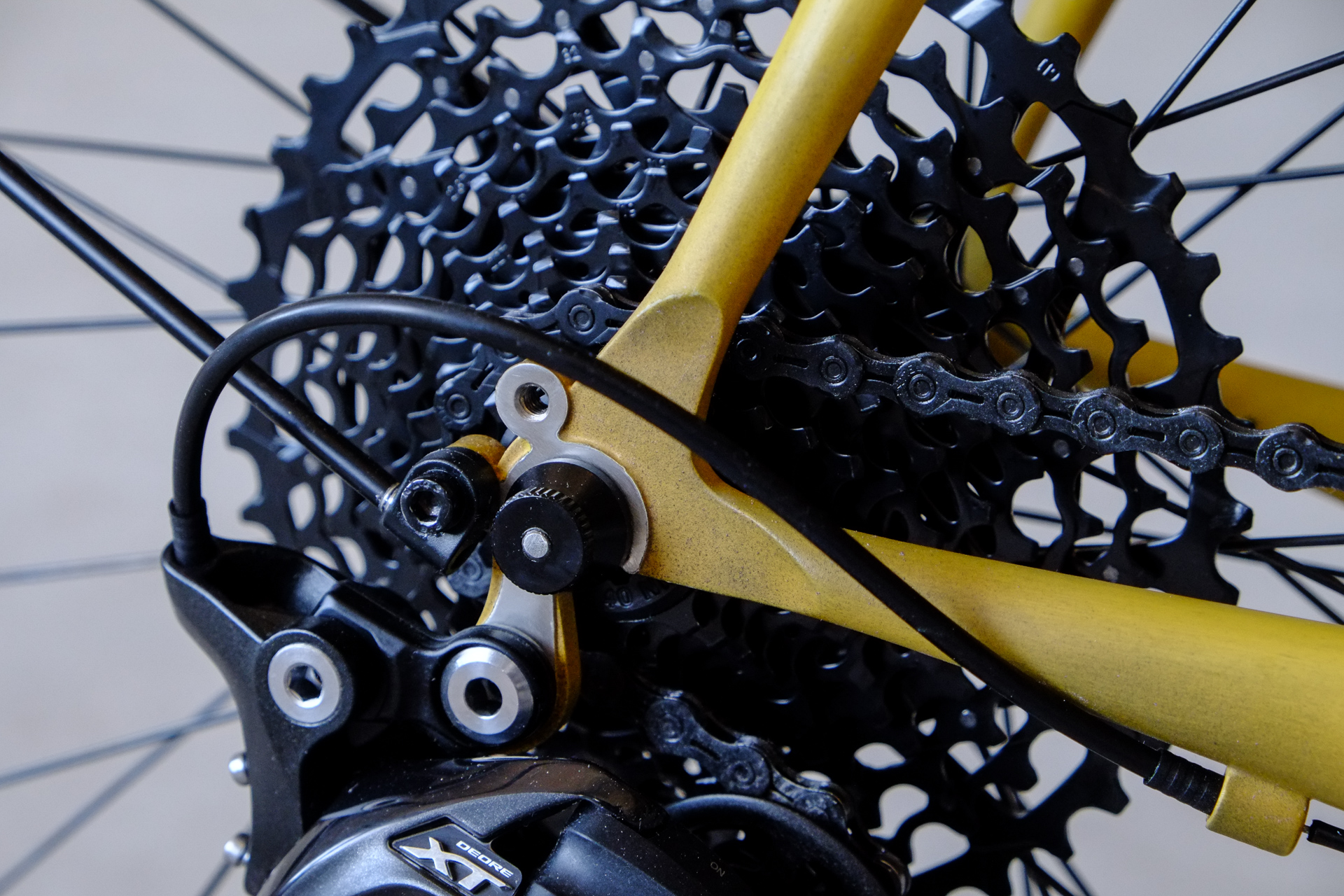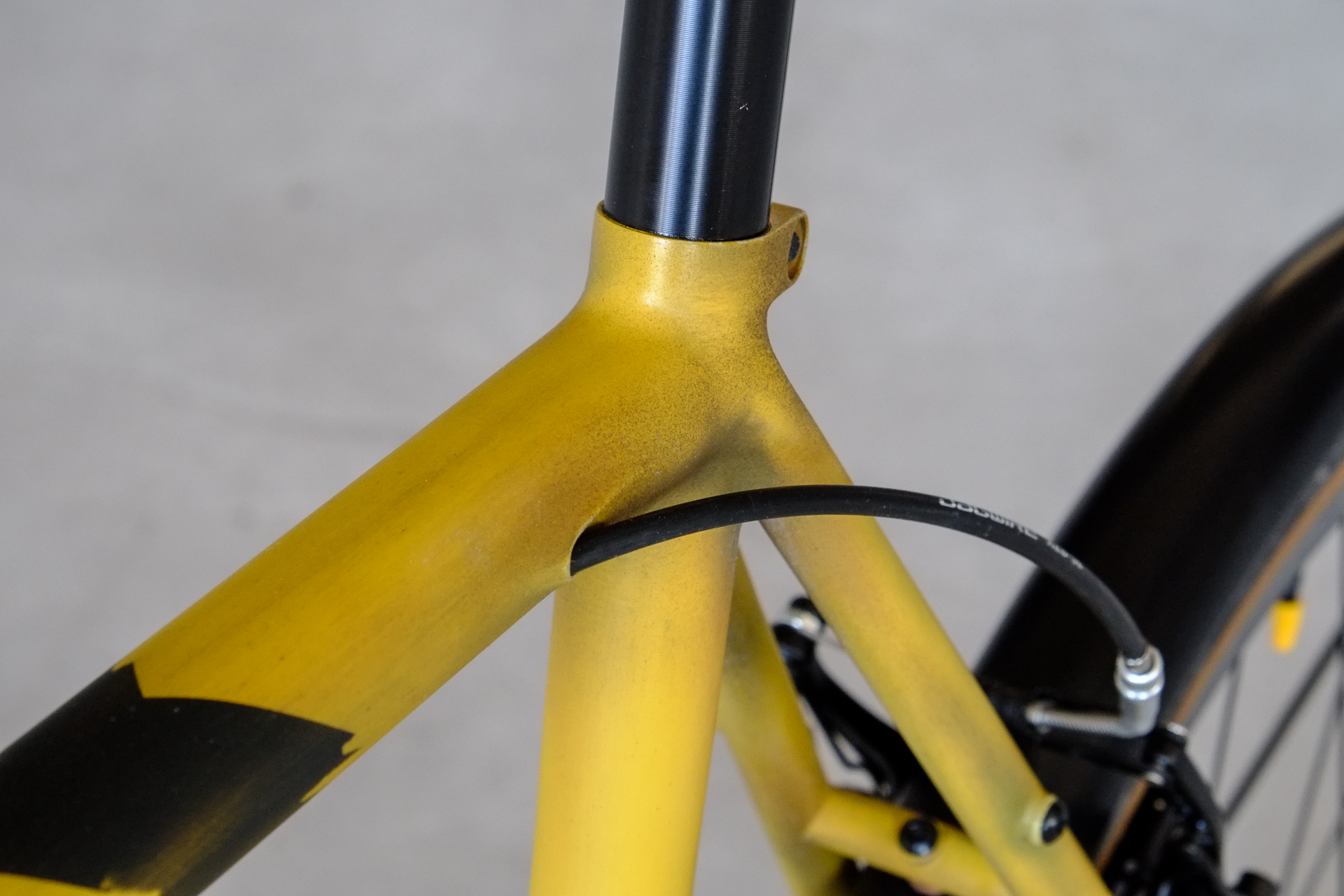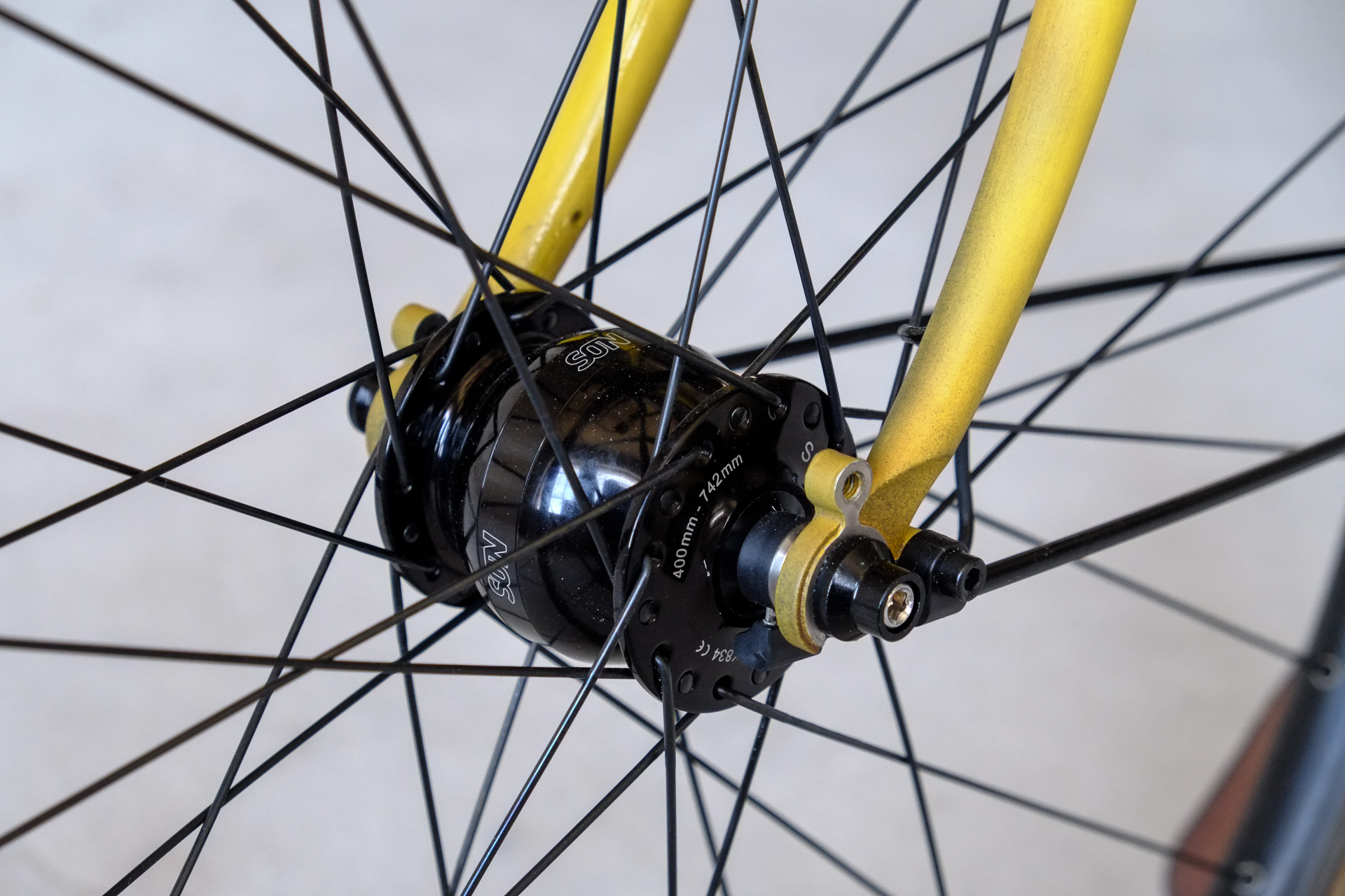 This bike is featuring a randonneur bike geometry, and is as always rolling super smooth on supple Rene Herse 44mm Snoqualmie Pass tires. Maximum speed and absolutely superior comfort on any kind of terrain, no matter if you go for racing on asphalt or for fun gravelriding off the road, the Chico 28 can do it all. The bike is equipped with a Gevenalle powered 1x11 Shimano drivetrain turned by a Wolftooth Drop Stop chainring mounted to a Sugino crank set. Fenders, Saddle and Mudflap made by our friends at Berthoud Cycles. Lights and power supply by SON , "Schmidt's Original Nabendynamo". Handmade frontrack by Fern. Let's hope earth's future will be brighter than in the movie and with this bike you found your big love Ruben!